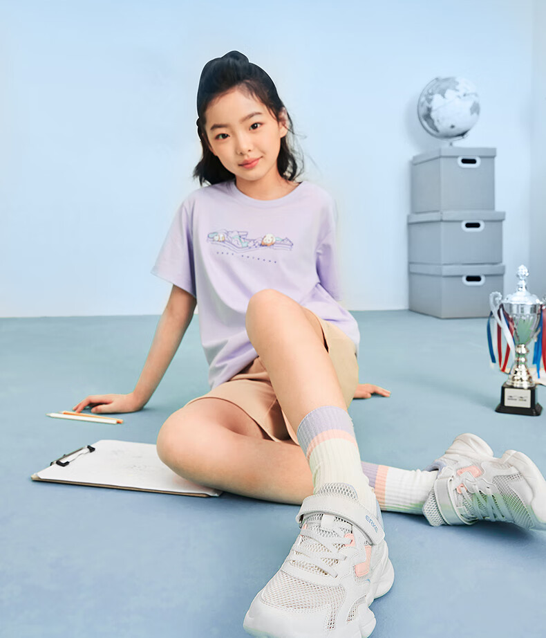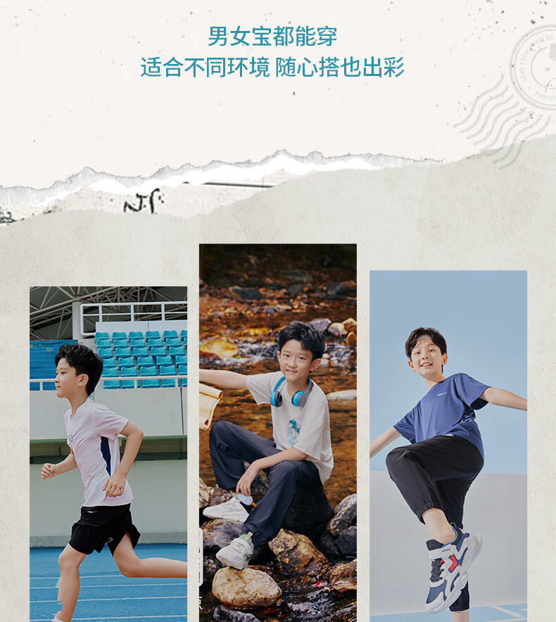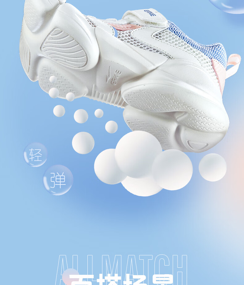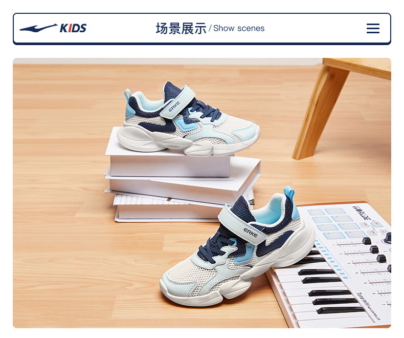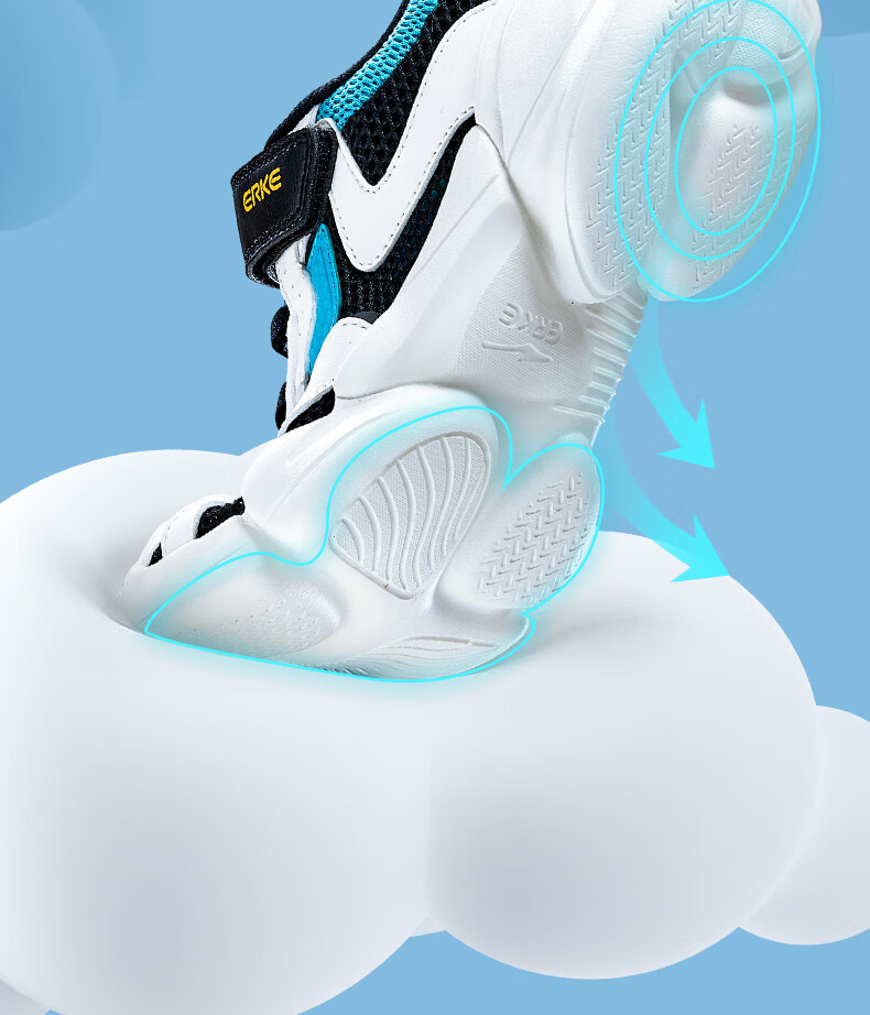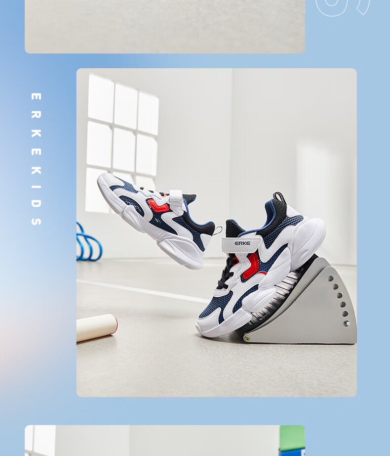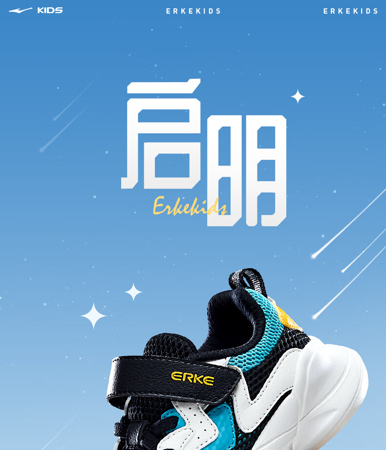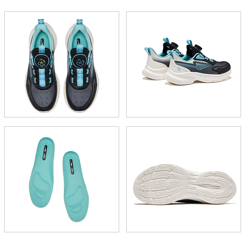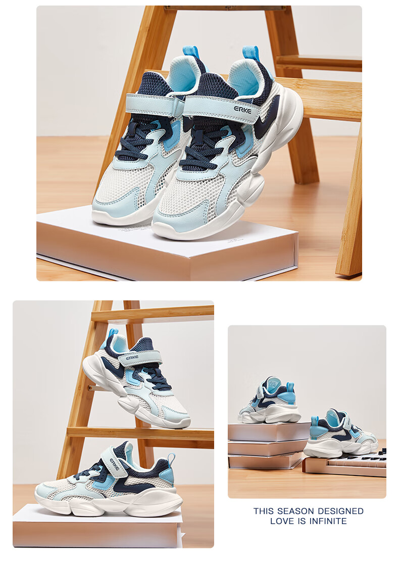 鸿星尔克(ERKE)童鞋中性大小童休闲鞋大网孔透气运动鞋微晶白/正黑33