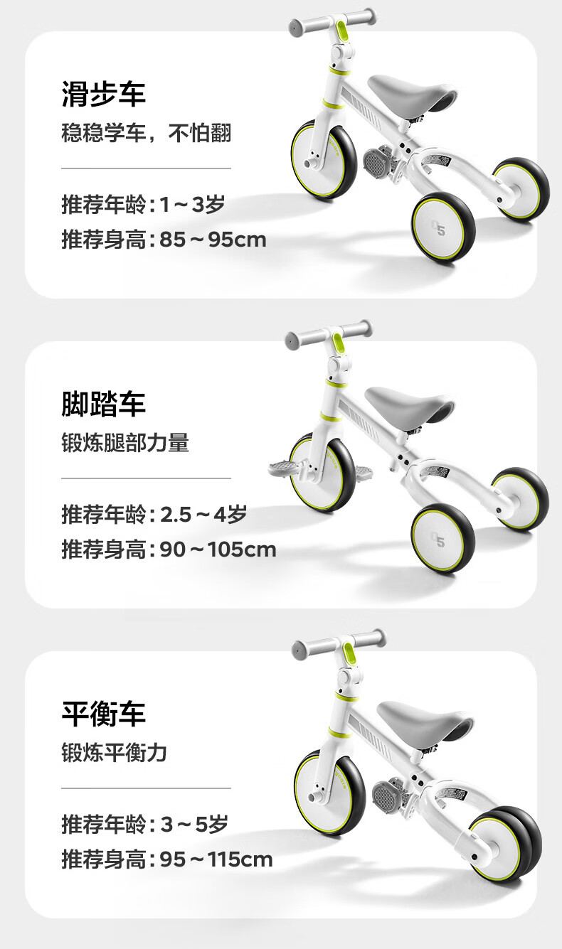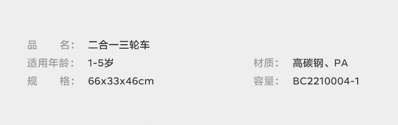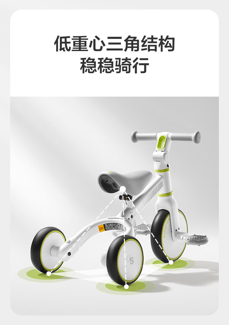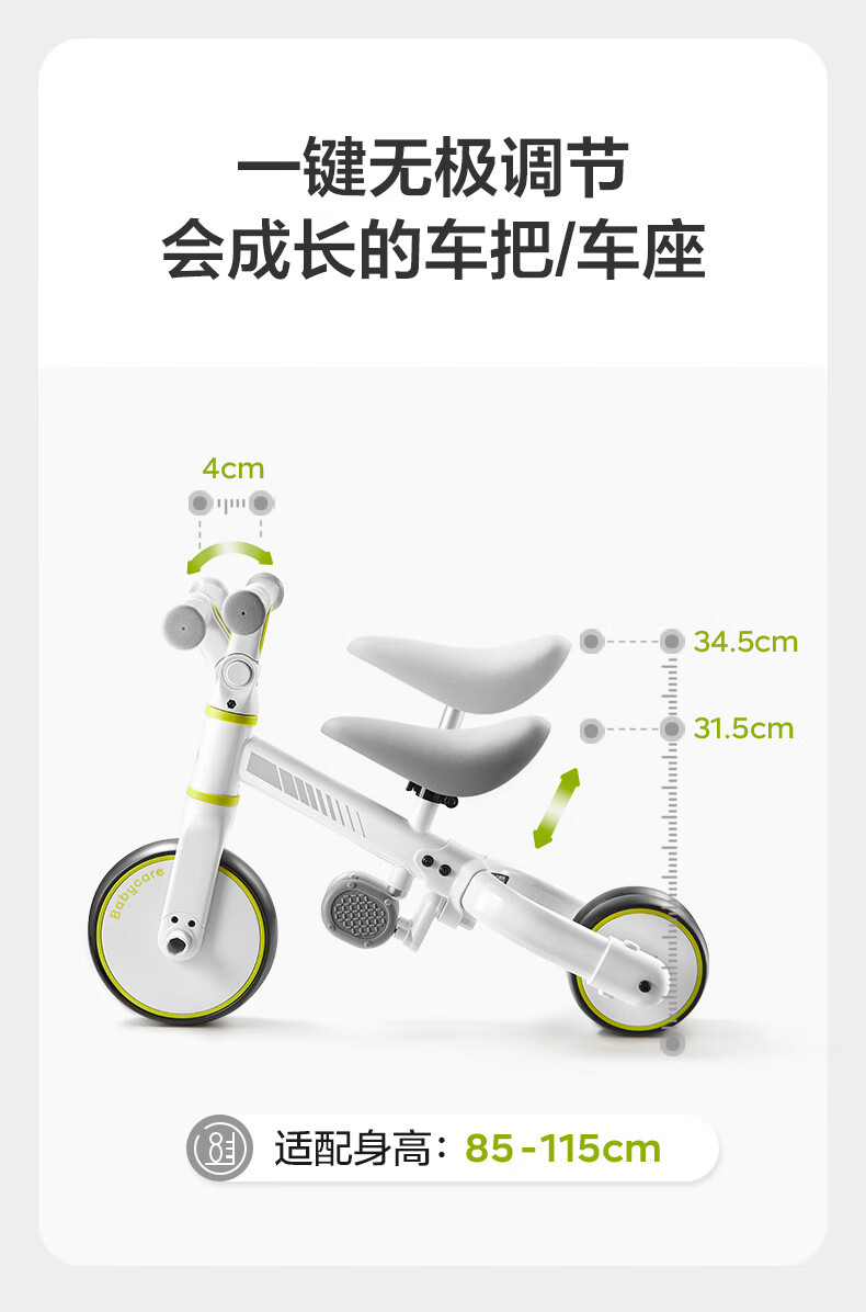 babycare儿童三轮车宝宝平衡脚踏车多功能二合一学步滑步车1-5岁 辛德白