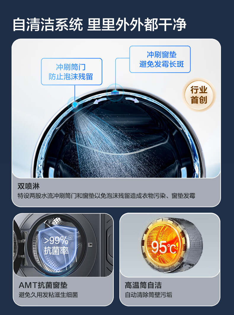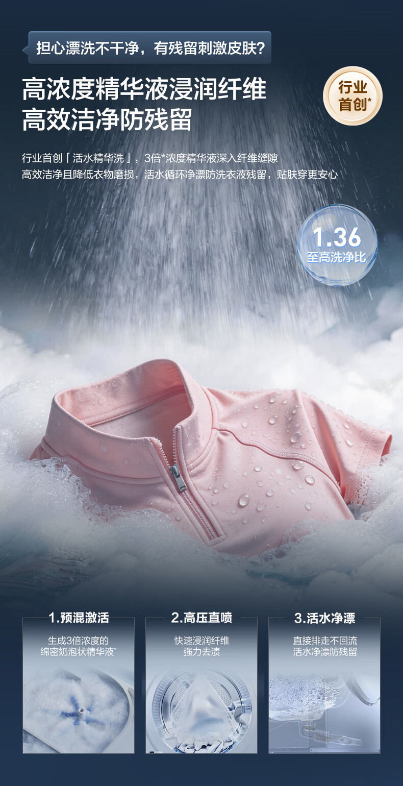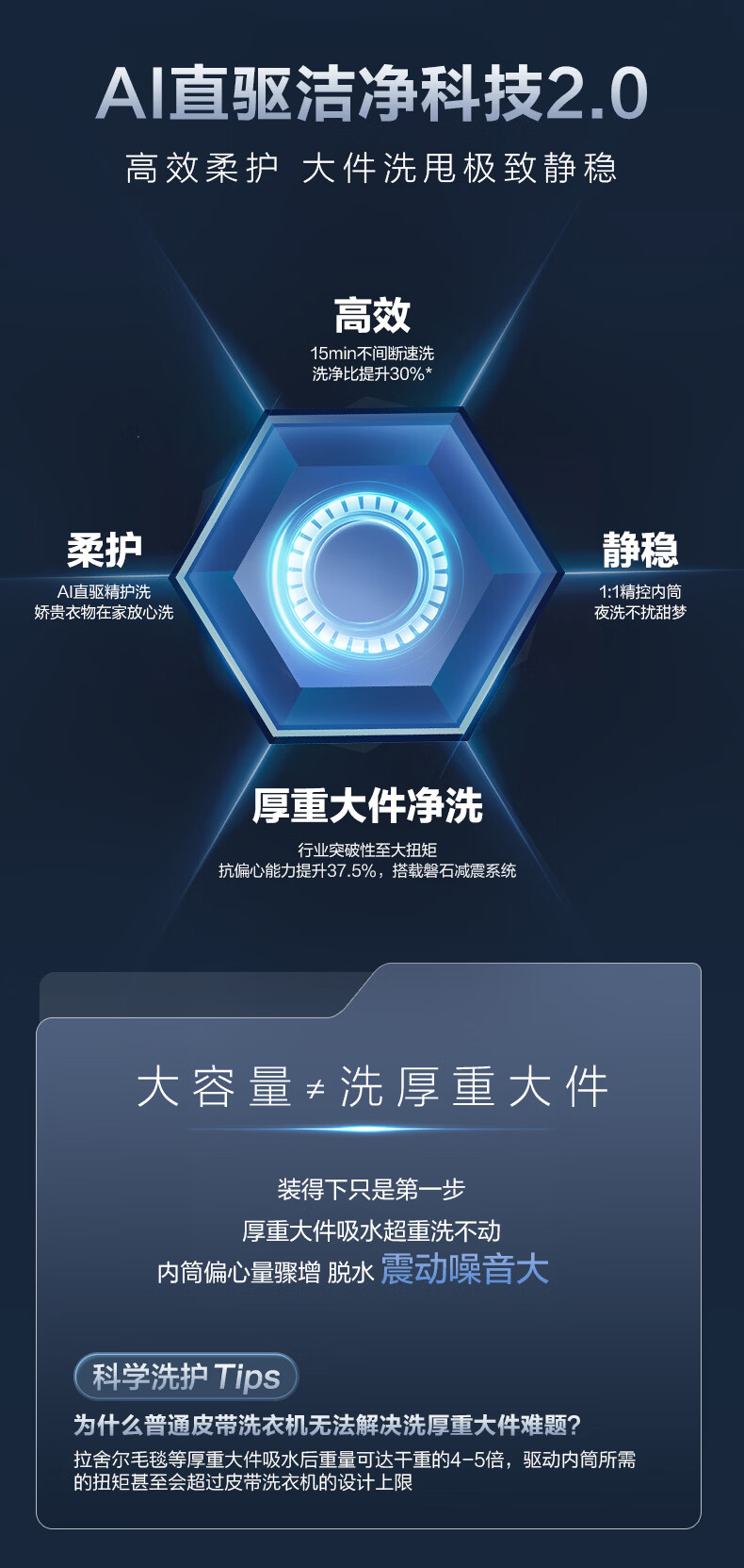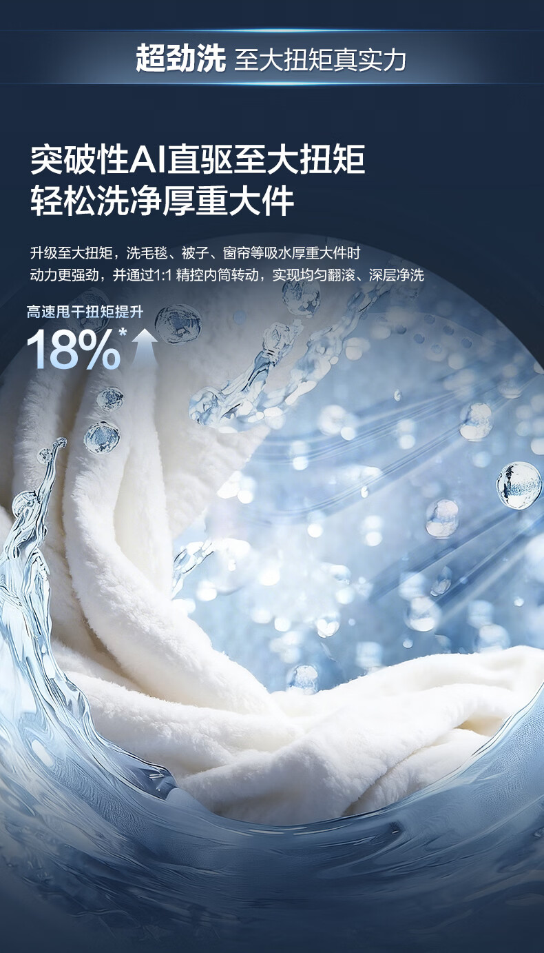 海尔(Haier)云溪5.0 D1 全自动滚筒洗衣机12KG 家用大容量全家筒 AI直驱洁净双效除菌 BLE7AD1U1 全家筒12KG滚筒 单洗