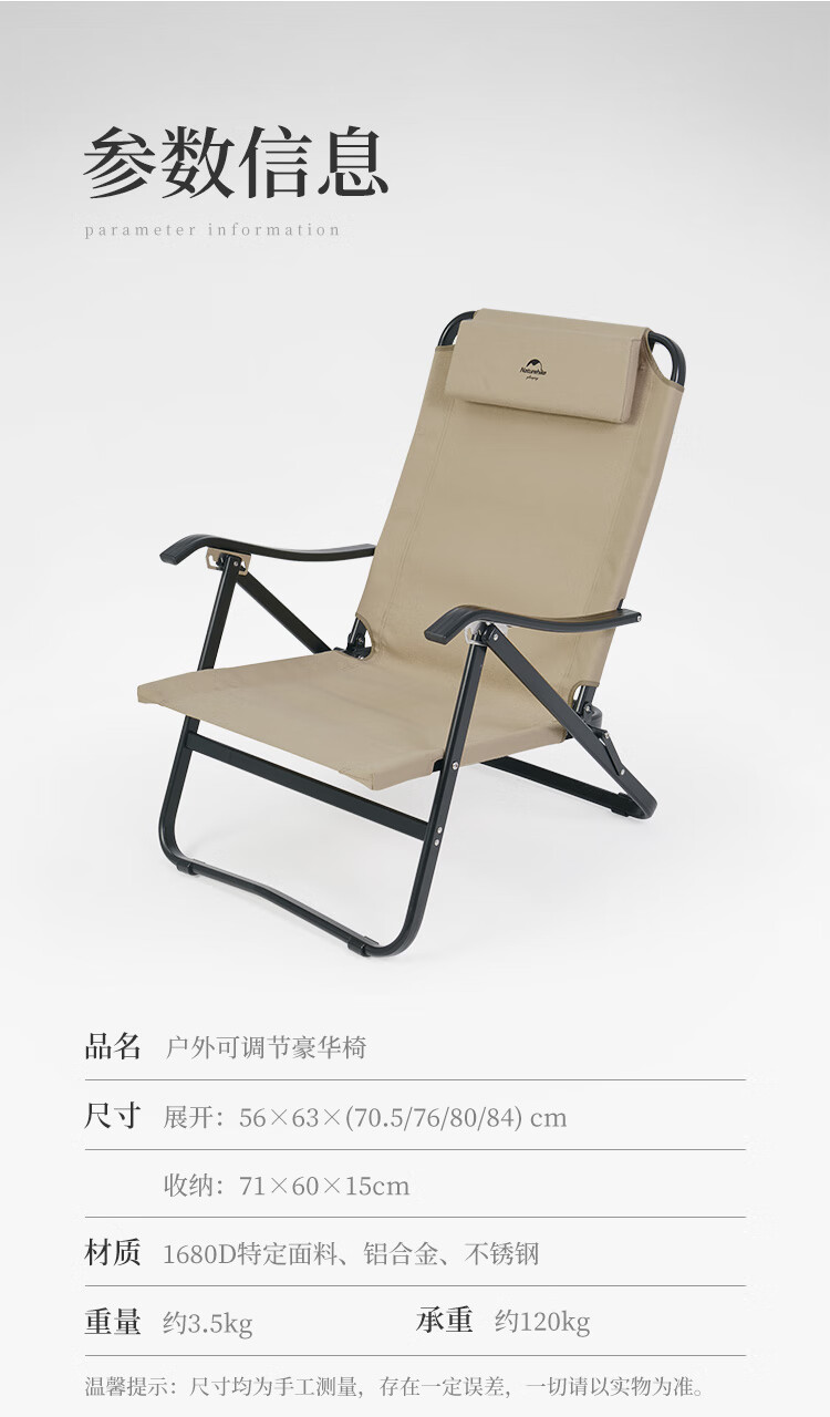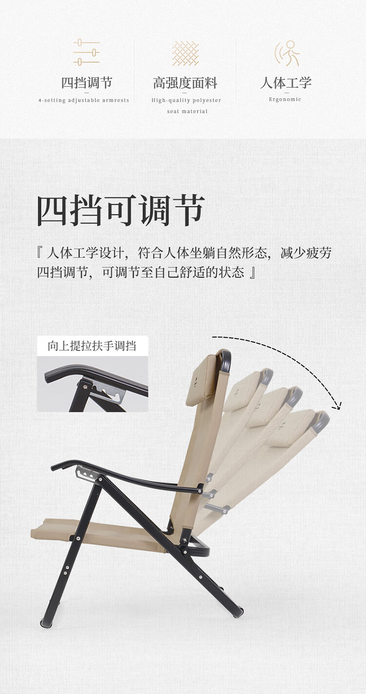 Naturehike挪客四档可调节折叠躺椅休闲椅户外露营钓鱼沙滩便携午睡午休陪护 卡其色