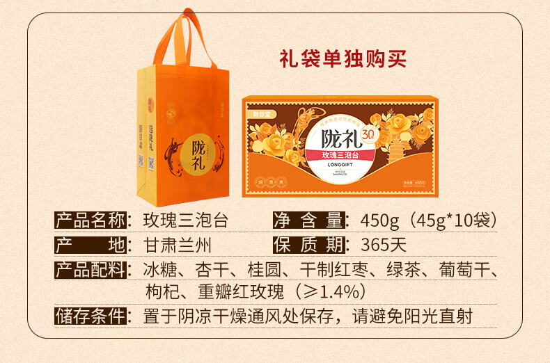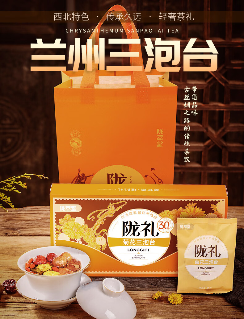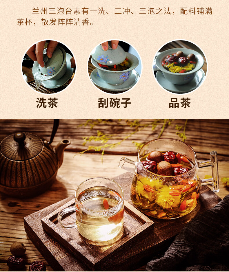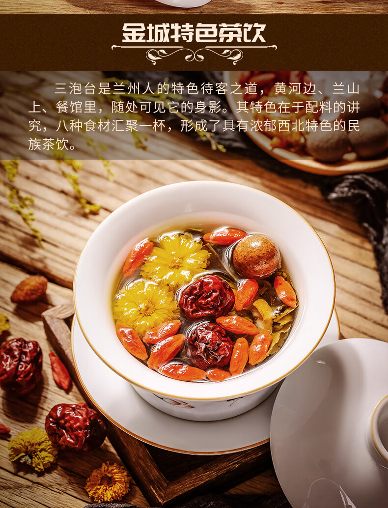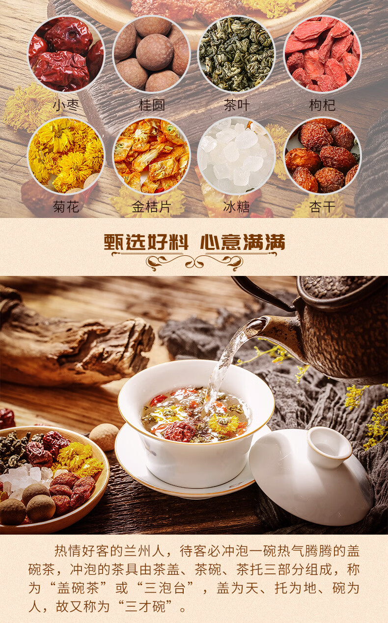 陇萃堂 兰州三泡台玫瑰花茶八宝茶红枣枸杞菊花养生茶兰州三炮台450g 盒装450g1盒(经典)