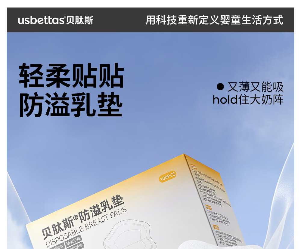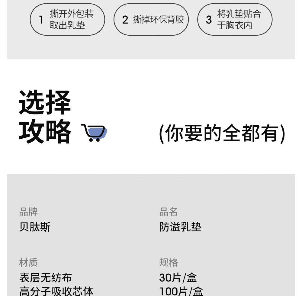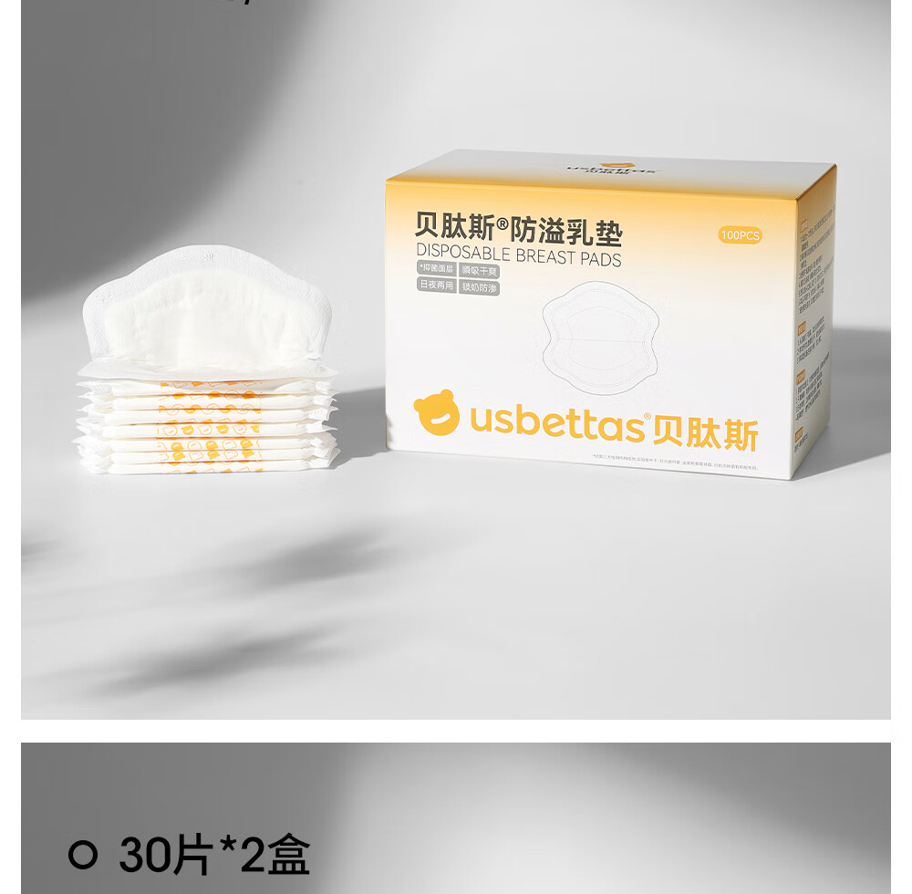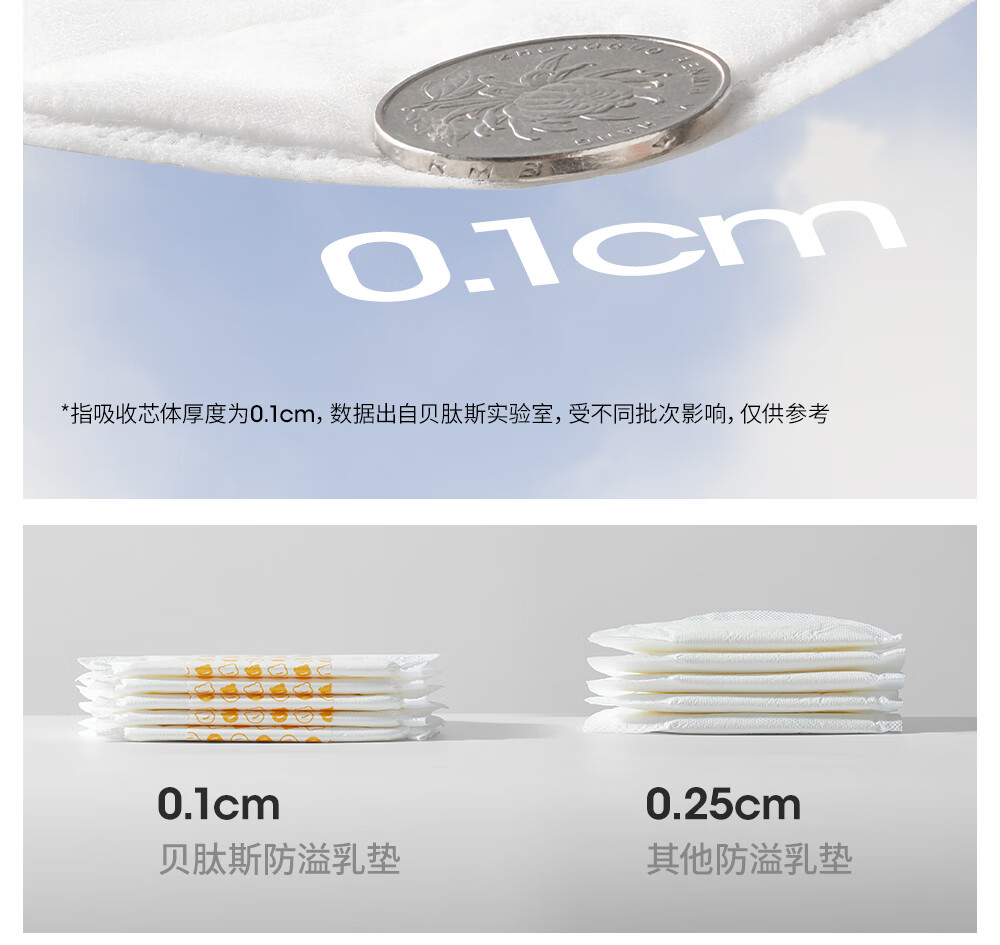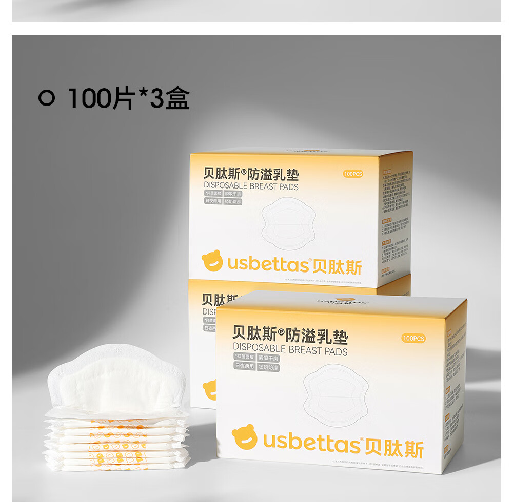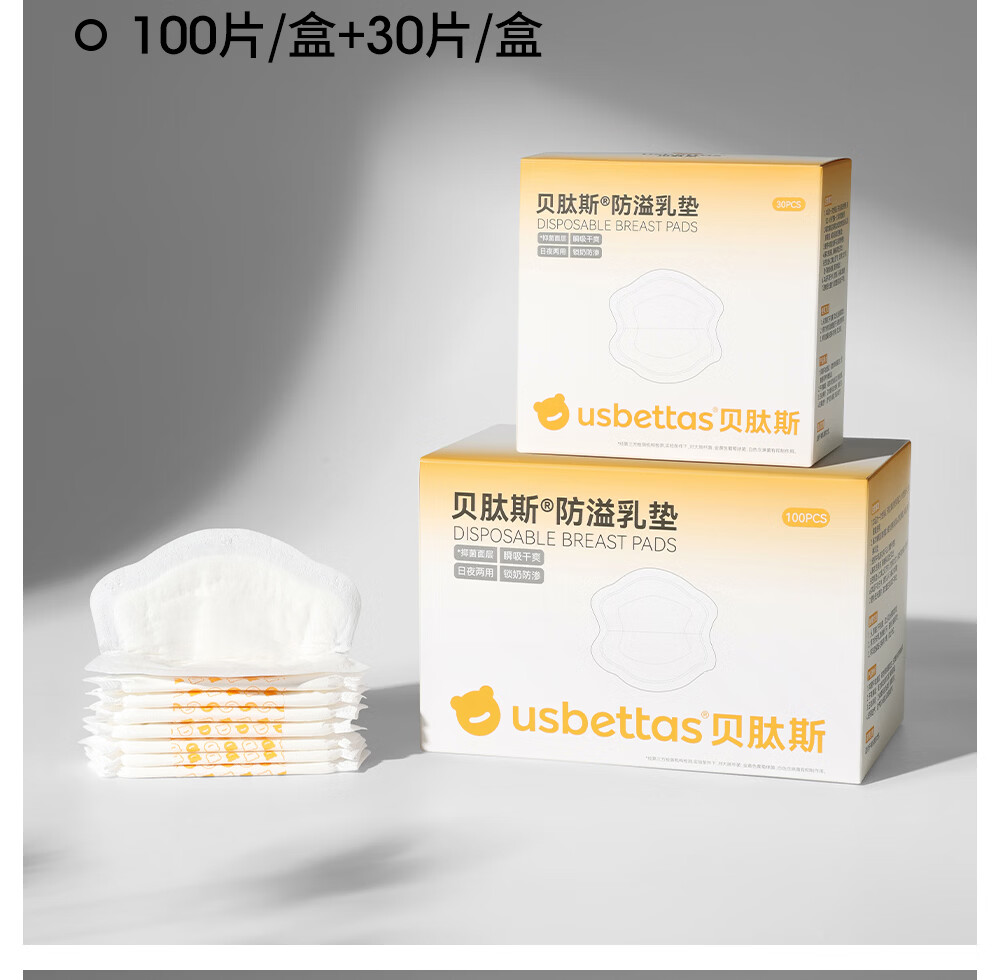 贝肽斯防溢乳垫超柔3D立体产后隔奶垫一次性超薄瞬吸透气哺乳期防漏乳贴 100片装 【1盒】-抑菌柔肤