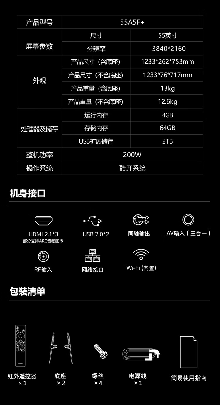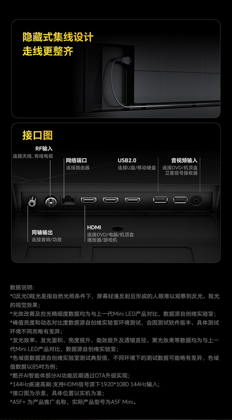创维电视黑骑士A5F+ 55英寸低反防眩Mini LED电视机 液晶智能家电平板游戏 国家补贴 A5F Mini