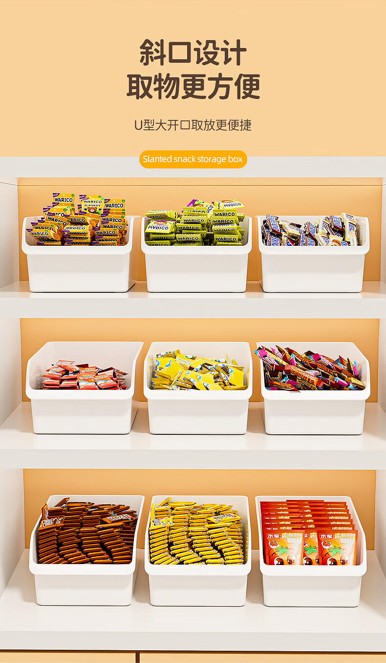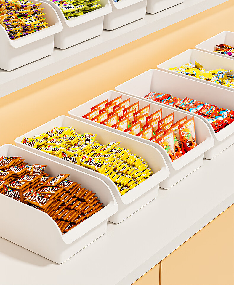 稻草熊零食收纳盒超市便利店糖果食物陈列摆放盒商用货架整理盒加厚 象牙白【单个装】