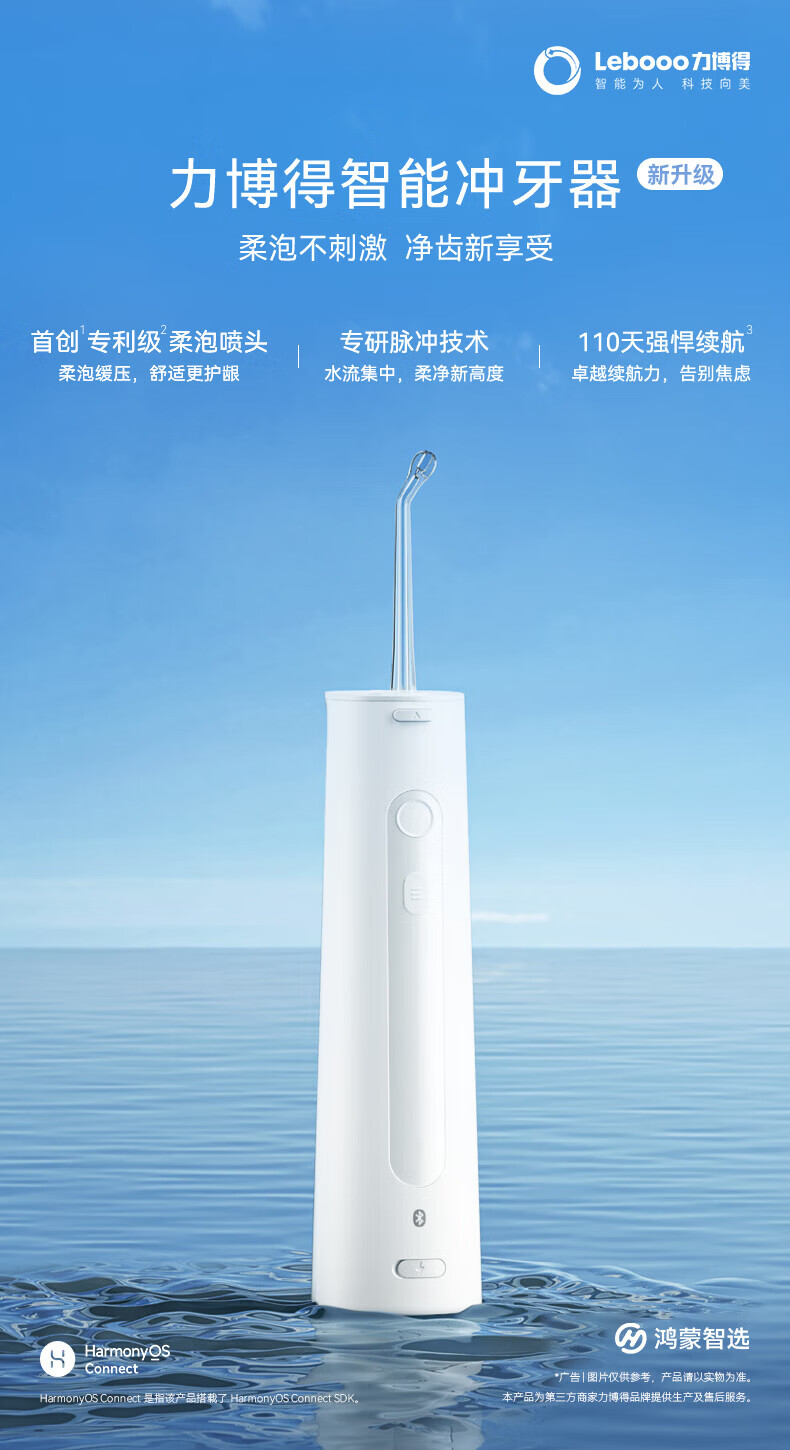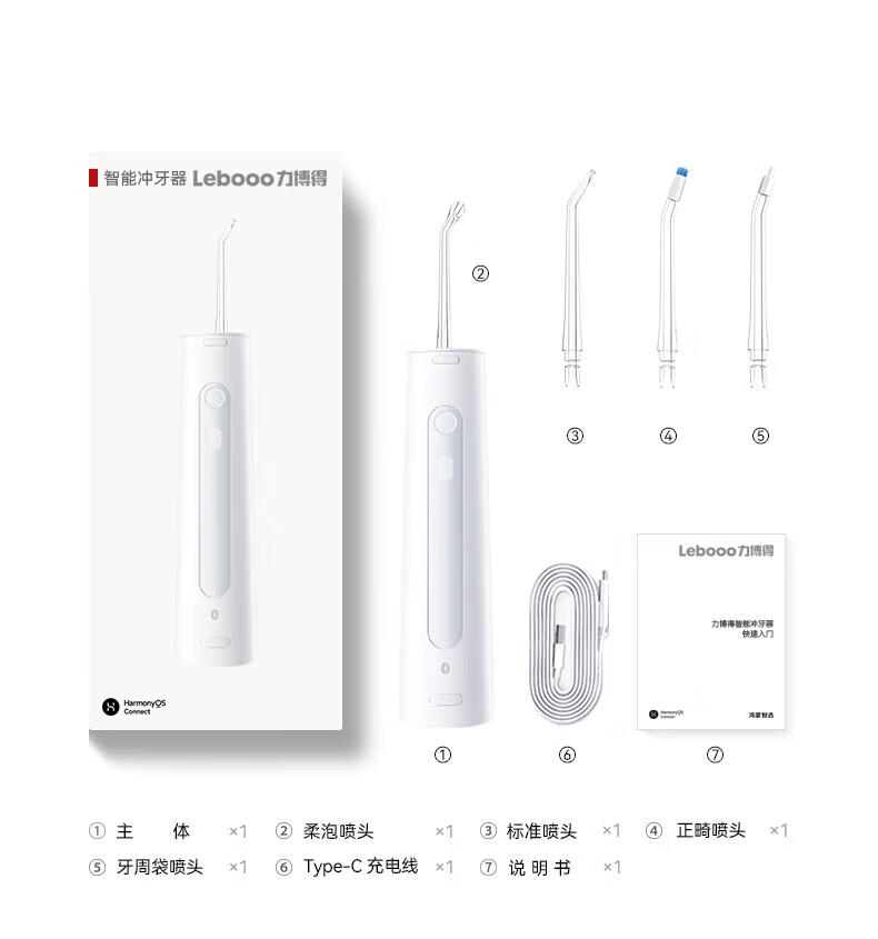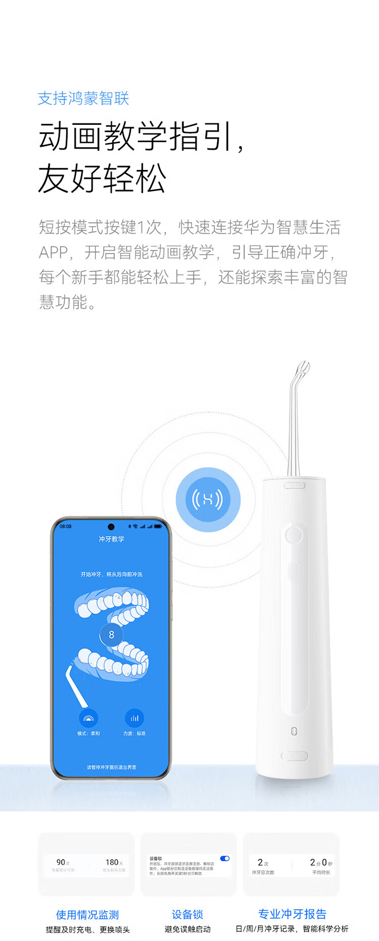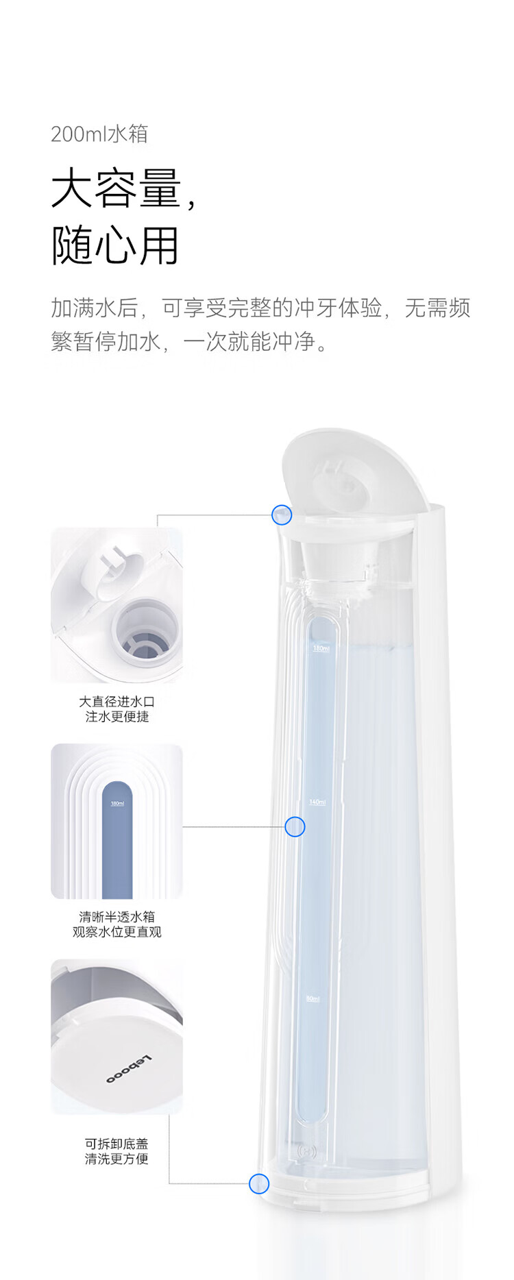 鸿蒙智选力博得智能冲牙器立式洗牙器水牙线家用立式便携式牙齿冲洗器口腔清洁器 【智选冲牙器】白色 4支喷头-200ML大水箱