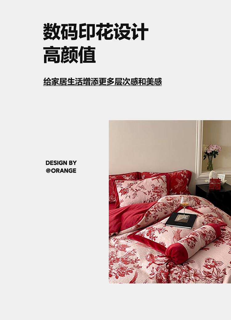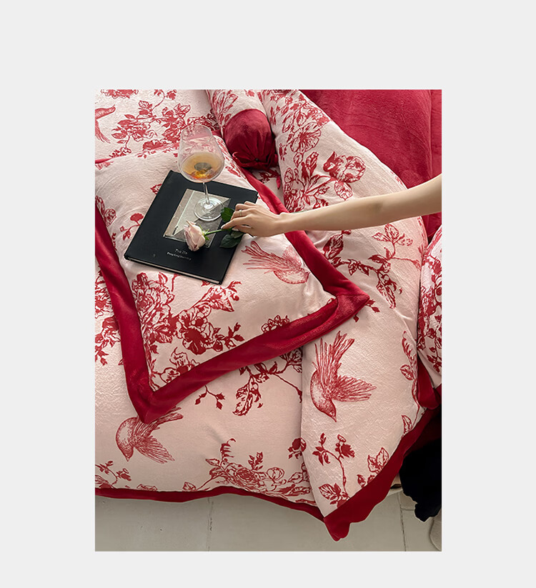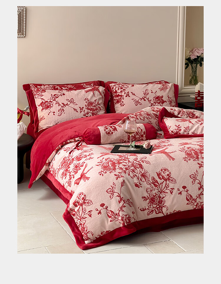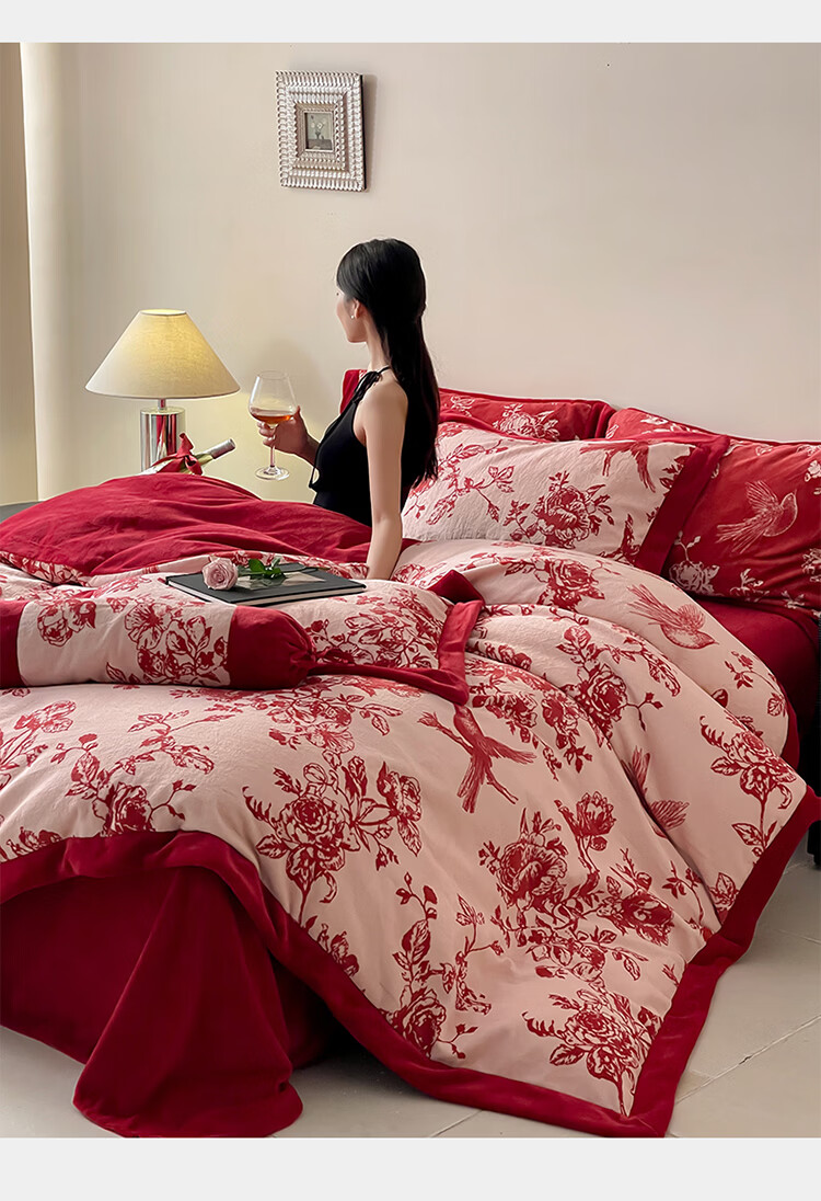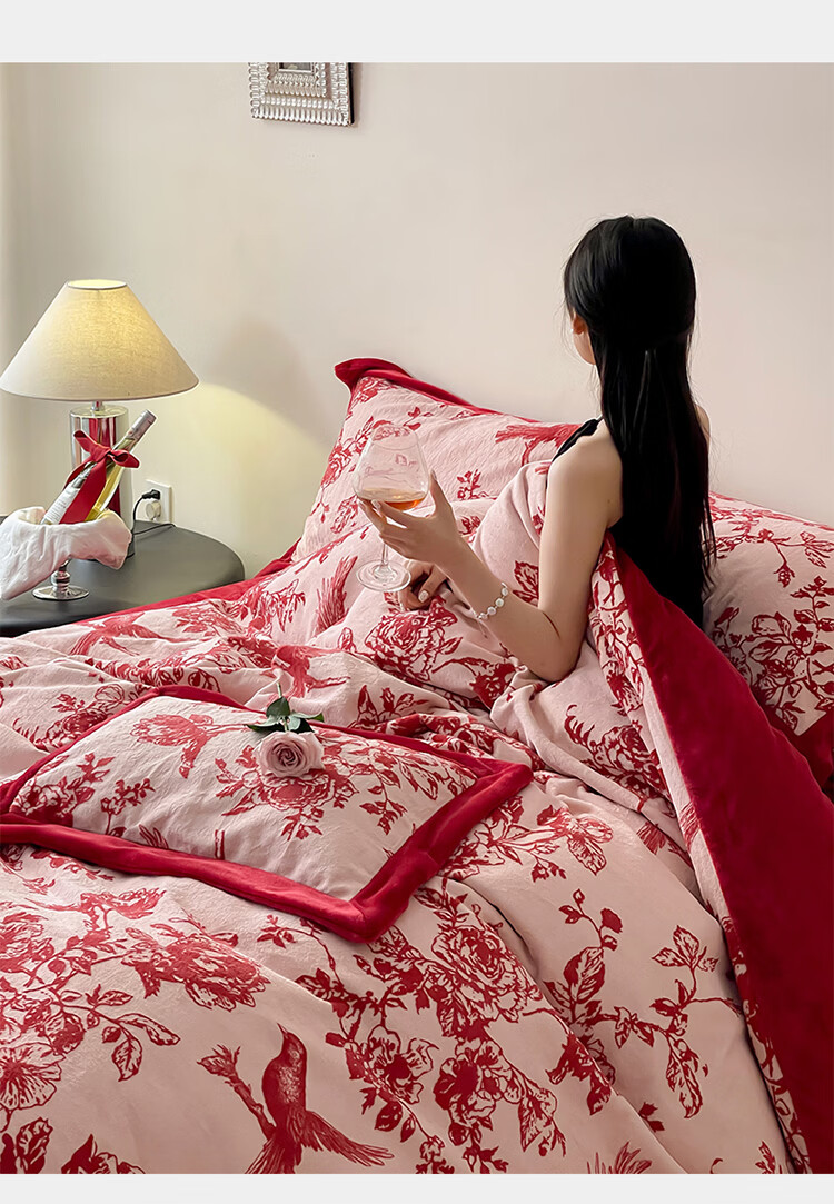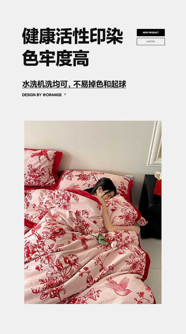 ROLAND LIVE加厚牛奶绒四件套红色喜庆秋冬保暖被套床单裸睡亲肤床上用品 YM 牛奶绒四件套-喜上枝头 1.5-1.8米床 |【被套200*230cm】