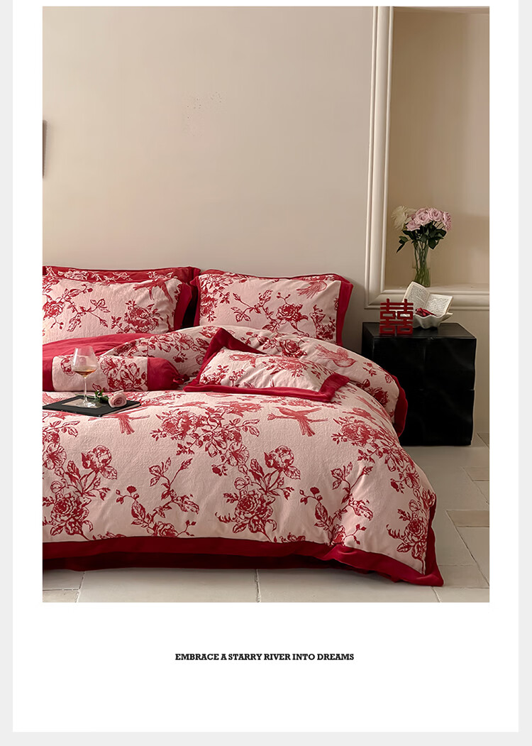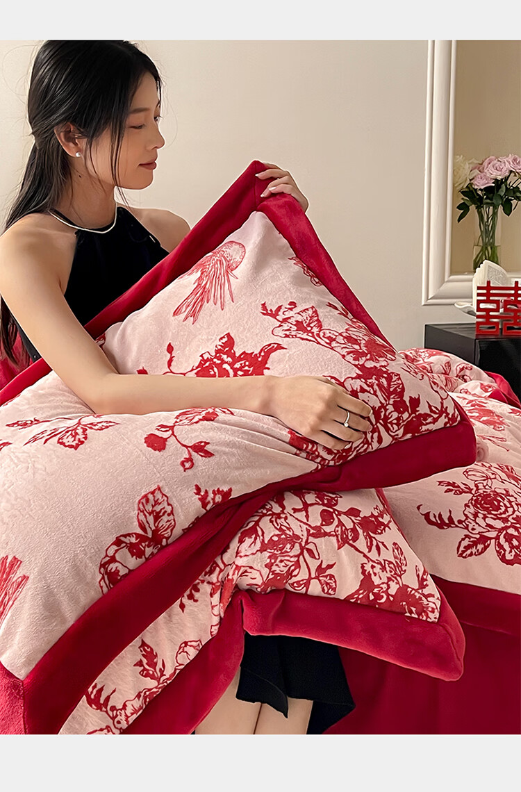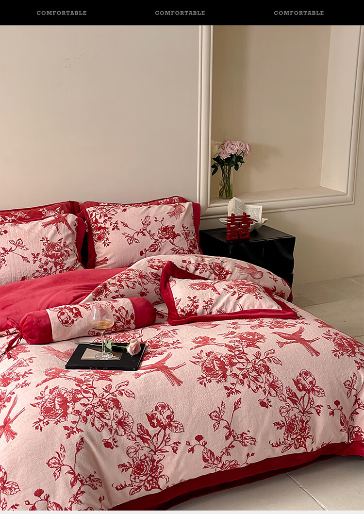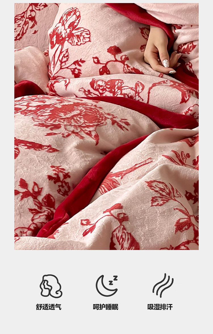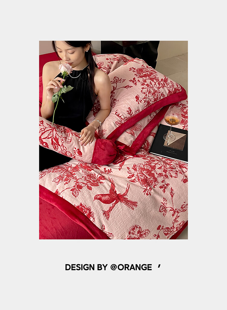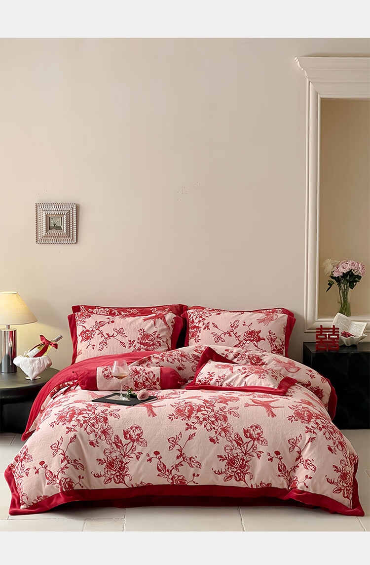 ROLAND LIVE加厚牛奶绒四件套红色喜庆秋冬保暖被套床单裸睡亲肤床上用品 YM 牛奶绒四件套-喜上枝头 1.5-1.8米床 |【被套200*230cm】