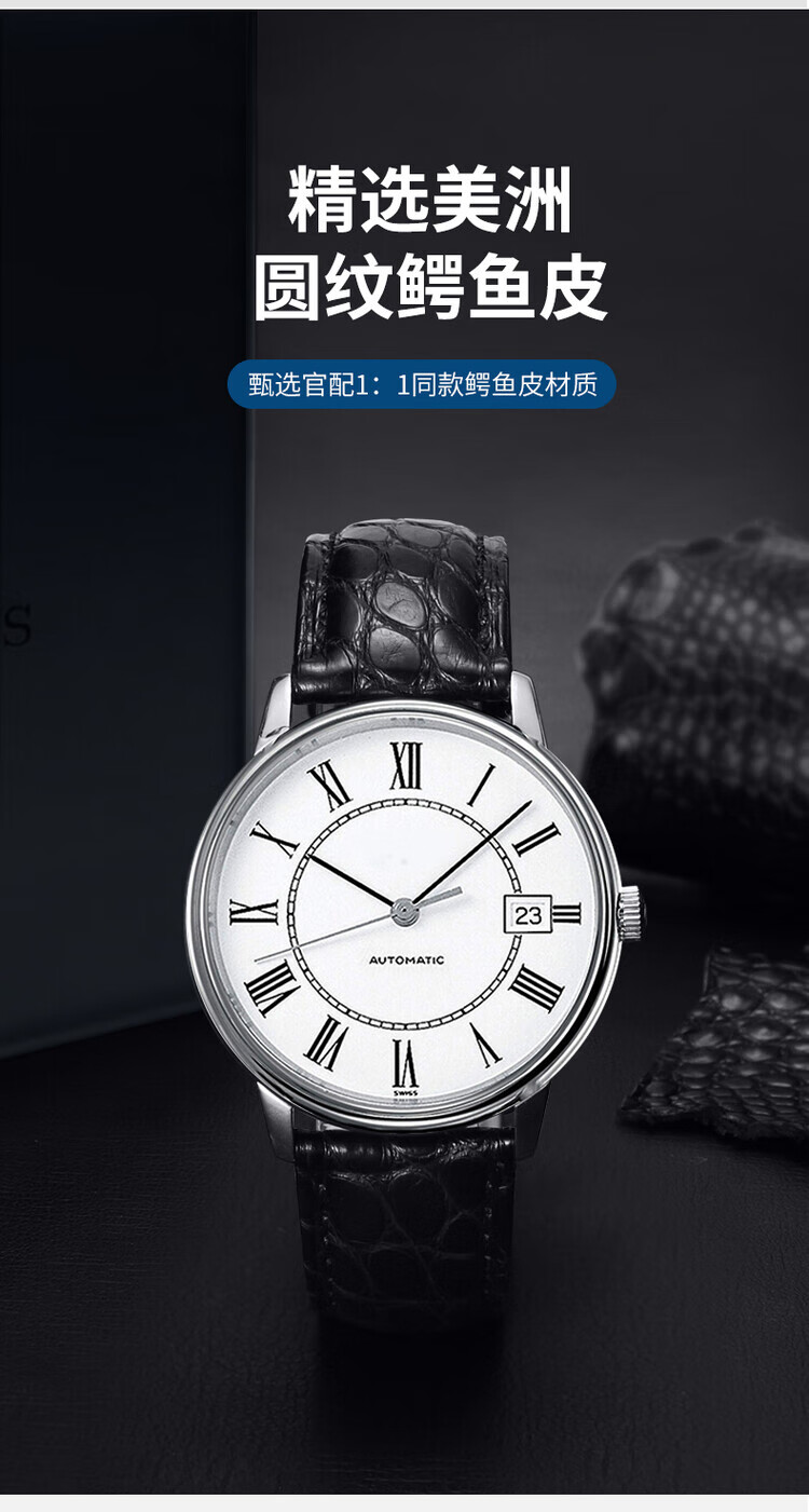 依波表带鳄鱼皮手表带真皮蝶恋花男女款蝴蝶扣原装款式表链黑色棕 黑色鳄鱼皮+银色蝴蝶扣 配送工具视频针