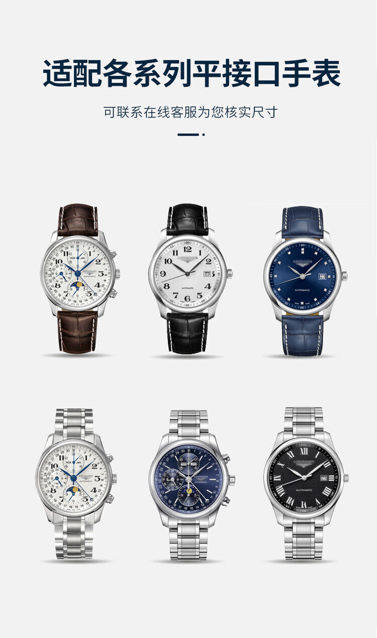 宝路华表带鳄鱼皮手表带原装款式真皮表链蝴蝶扣/针扣男女士机械 黑色银色蝴蝶扣 配送工具视频针
