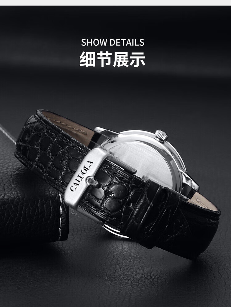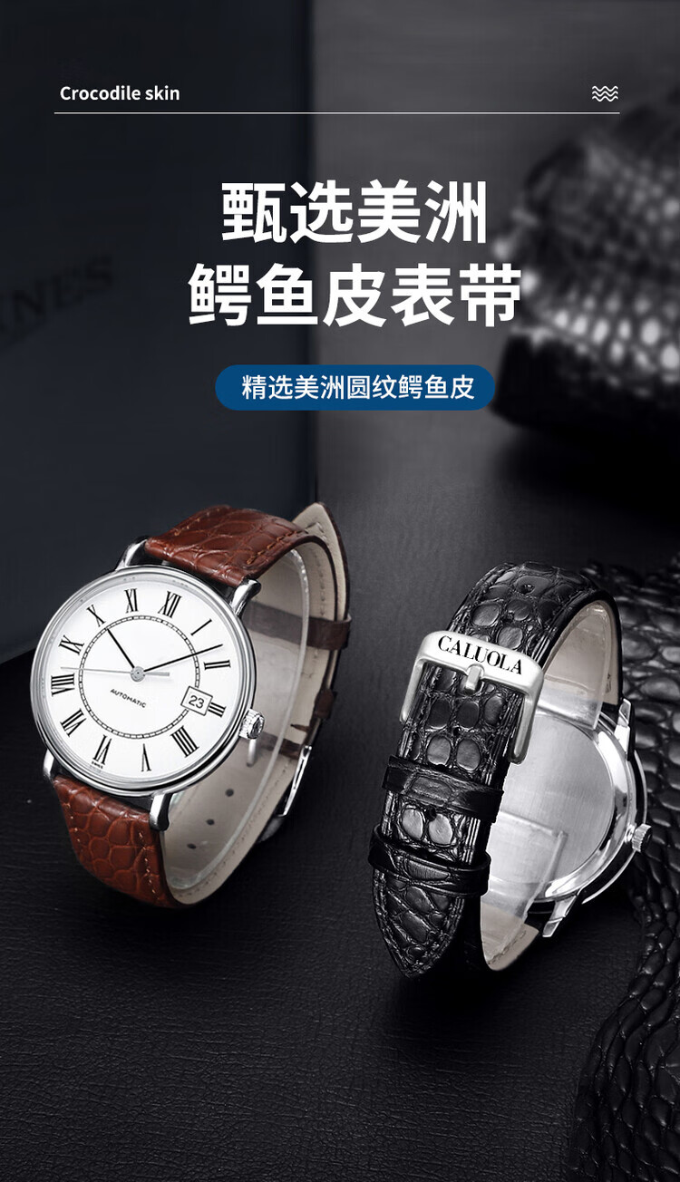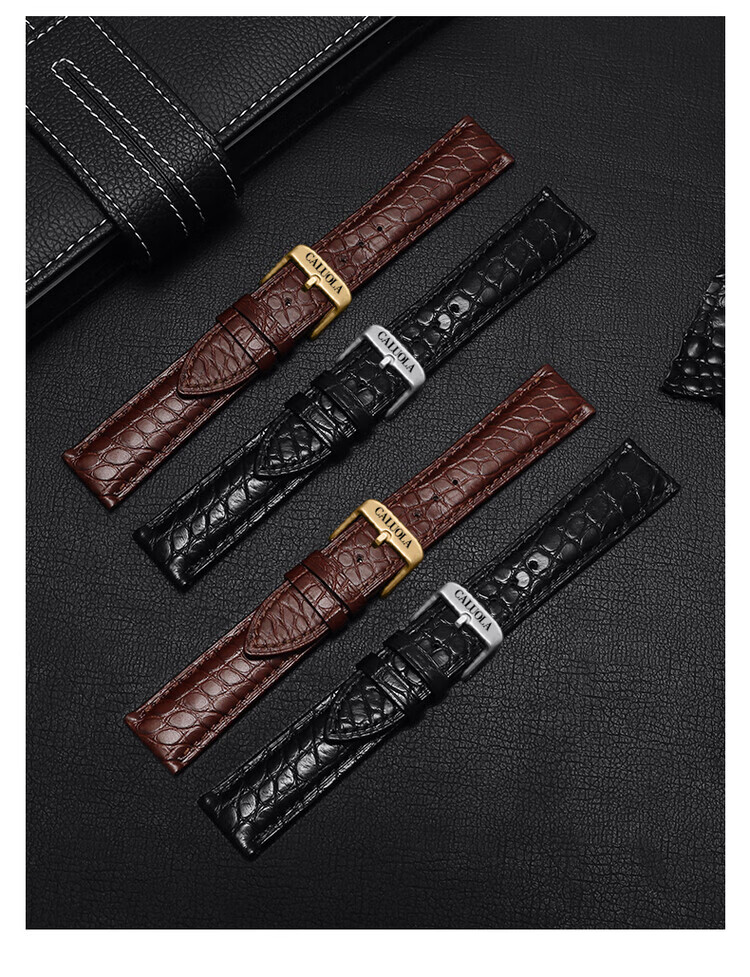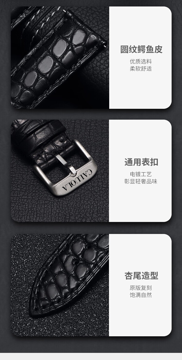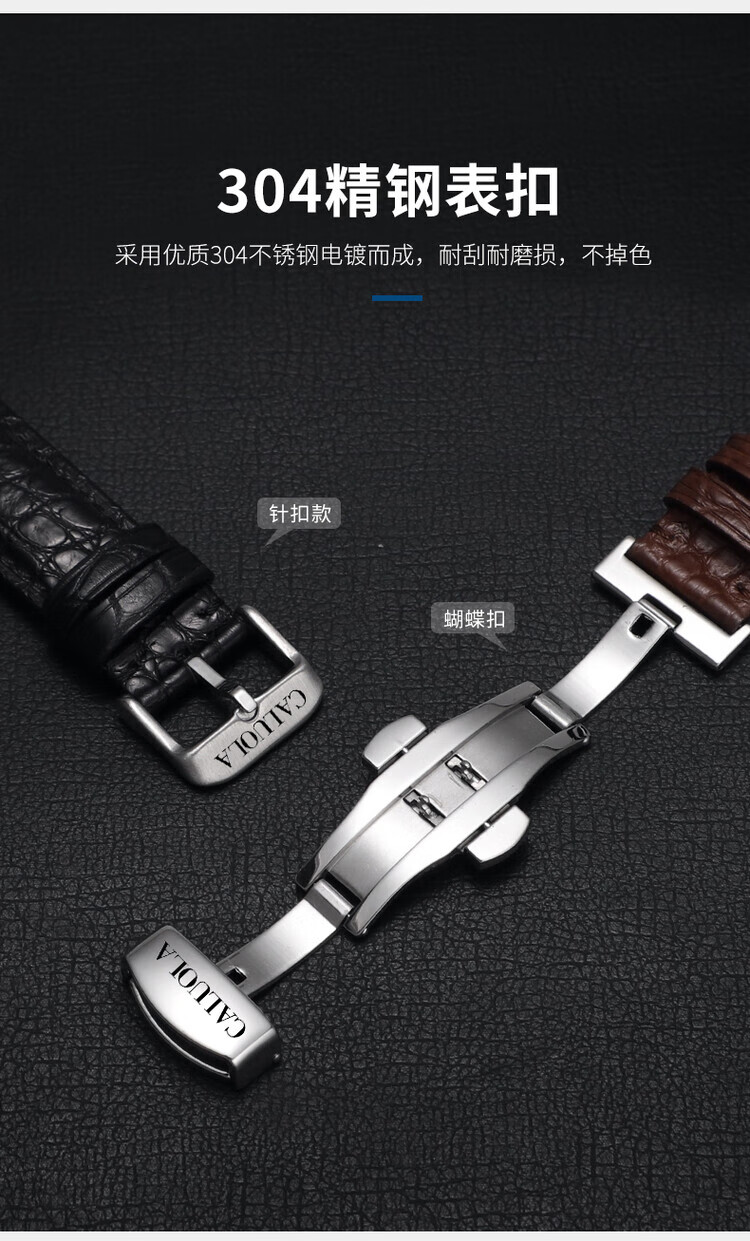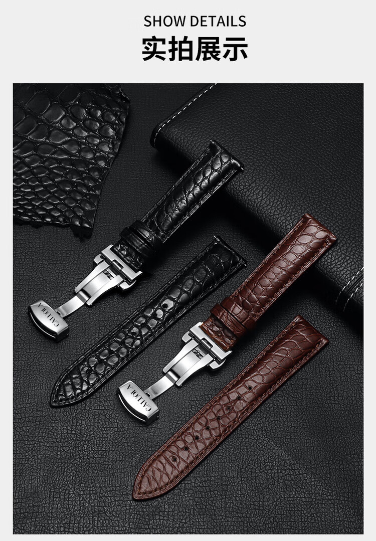 卡罗莱表带鳄鱼皮手表带男女真皮蝴蝶扣原装款皮表链配件20/22mm 黑色--银色蝴蝶扣 20mm接口宽度
