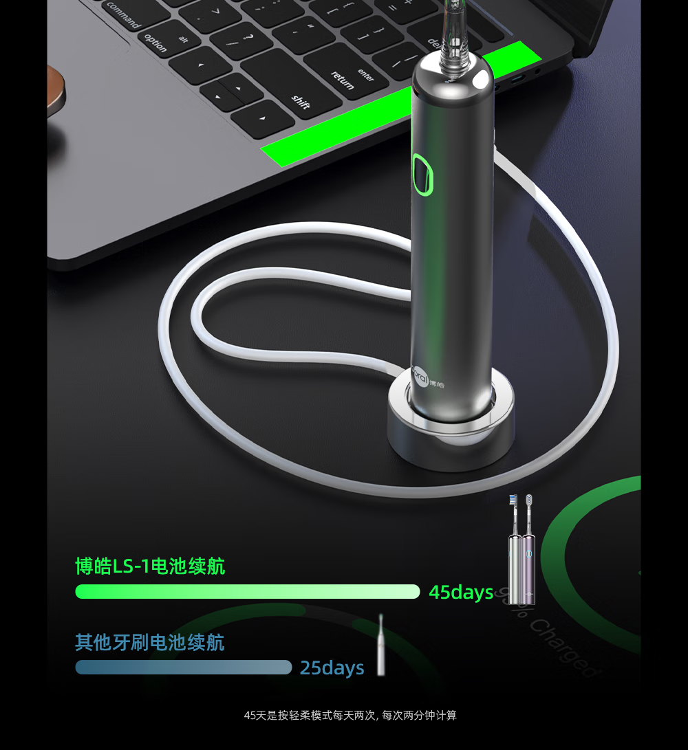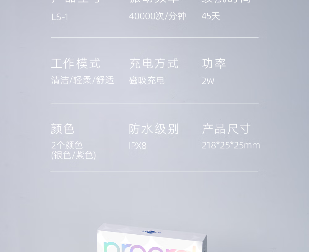 博皓(prooral)电动牙刷铝合金成人扫振自动牙刷磁吸充电情侣牙刷便携 智能牙刷软毛刷头 男女士专用 LS-1 紫色