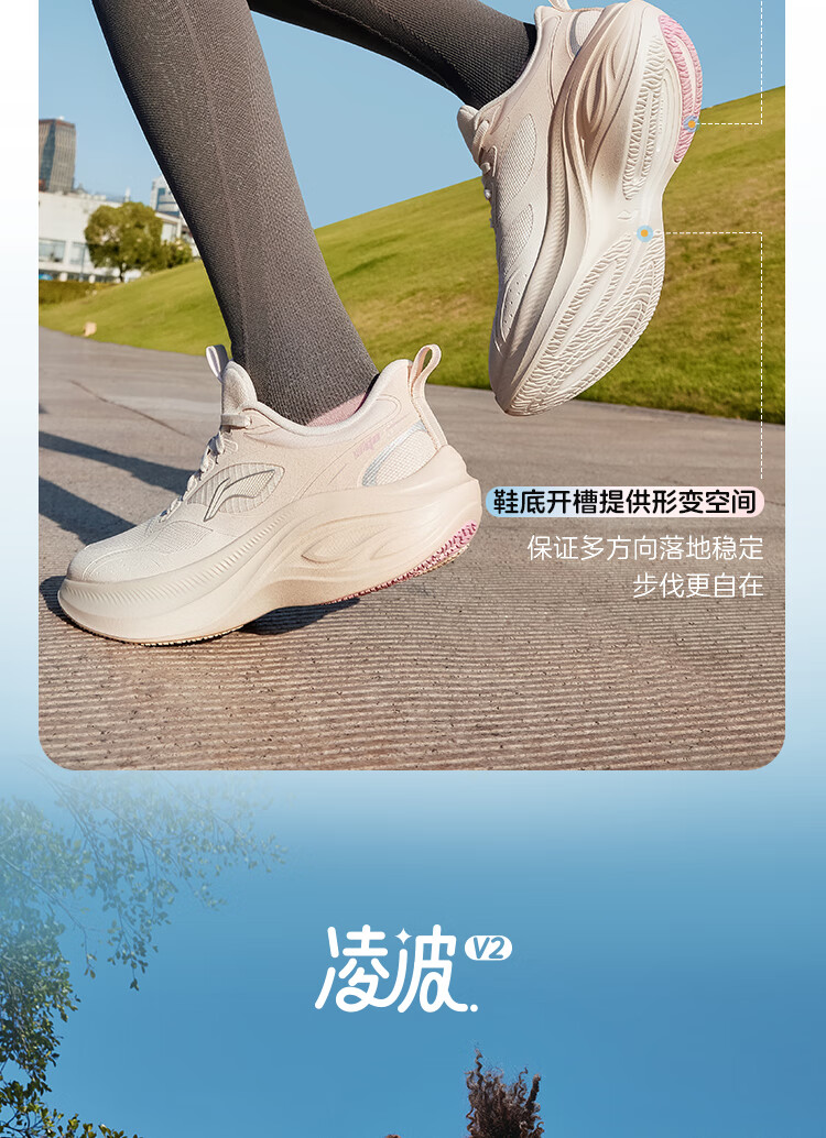 李宁凌波v2休闲慢跑鞋女鞋25秋冬季脚感舒适简约百搭运动鞋ARSV104