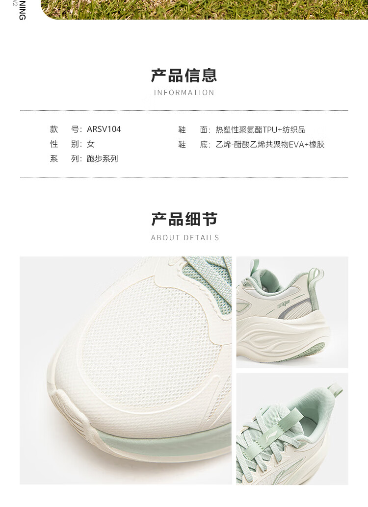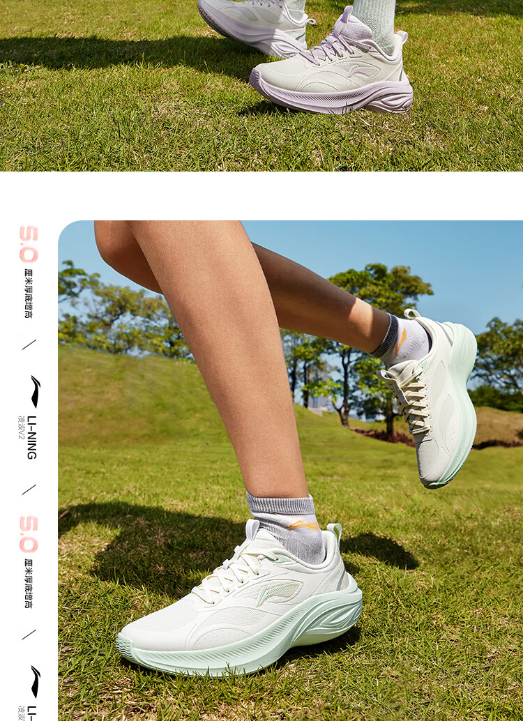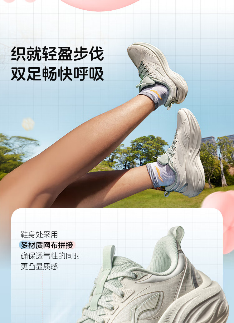 李宁吾跃3.0丨跑步鞋女鞋网面透气舒适体测运动鞋休闲慢跑鞋ARSV024