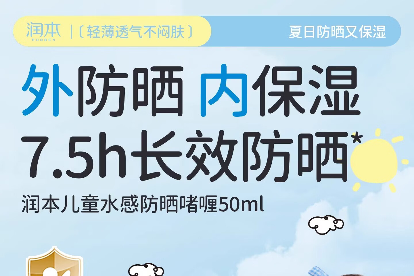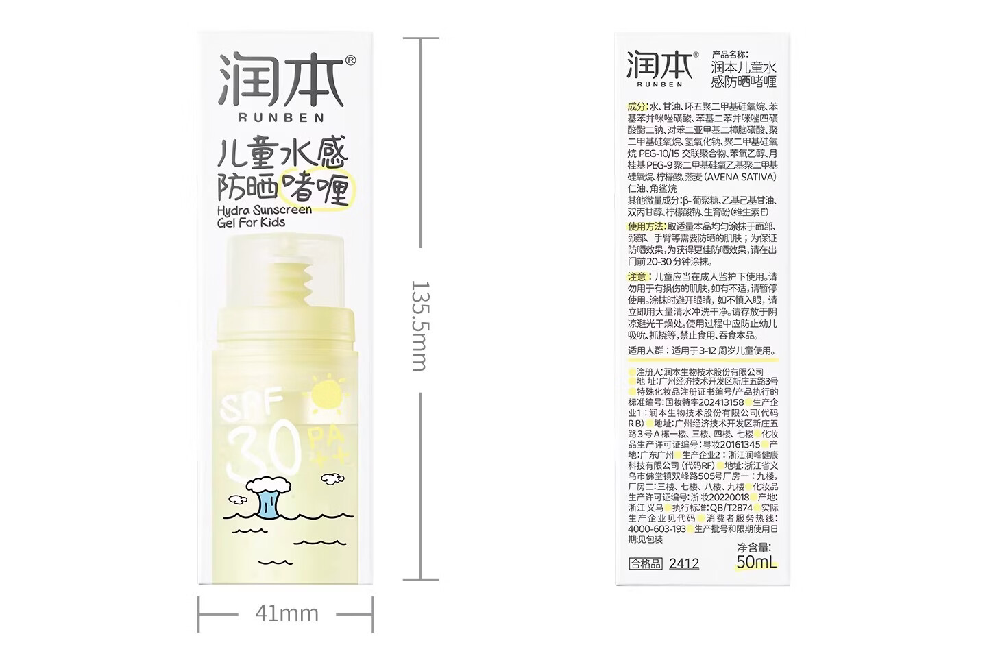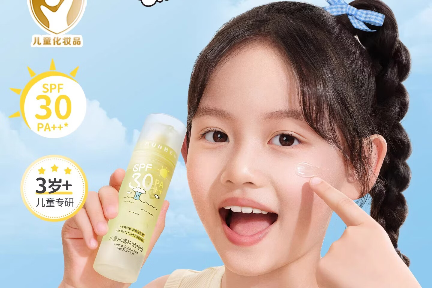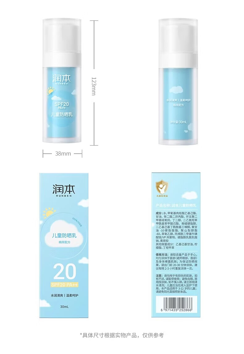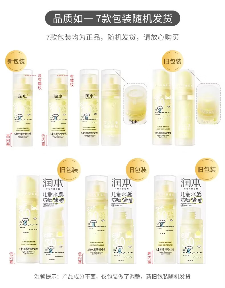 润本(RUNBEN)儿童防晒霜透明啫喱婴儿宝宝女童专用纯物理隔离紫外线防晒乳 50ml 【清爽速成膜】透明防晒啫喱