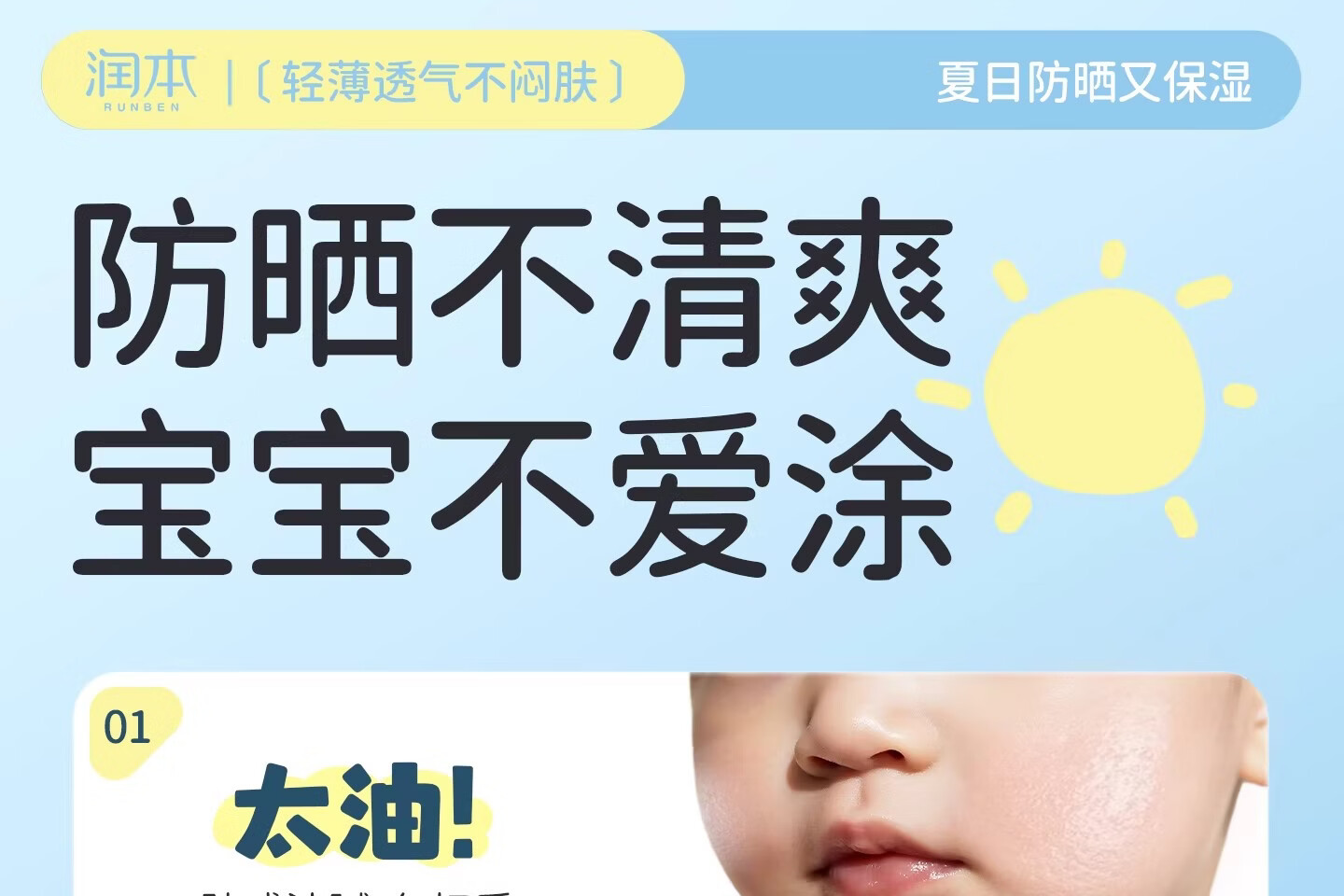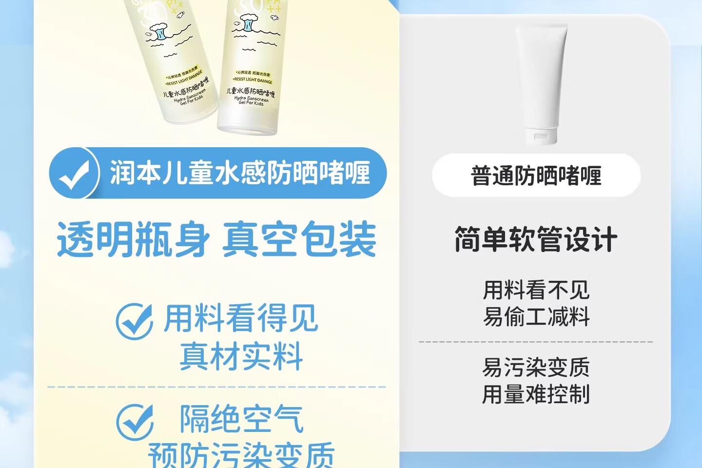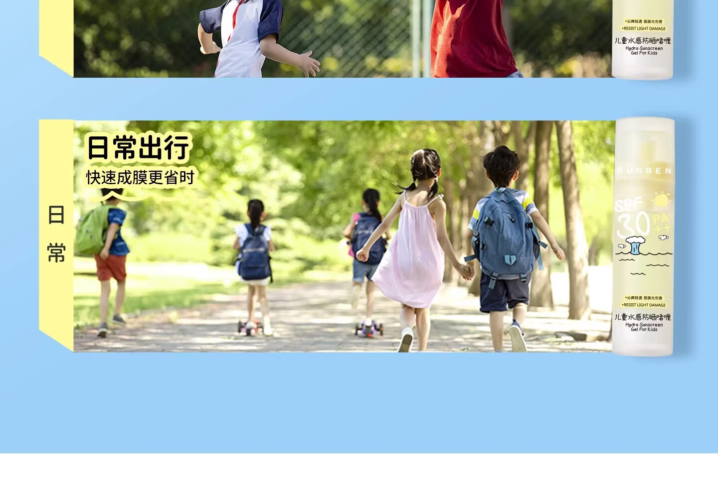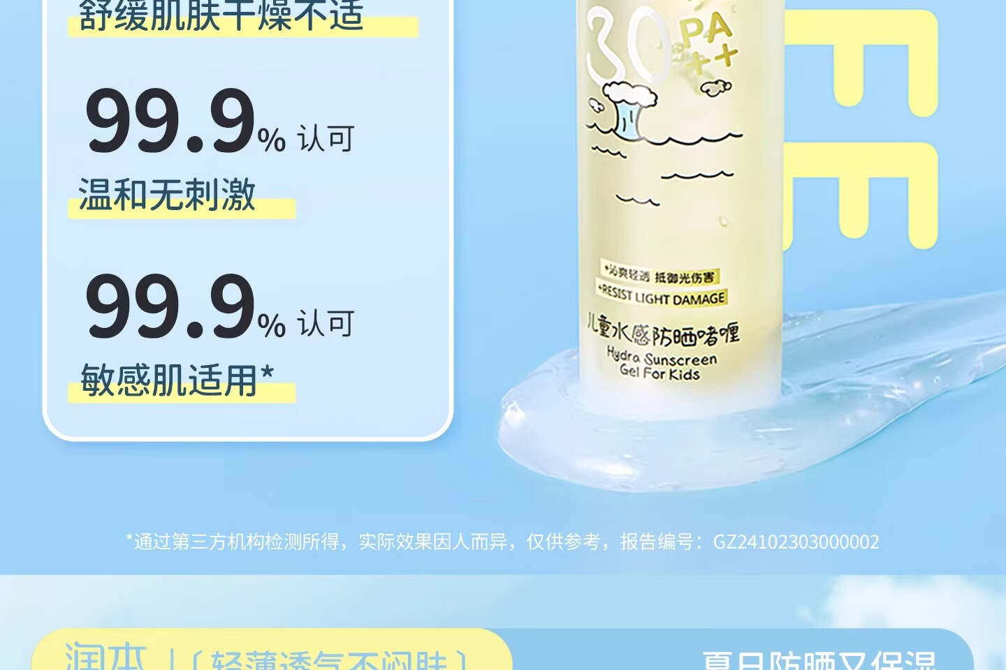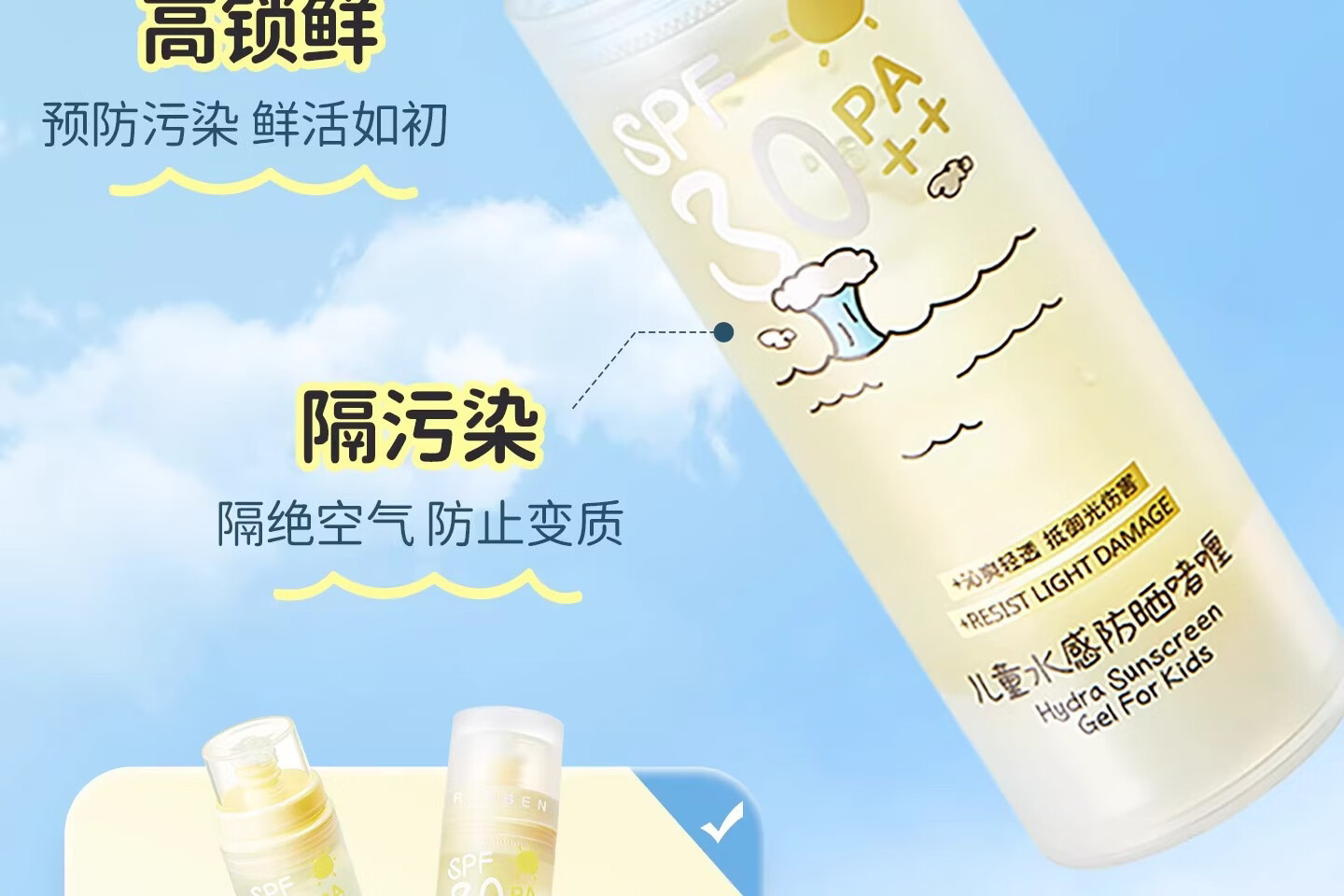 润本(RUNBEN)儿童防晒霜透明啫喱婴儿宝宝女童专用纯物理隔离紫外线防晒乳 50ml 【清爽速成膜】透明防晒啫喱