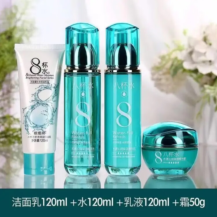欧缇尚新款八杯水保湿补水化妆品套装护肤水乳精华霜学生女清爽控油正品 2瓶水+赠品