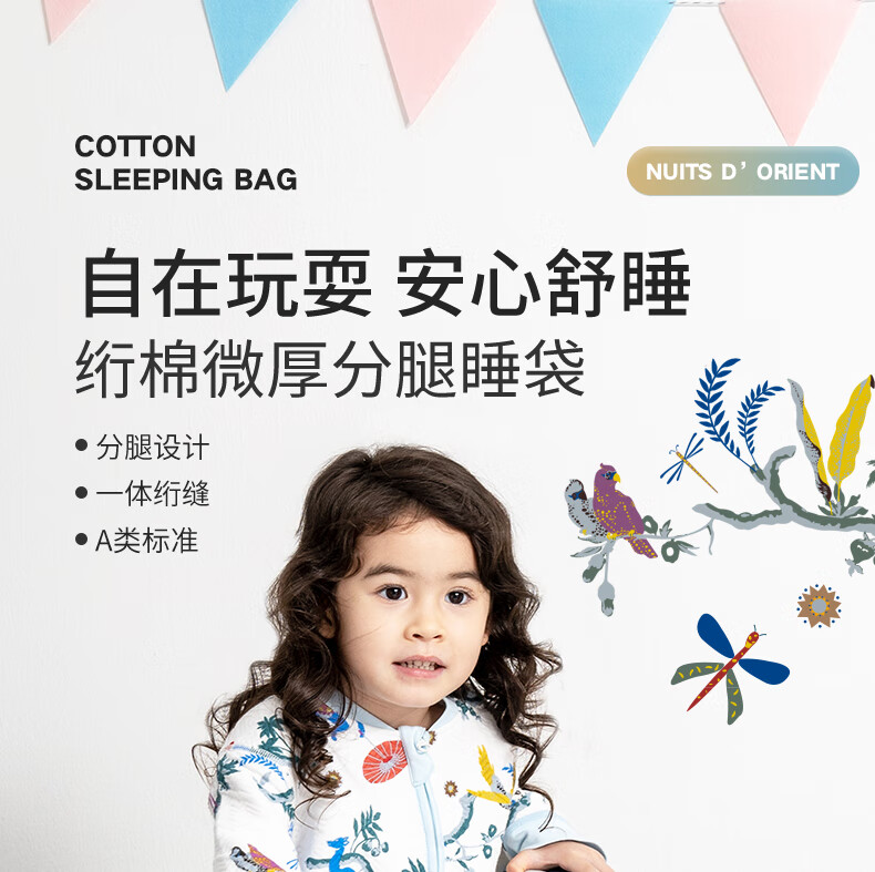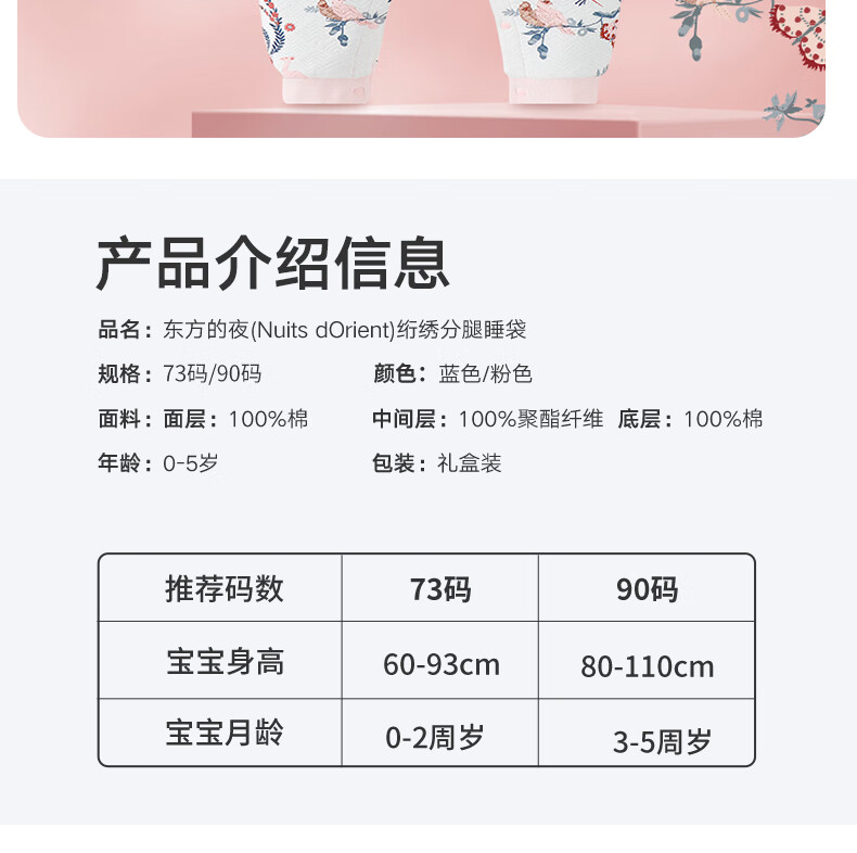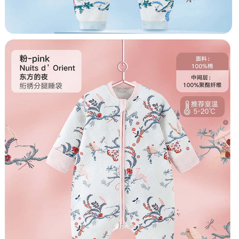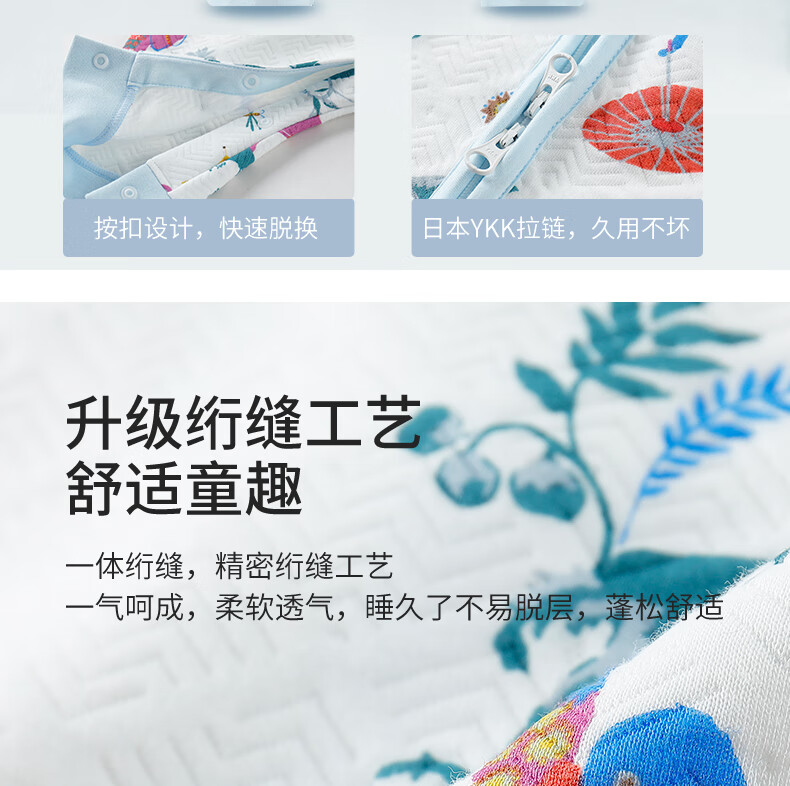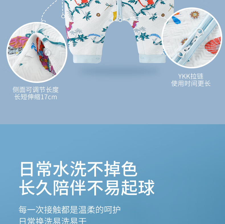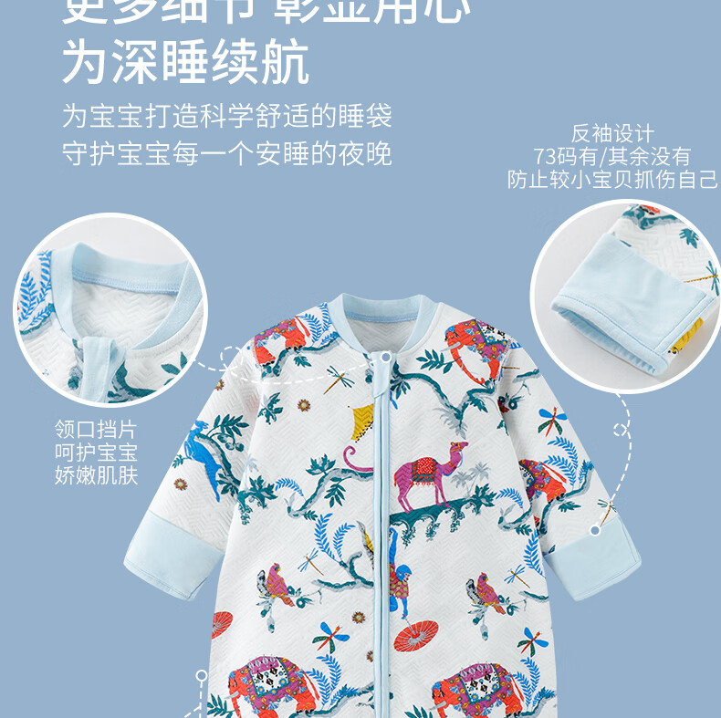 gb好孩子婴儿睡袋宝宝秋冬款防踢被宝宝恒温睡袋分腿防惊跳睡袋JTK 东方的夜 双重恒温抗菌 薄棉 蓝色【防踢】 90码(适合身高90-115cm)