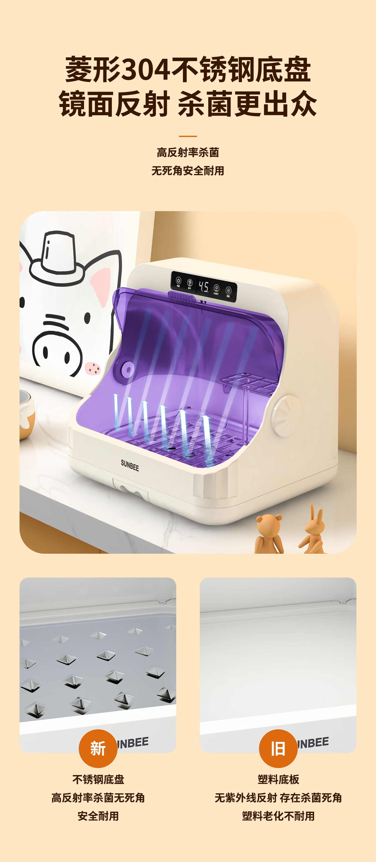 阳小蜜婴儿奶瓶消毒柜烘干紫外线一体机小型新生儿宝宝专用 旗舰款 不锈钢底盘 20L 紫外线消毒