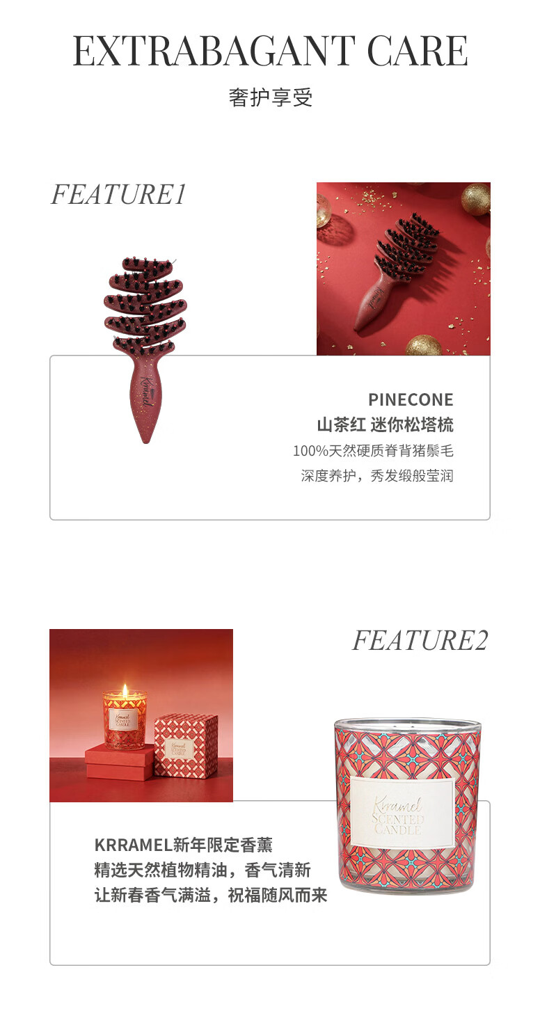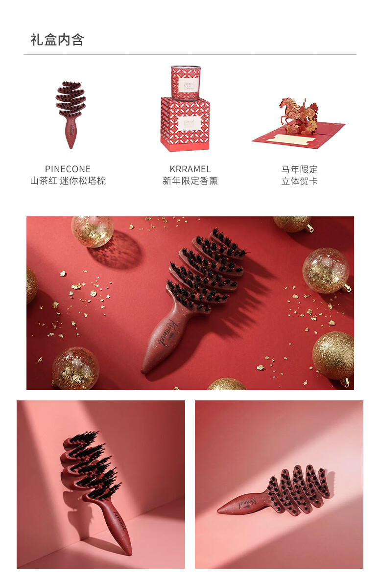 KRRAMEL生日礼物女士梳子礼盒小众高级感送闺蜜送女友梳子伴手礼新婚礼物 福至(中号松塔梳+中号气垫梳)