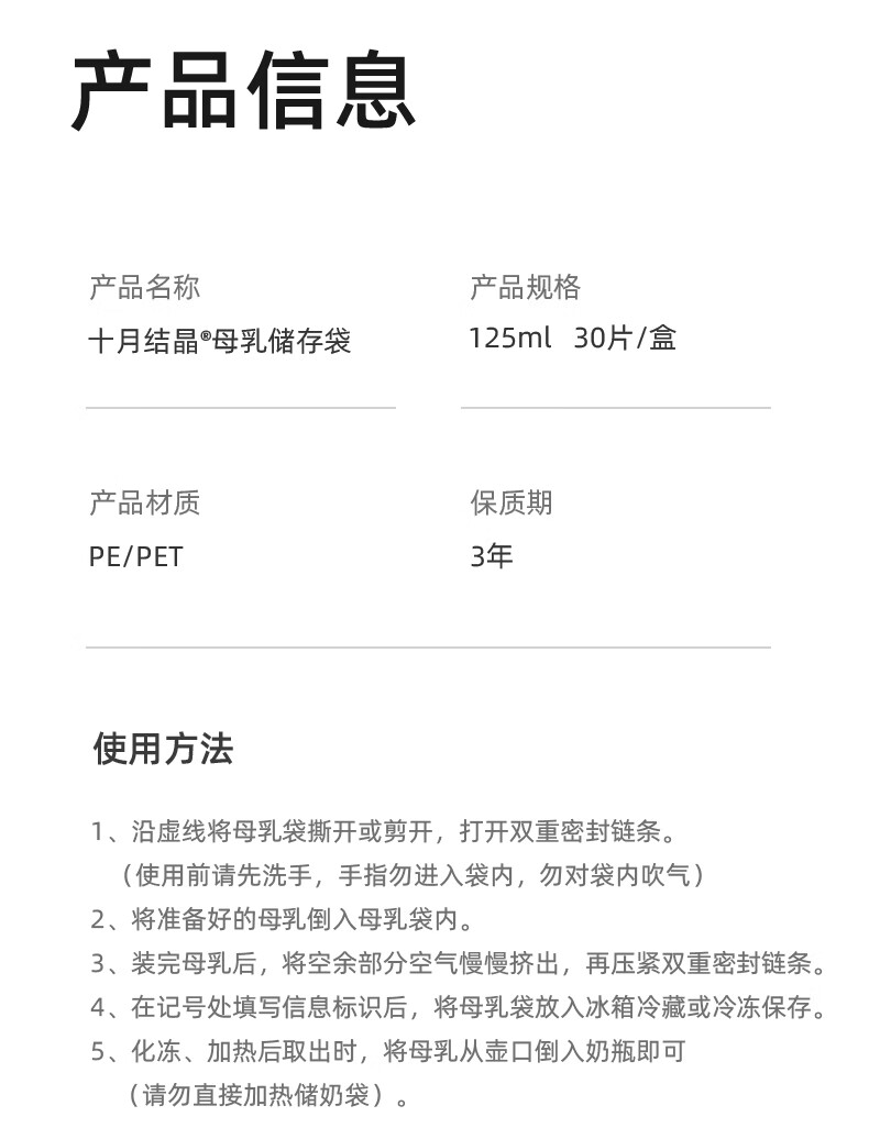 十月结晶储奶袋30片120ml母乳保鲜袋一次性储存存奶袋随机发货