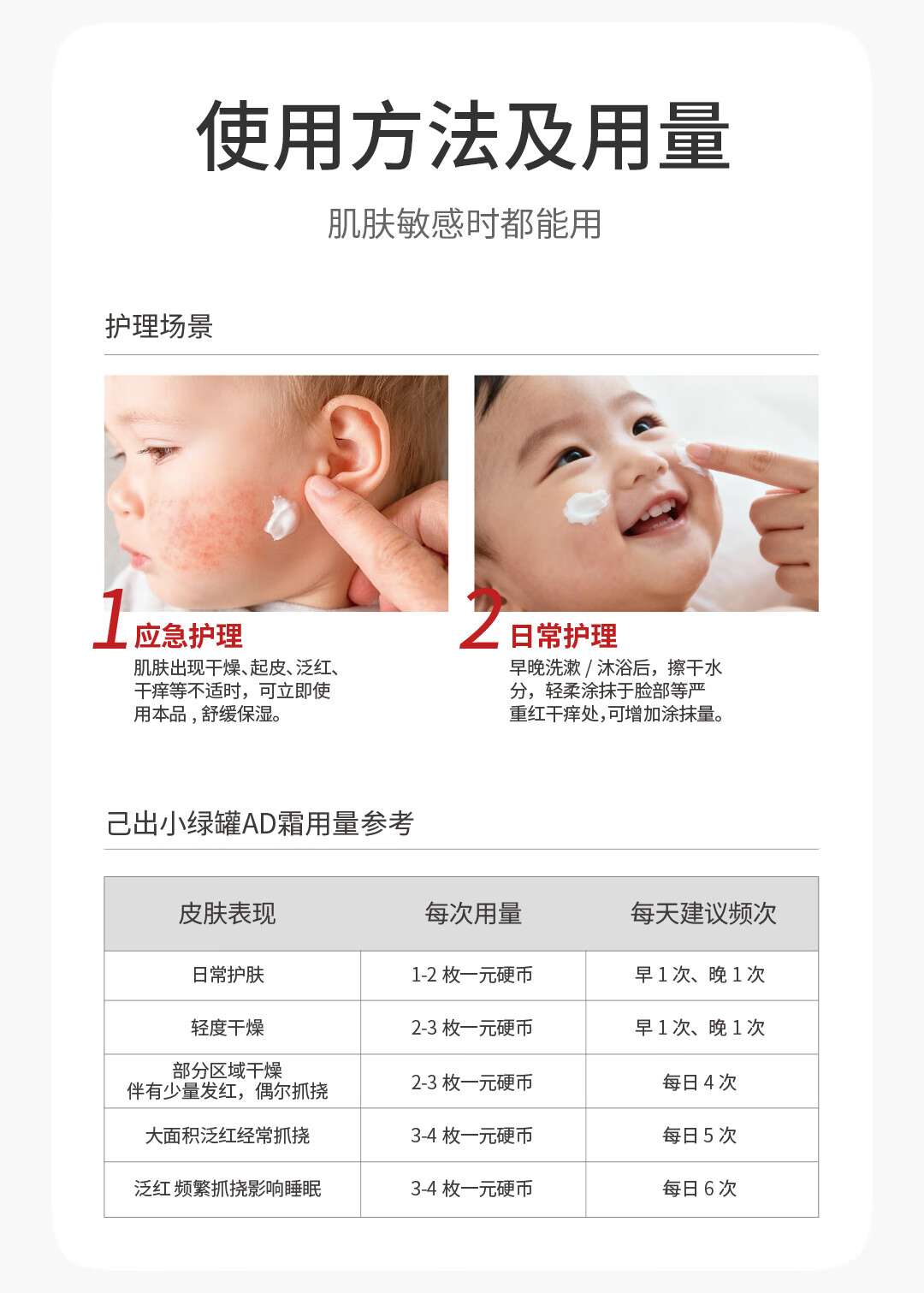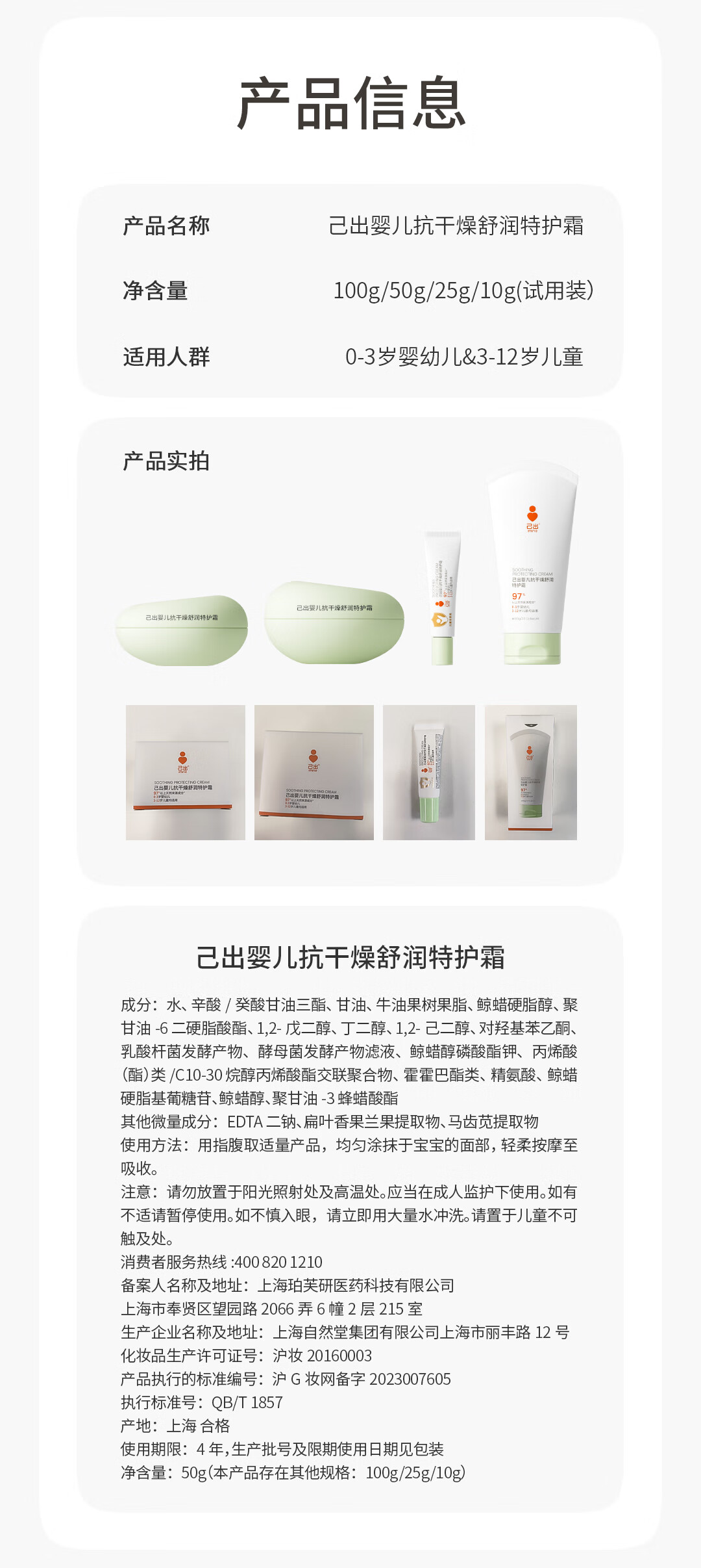 己出婴童特护霜小绿罐AD霜宝宝面霜舒缓保湿滋润儿童面霜春夏季润肤乳 【干痒红严重推荐】小绿罐50g