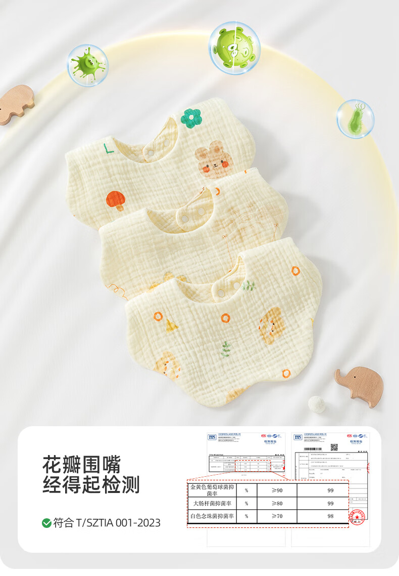 贝肽斯婴儿围嘴新生纯棉口水巾纱布饭兜围兜宝宝花瓣口水巾 2条装【4层柔纱呵护】萌兔鸭 26×24cm-7A抗菌