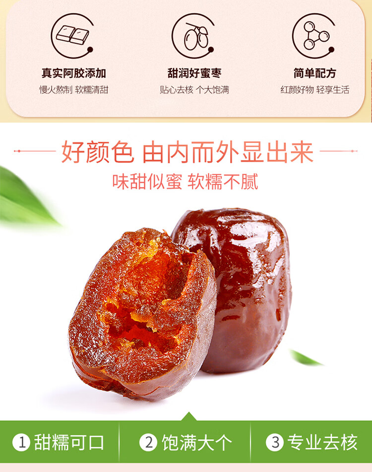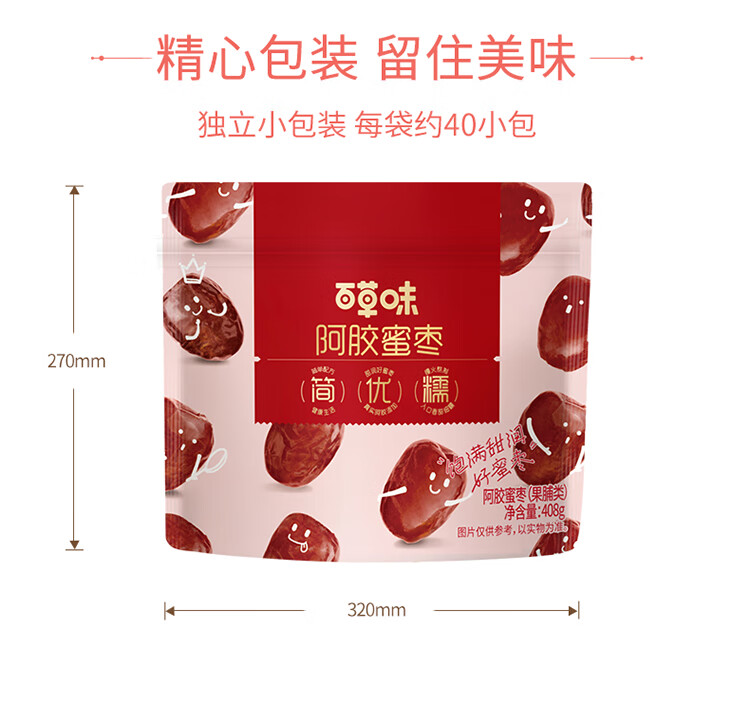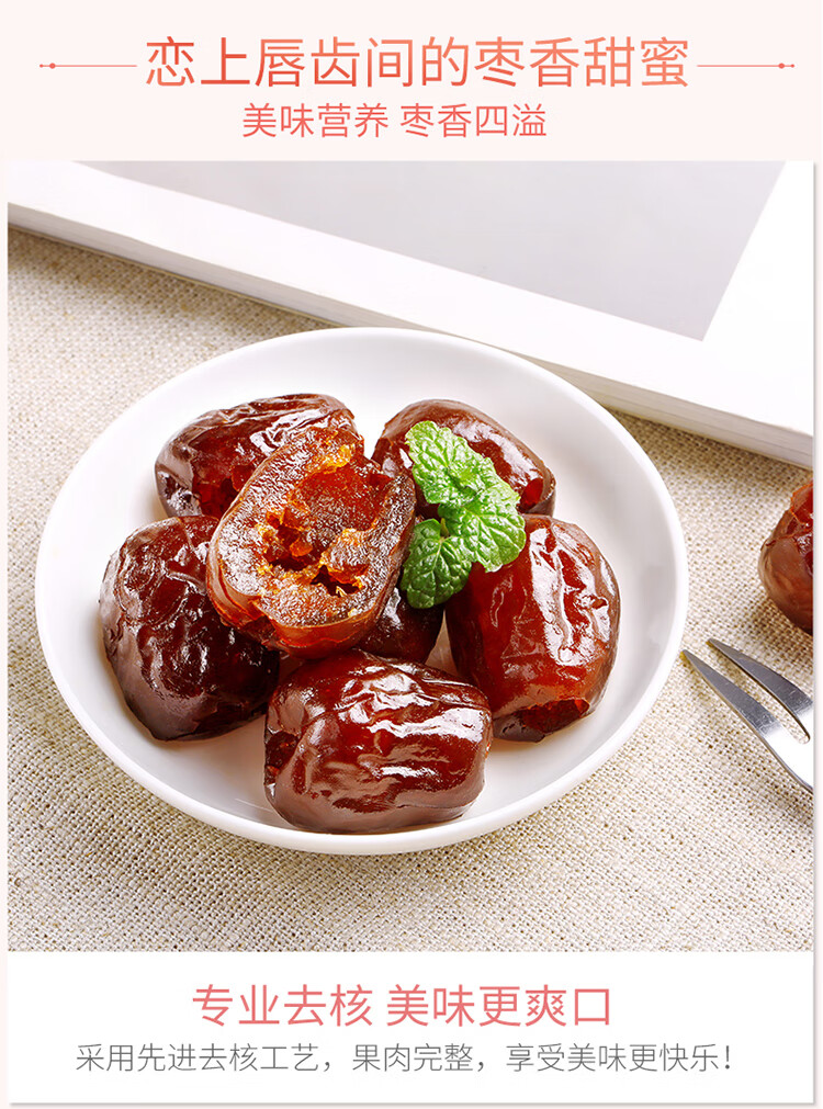百草味阿胶蜜枣408g无核金丝去核红枣蜜枣大枣休闲零食蜜饯量贩装