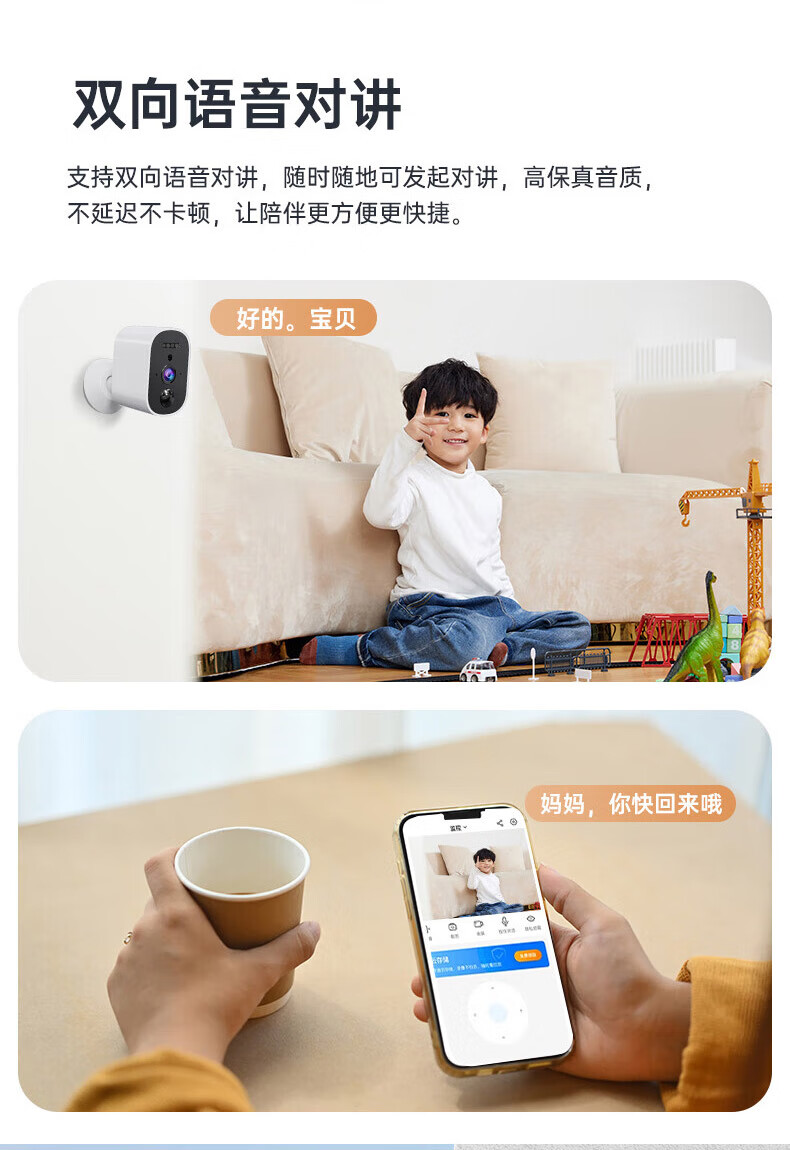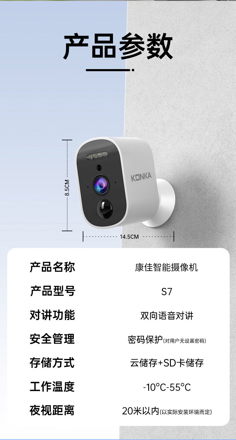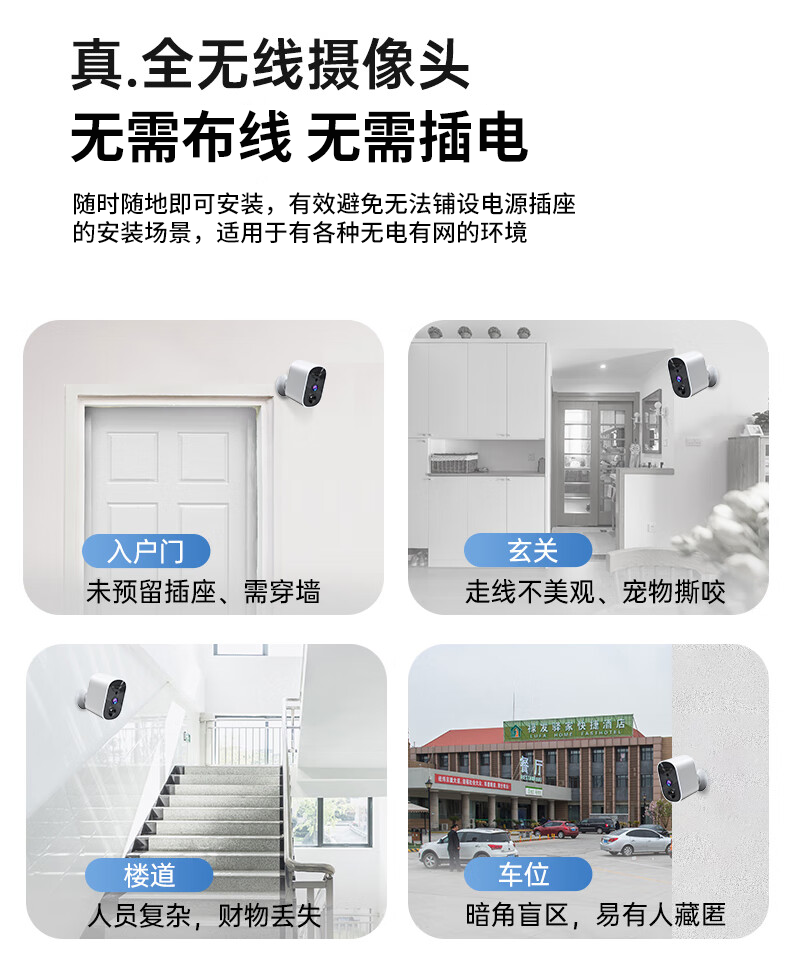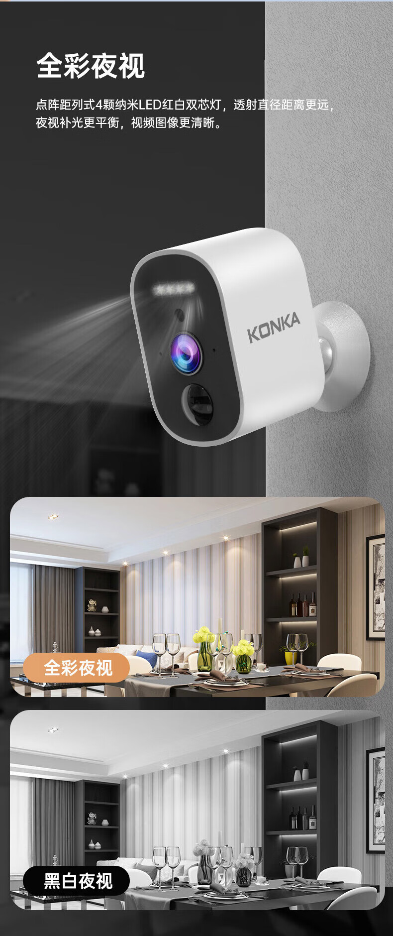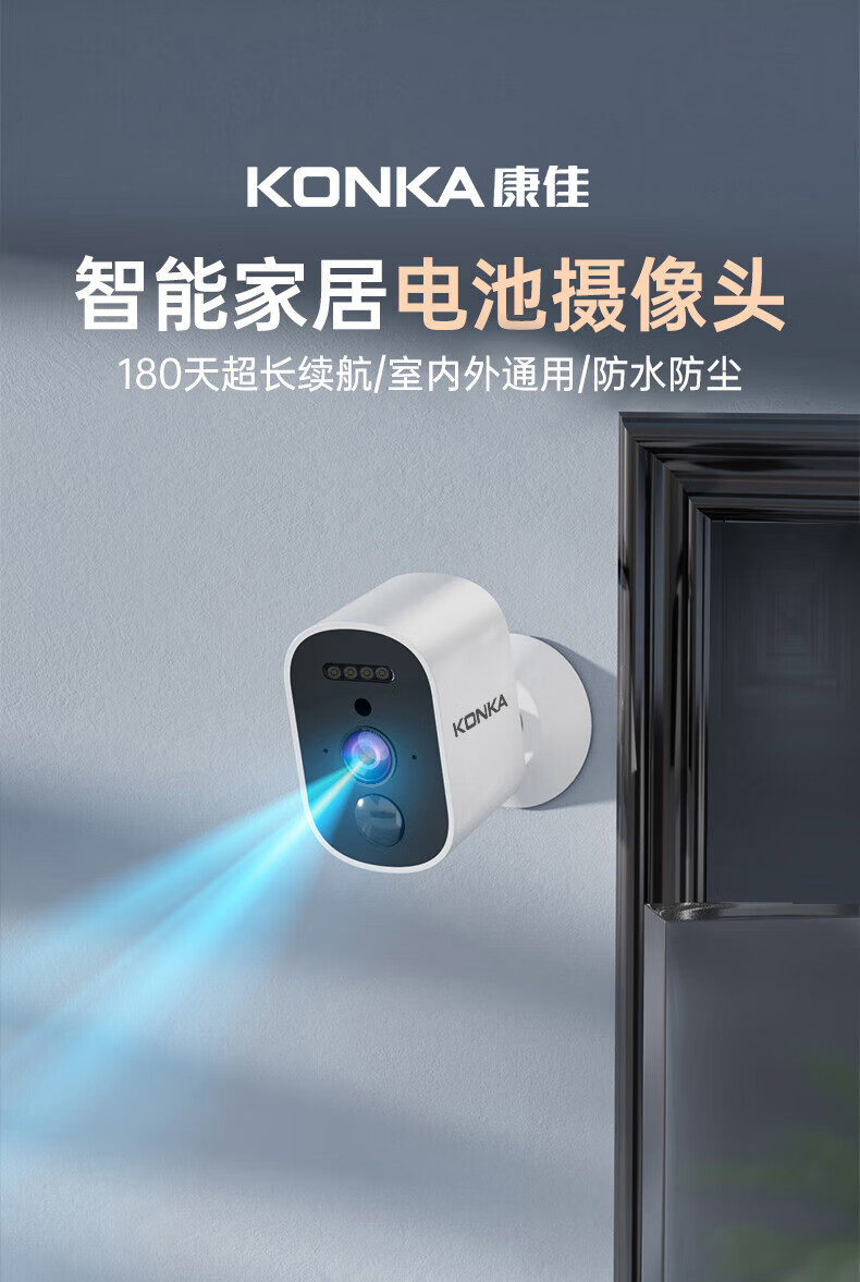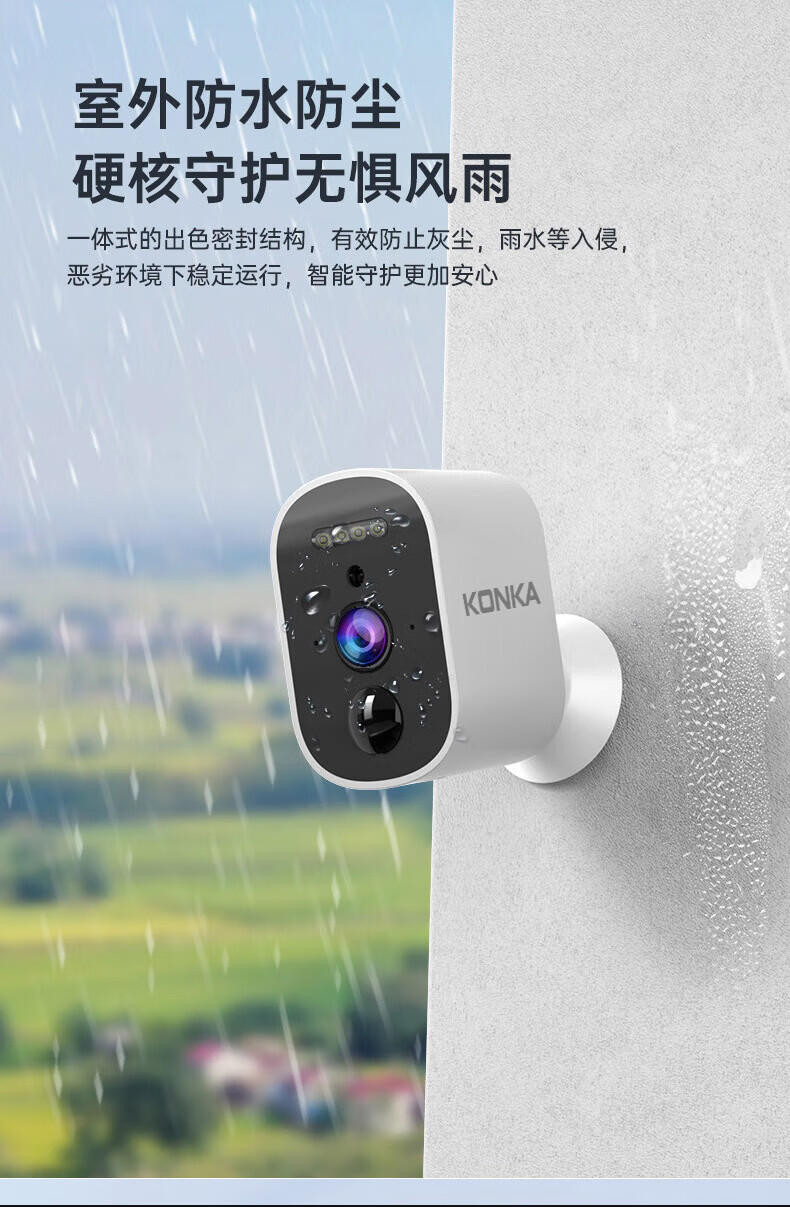 康佳楼道门口无线电池充电家用摄像头需连wifi网手机远程监控器360无死角带夜视全景免不插电源室内外