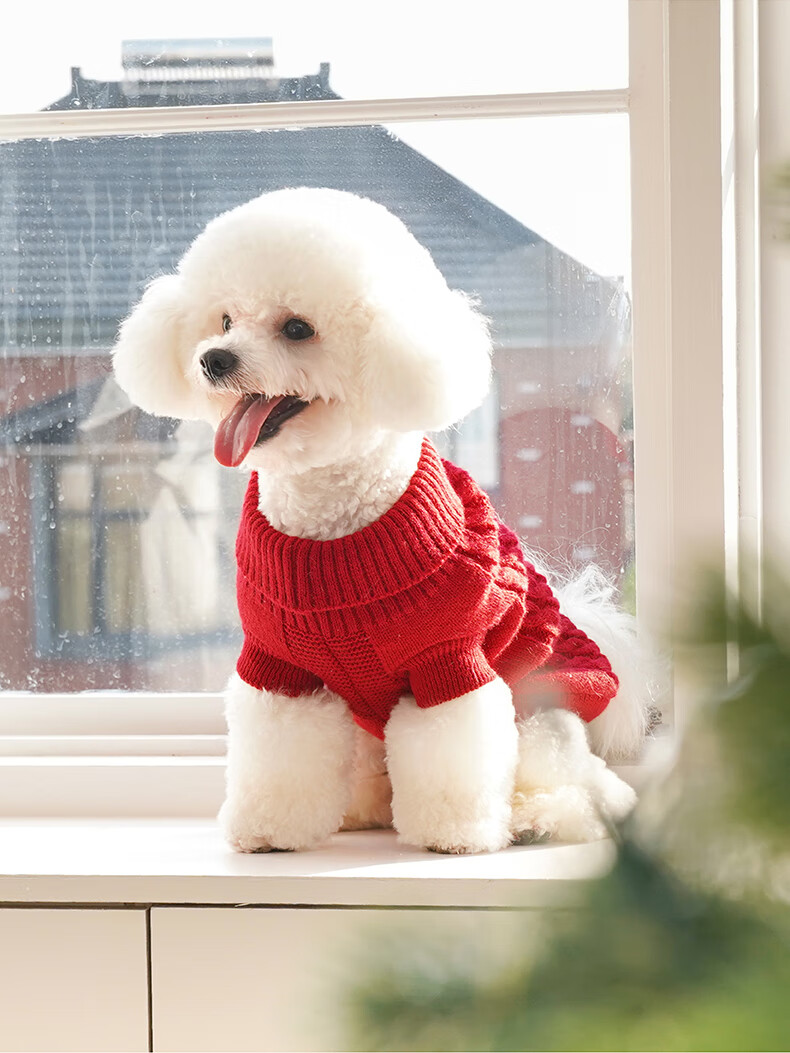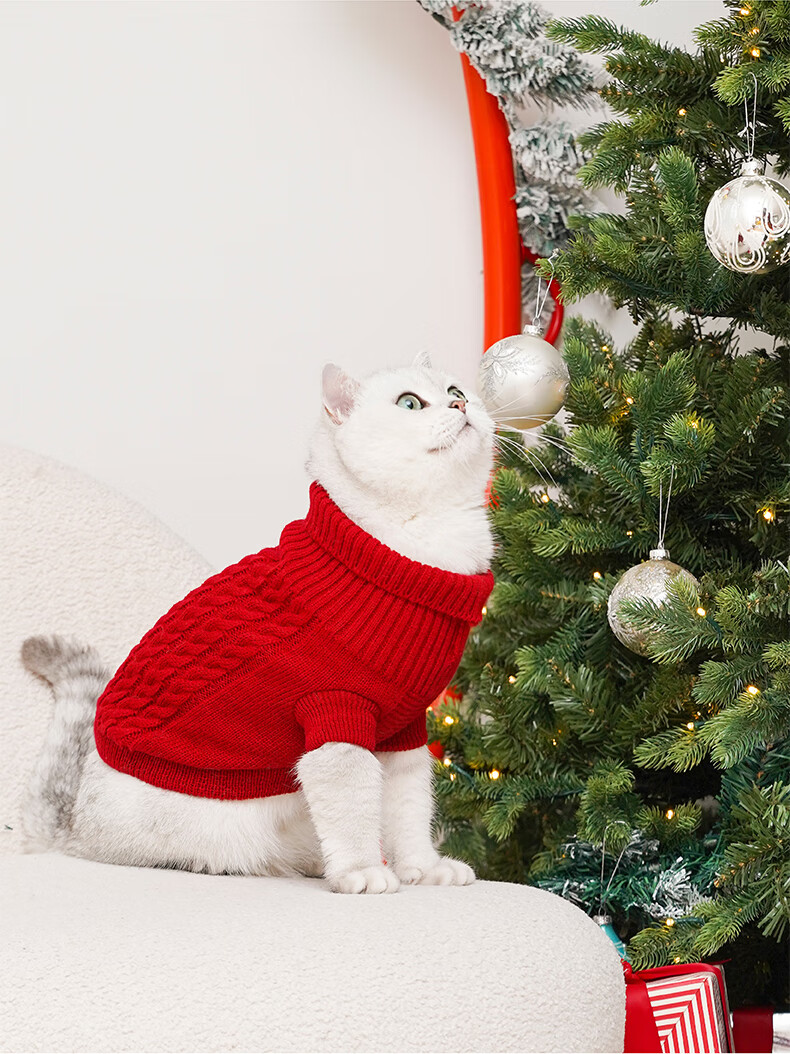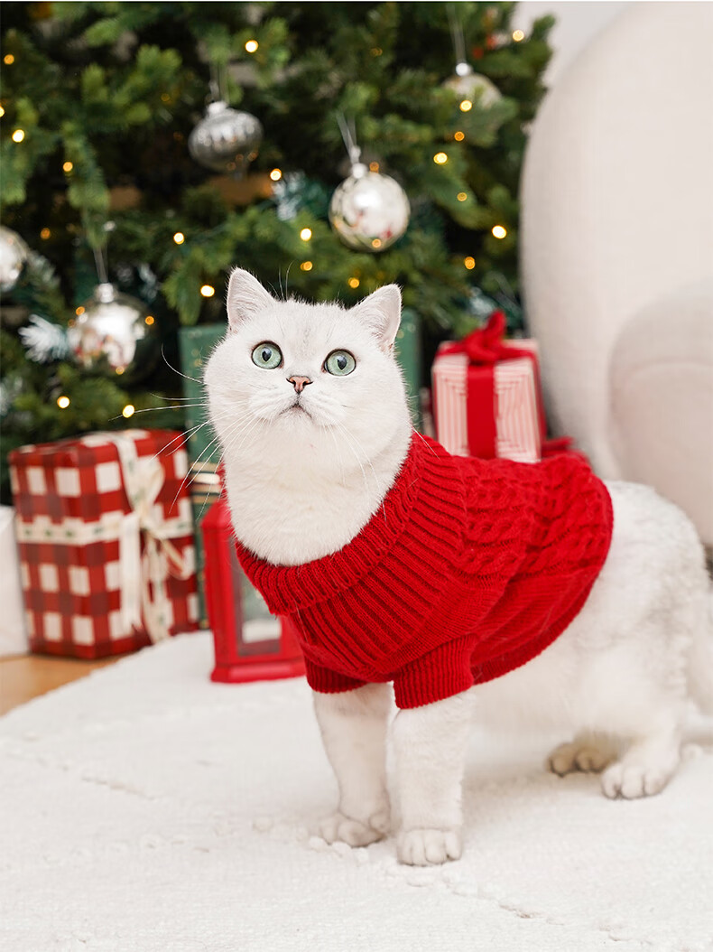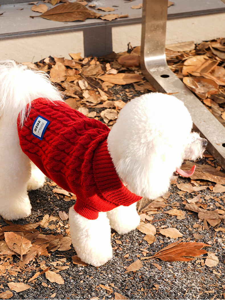 ZEZE新年绞花针织衫猫猫衣服冬季保暖猫咪休闲泰迪比熊小狗衣服秋冬款 绞花针织毛衣(红) M 【6-10斤适用】 猫狗通用