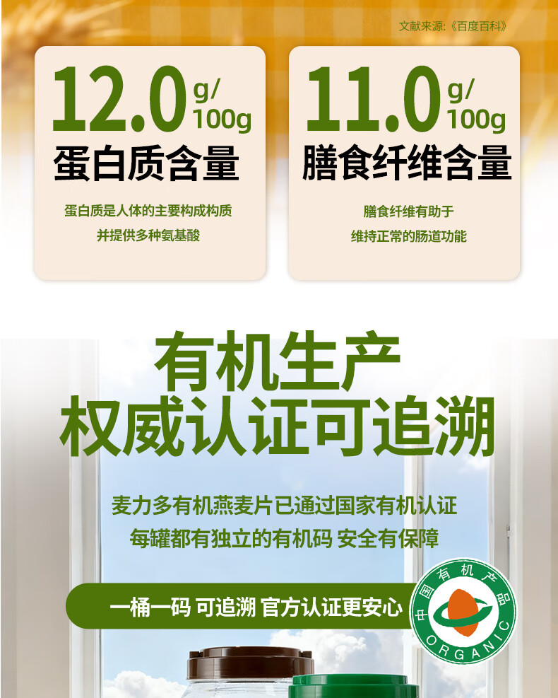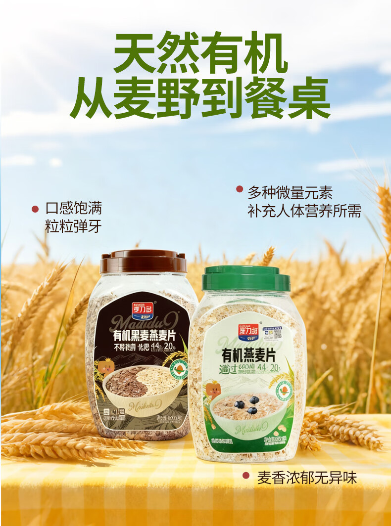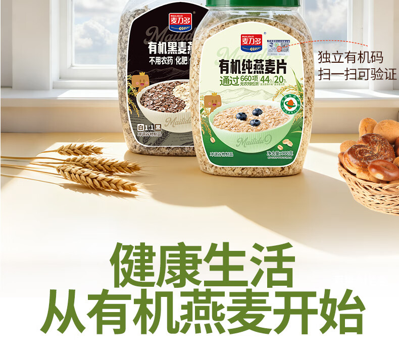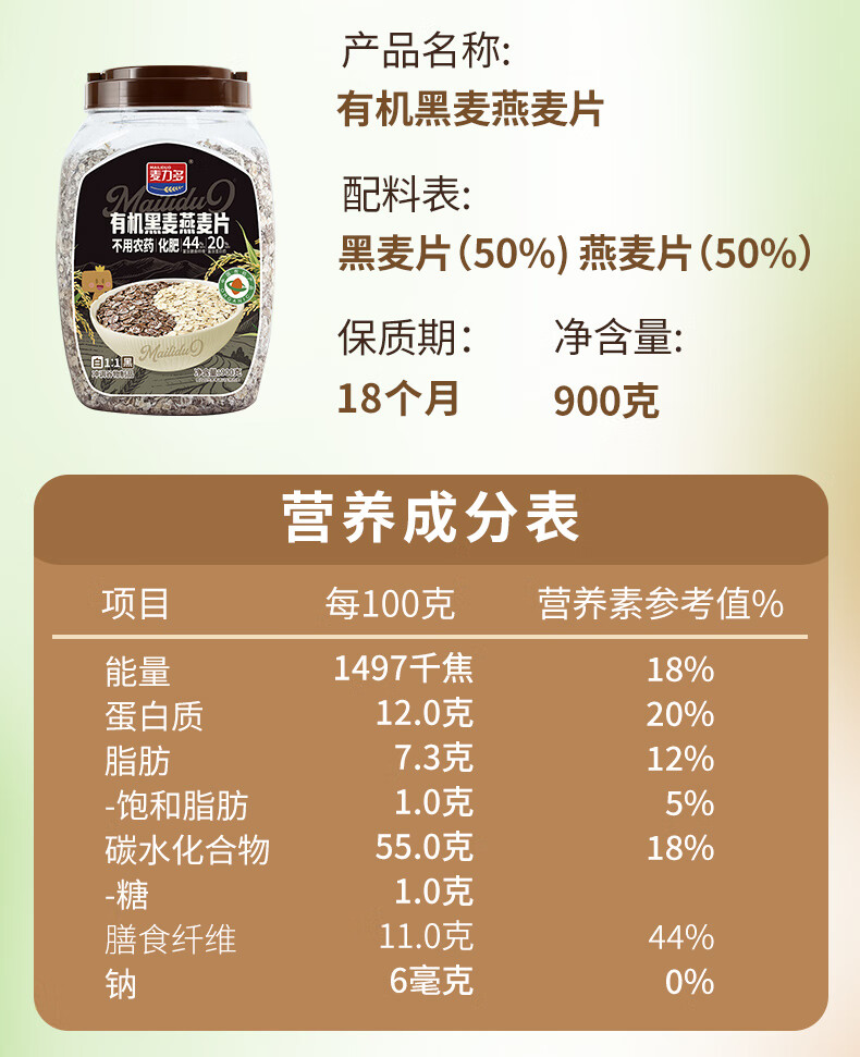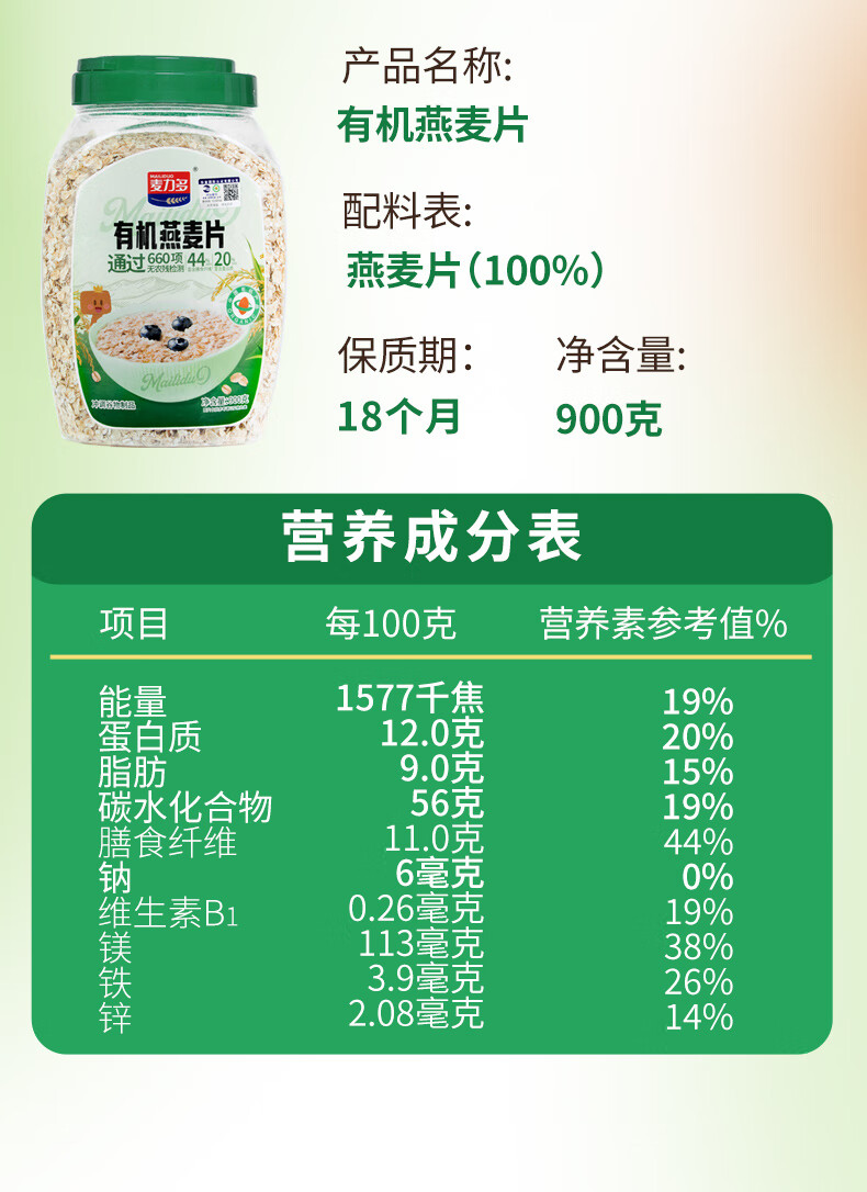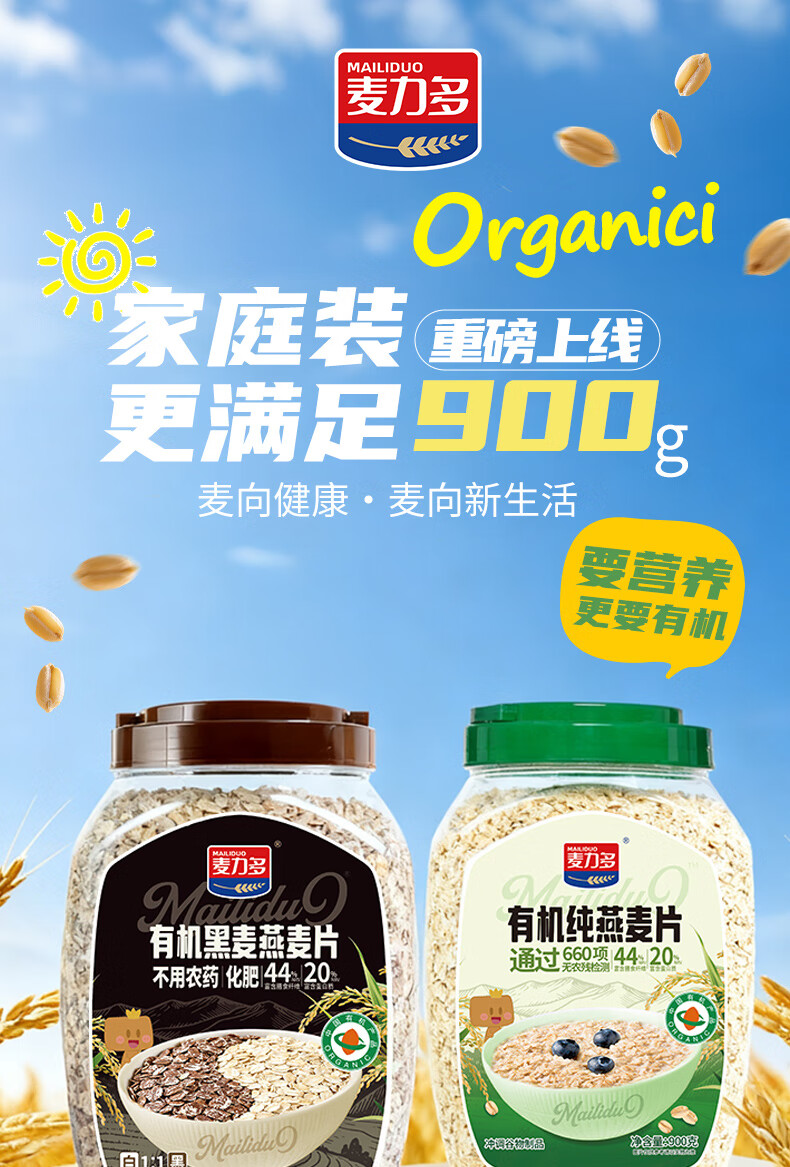 麦力多有机燕麦片900g 高纤即食黑纯麦片营养早代餐冲饮谷物0无添加蔗糖 【高纤0添加】有机纯燕麦片900g