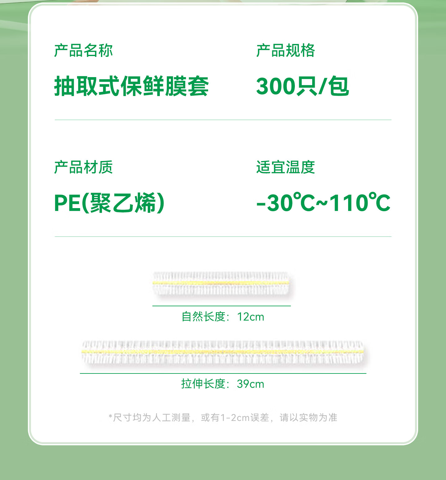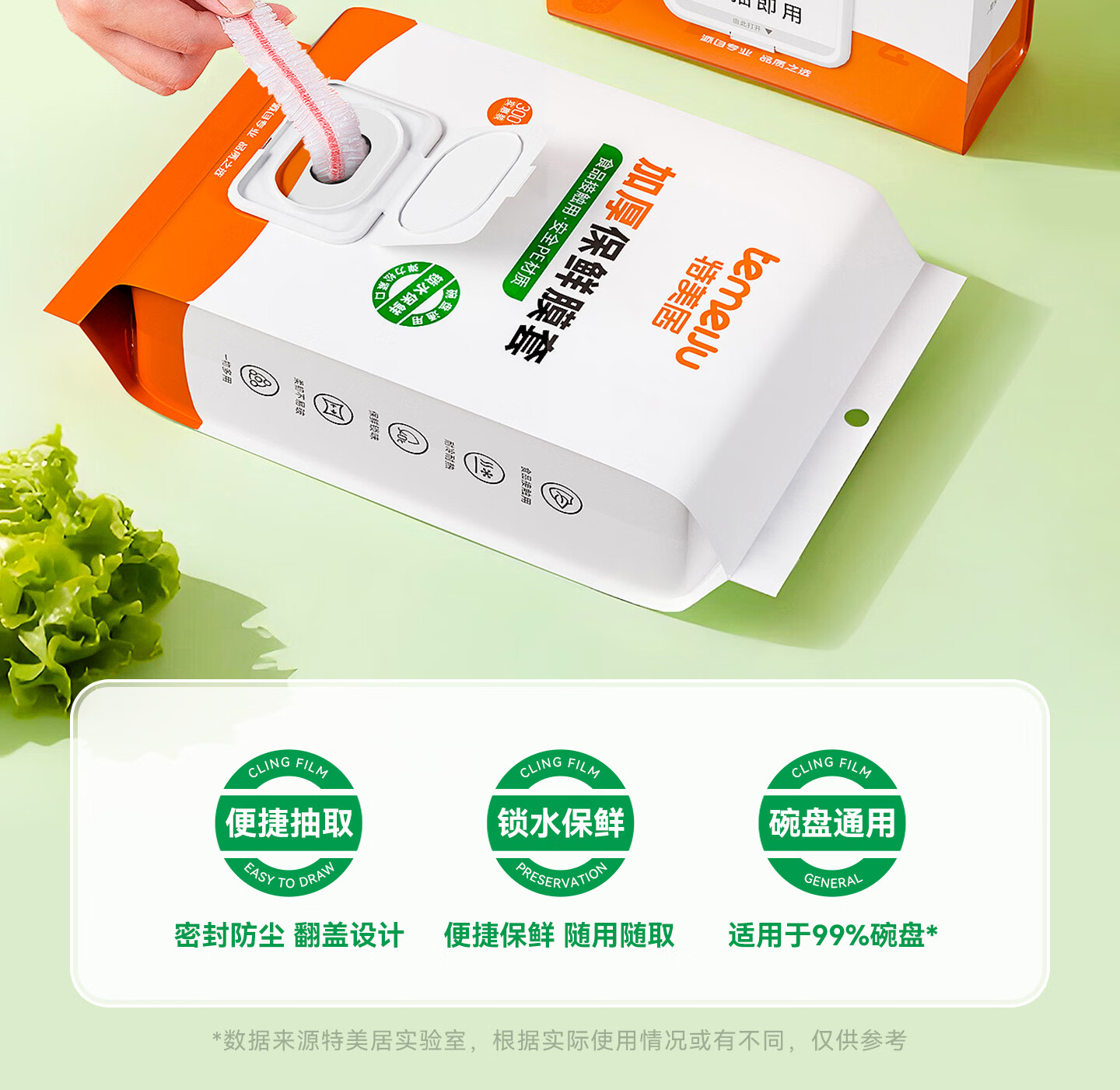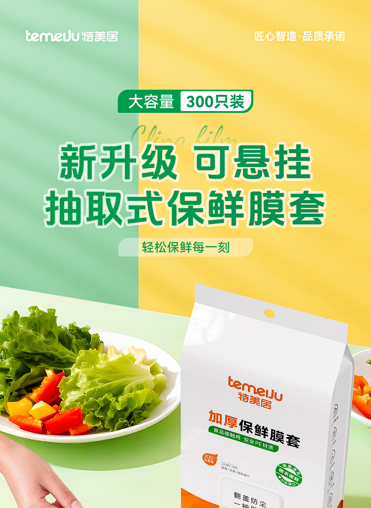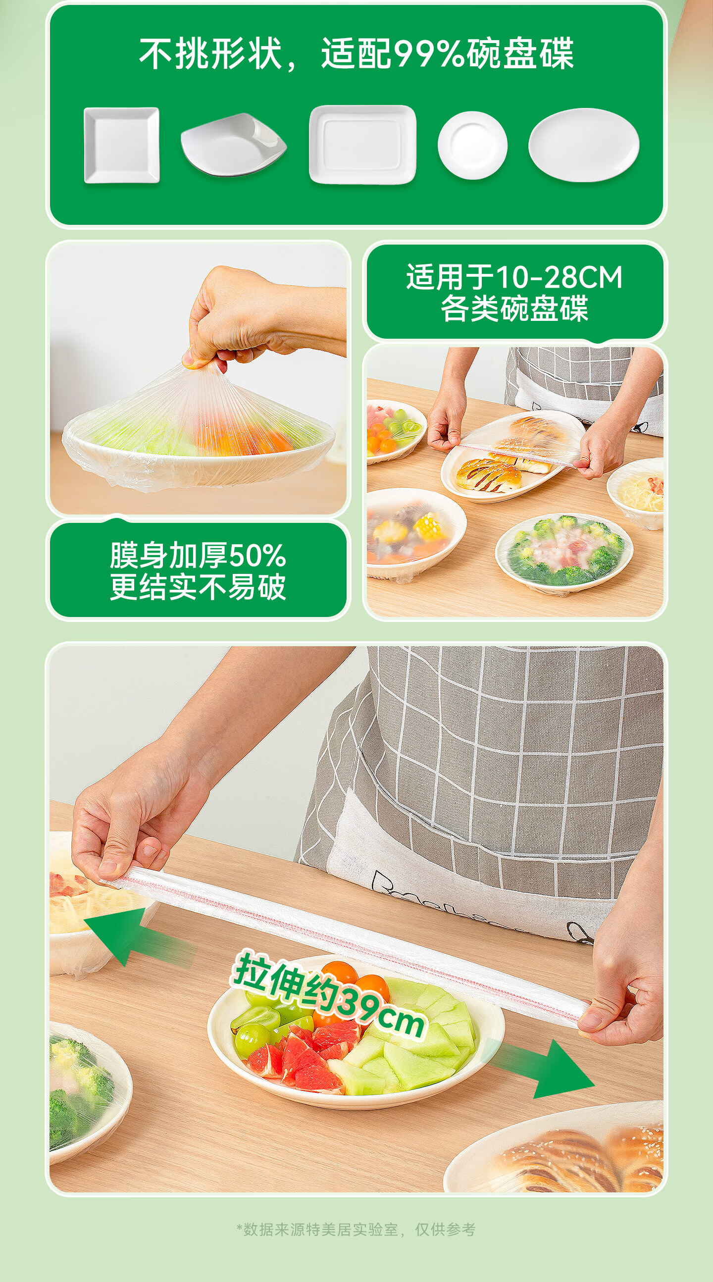 特美居(temeiju)保鲜罩食品级保鲜膜套抽取式壁挂300只 厨房剩菜剩饭防尘罩可微波