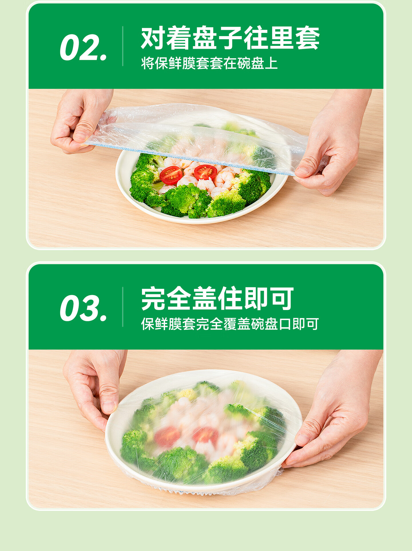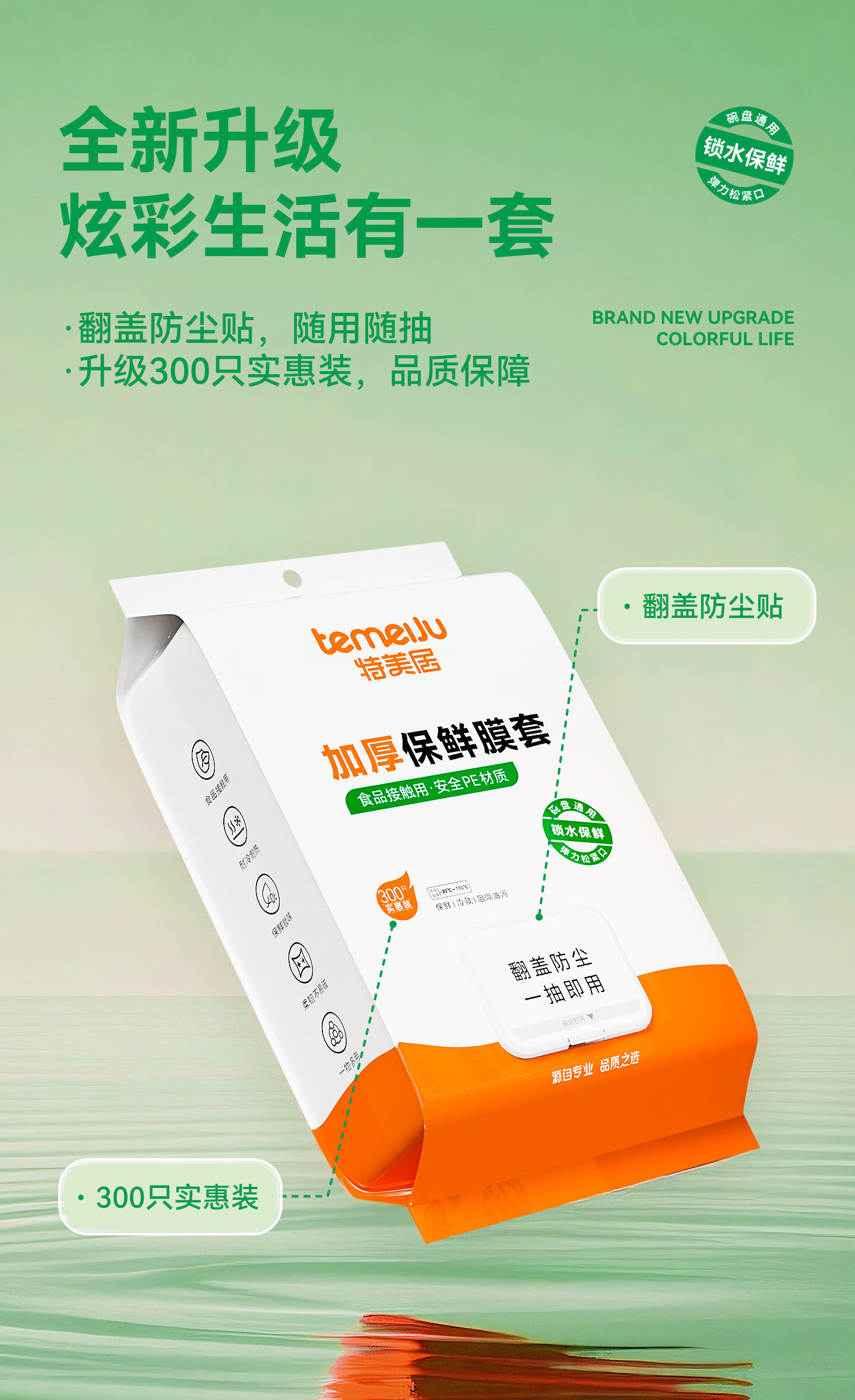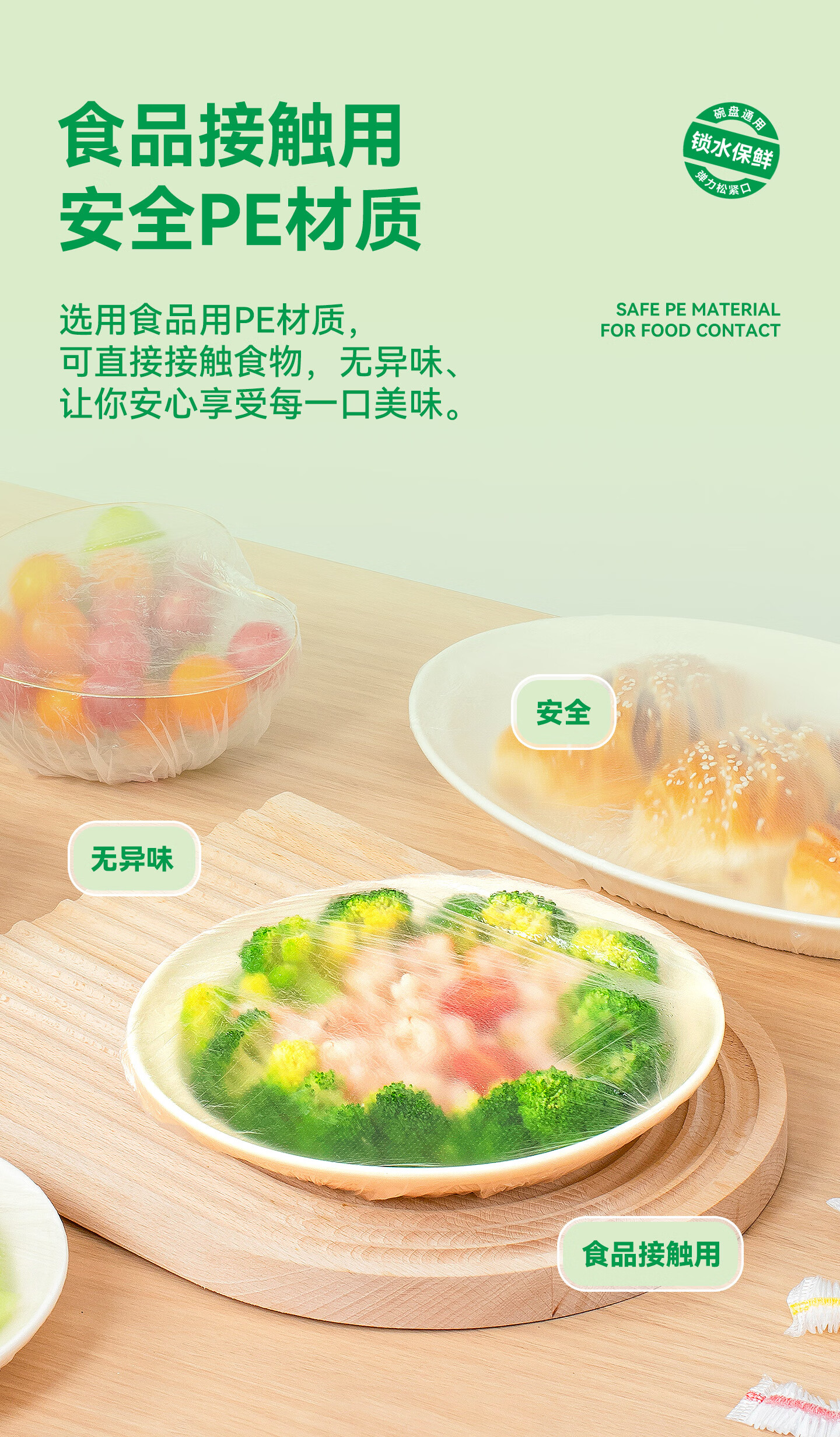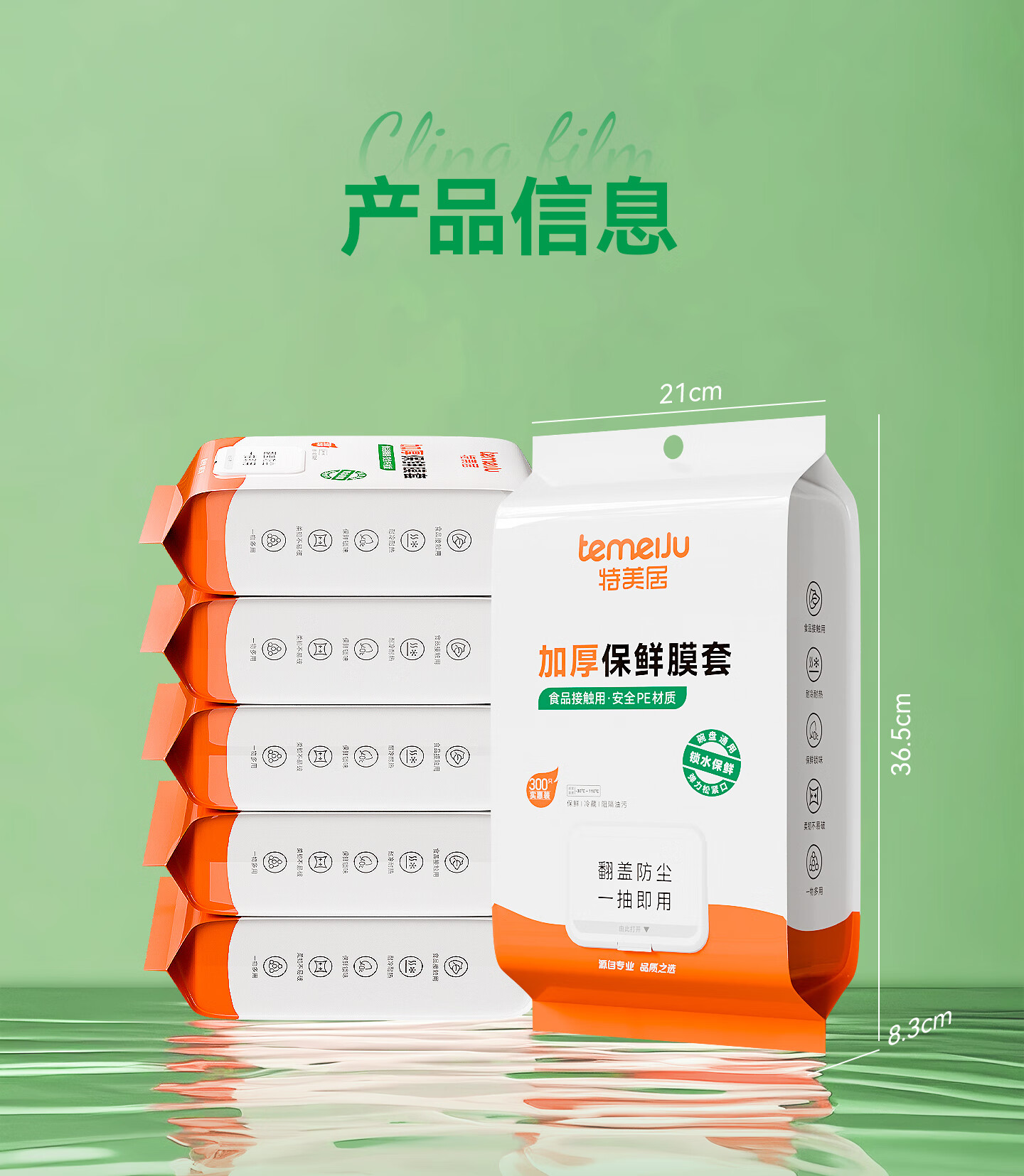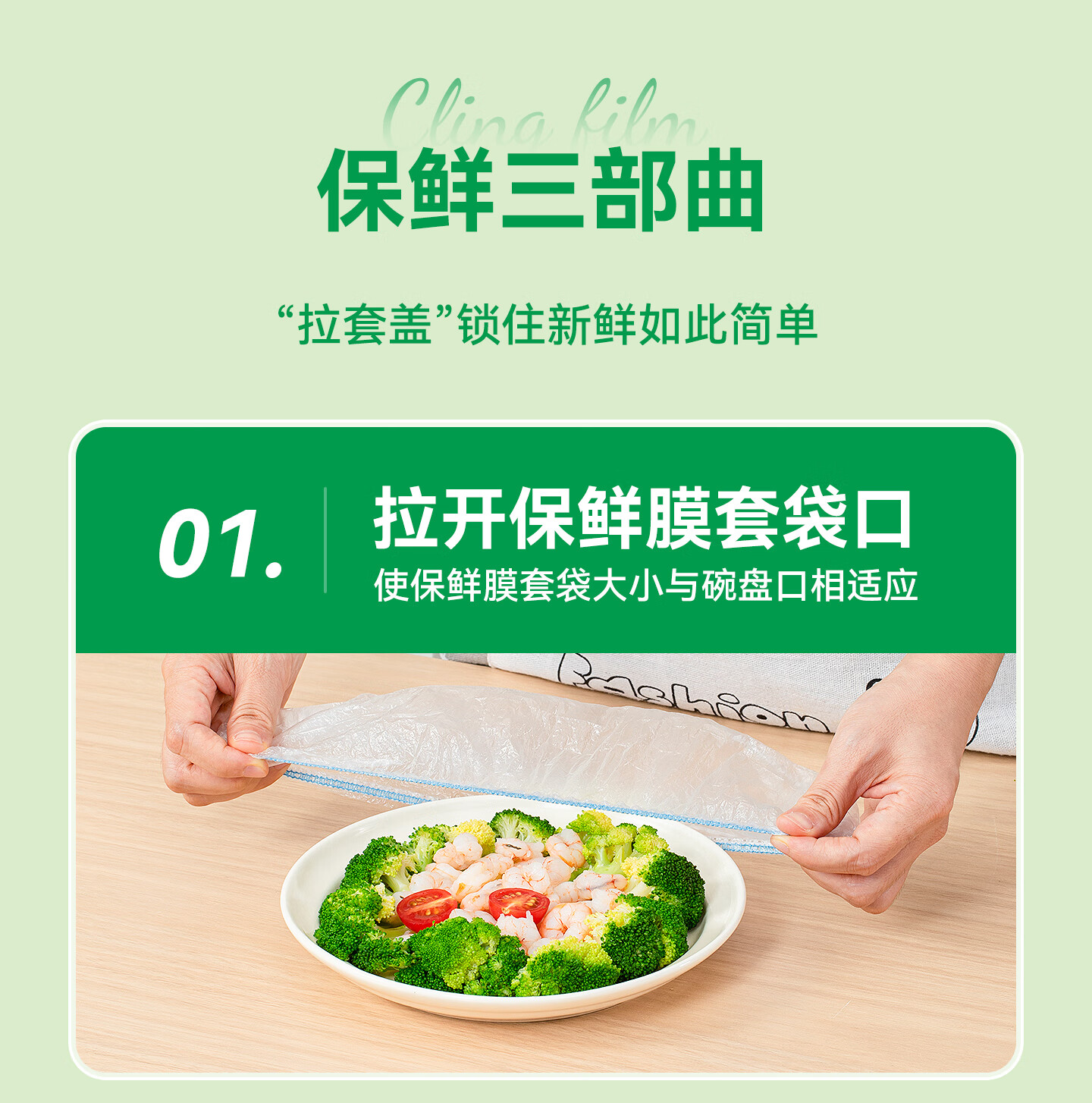 特美居(temeiju)保鲜罩食品级保鲜膜套抽取式壁挂300只 厨房剩菜剩饭防尘罩可微波