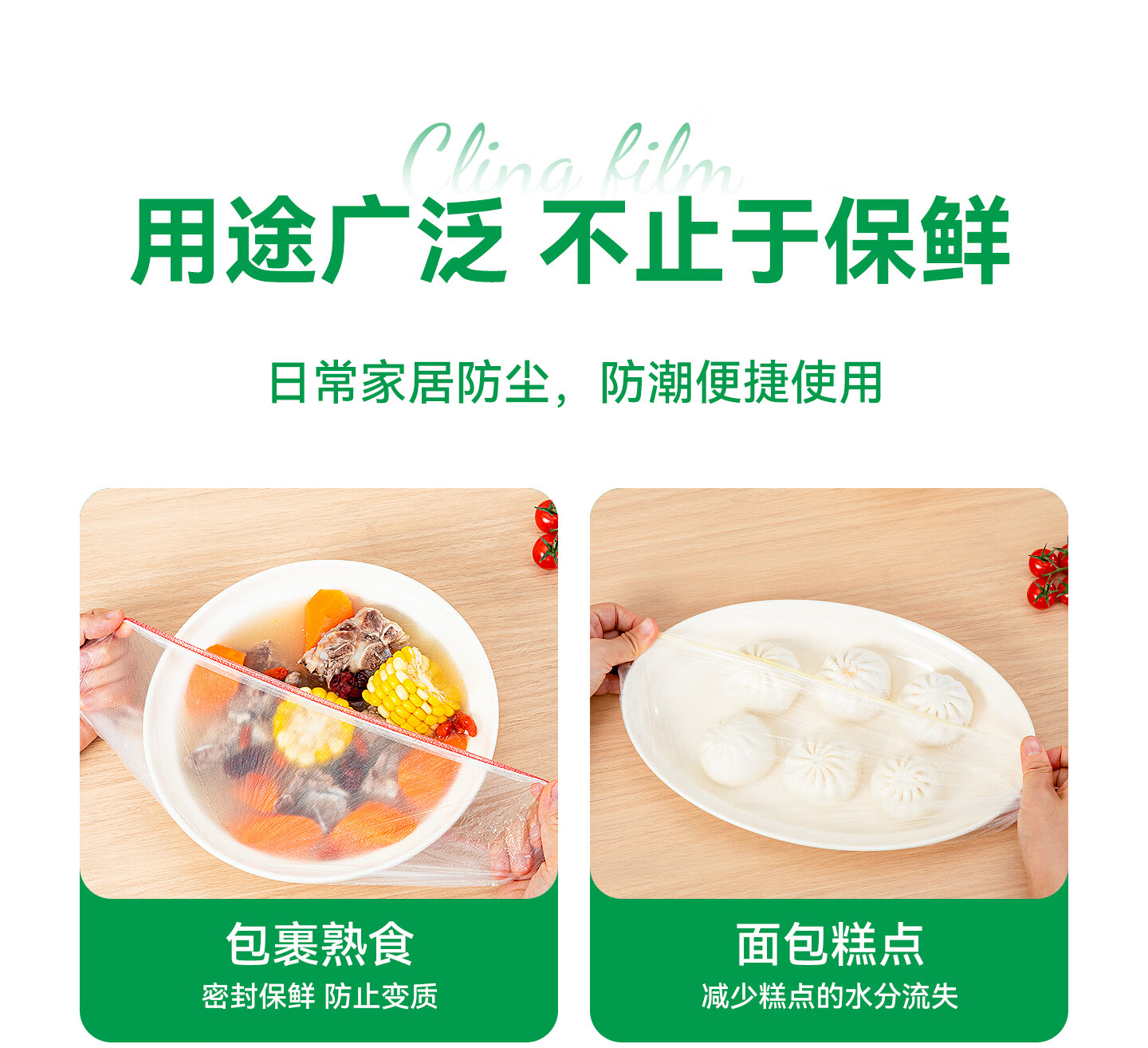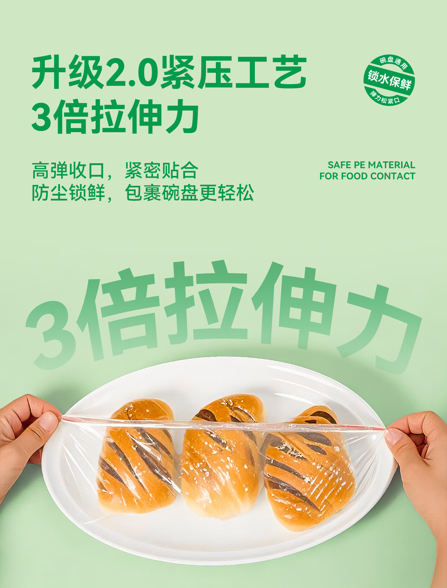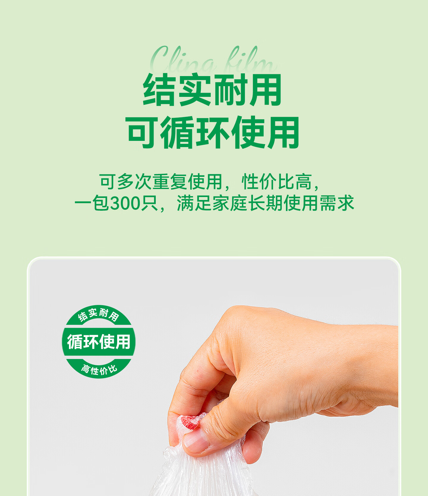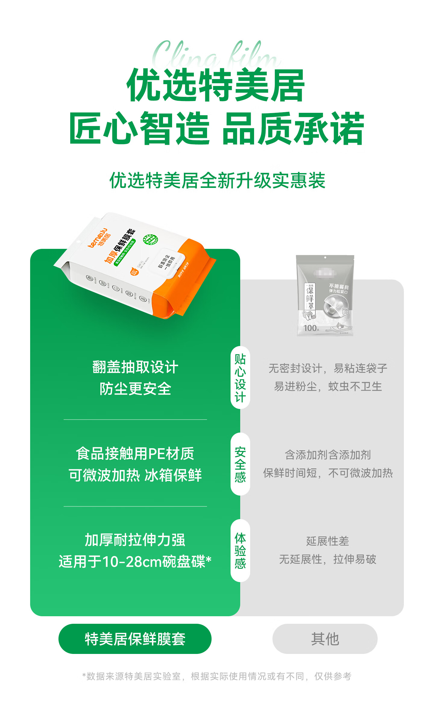 特美居(temeiju)保鲜罩食品级保鲜膜套抽取式壁挂300只 厨房剩菜剩饭防尘罩可微波