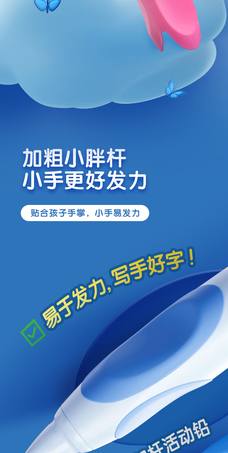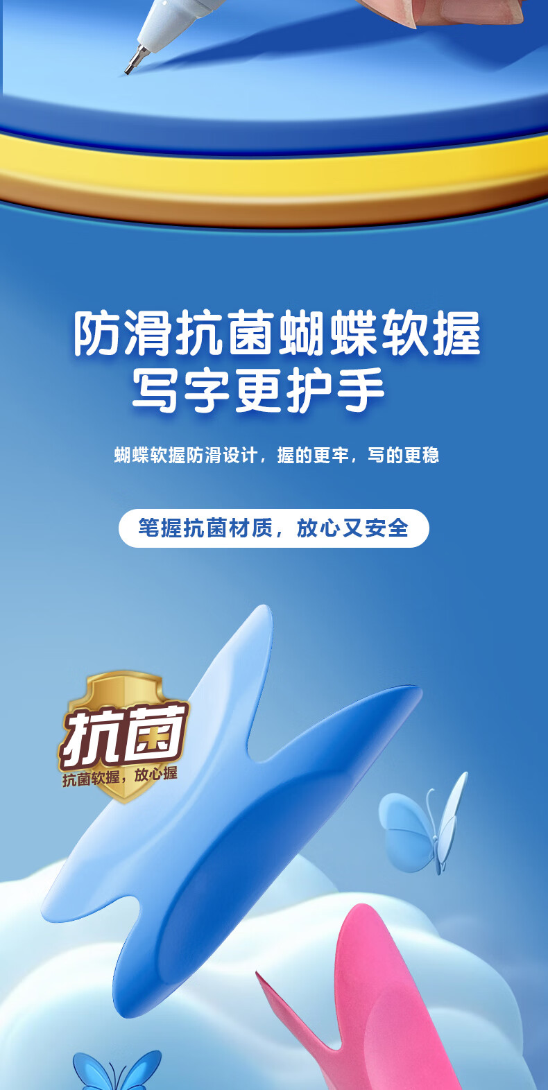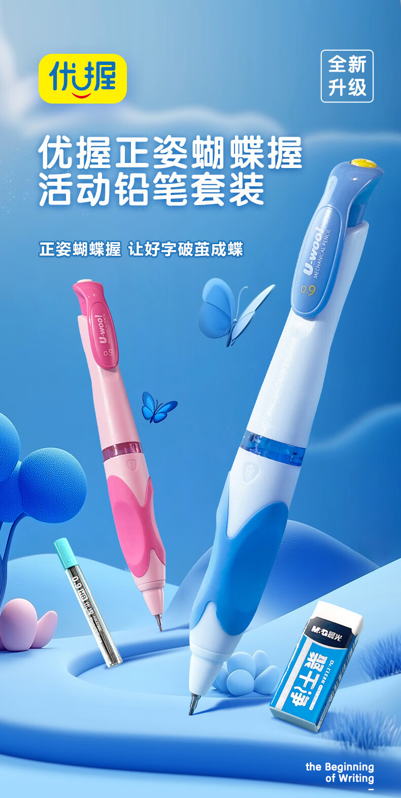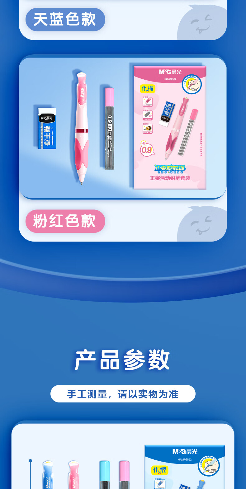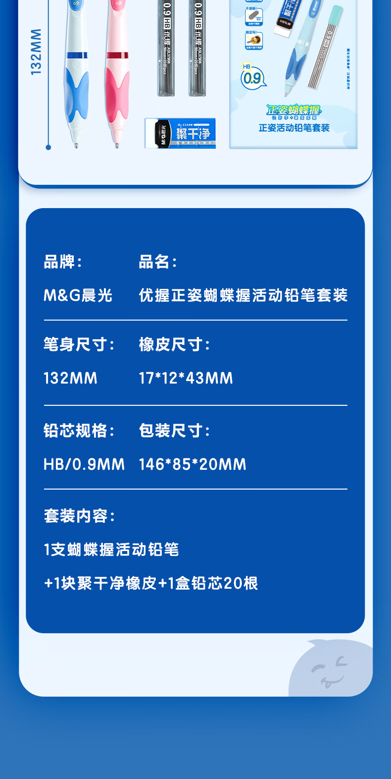 晨光(M&G)文具0.9mm蝴蝶握儿童考试写字必备正姿自动铅笔3件套0.9mm(笔+铅芯+橡皮)HAMP2552粉杆