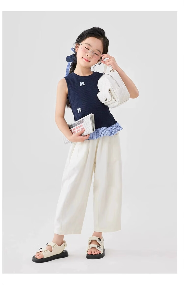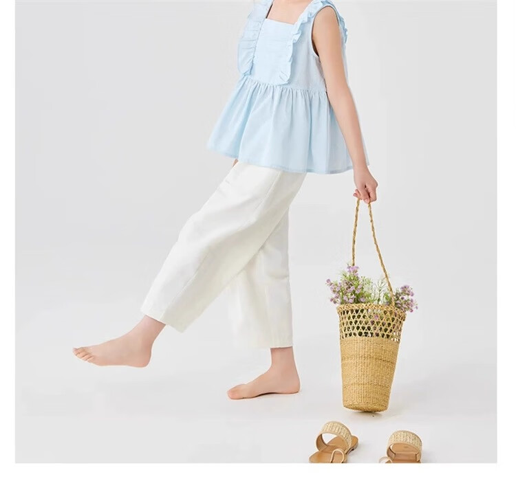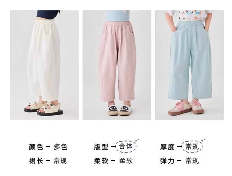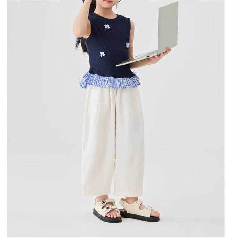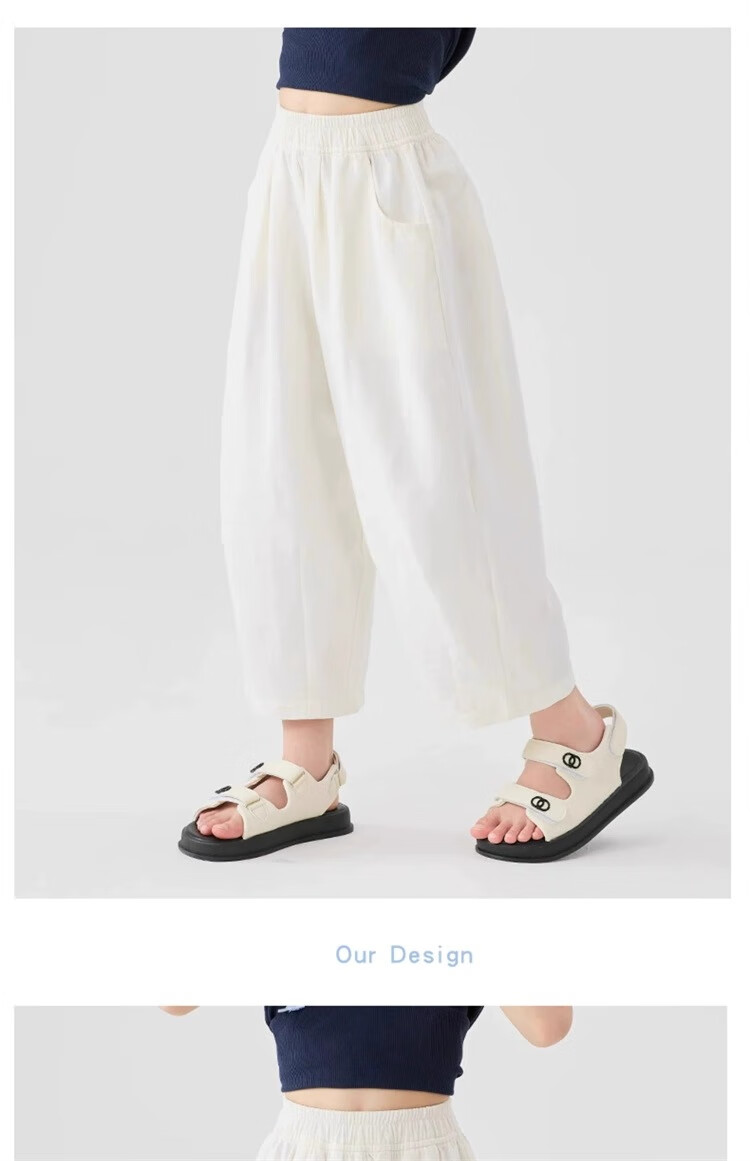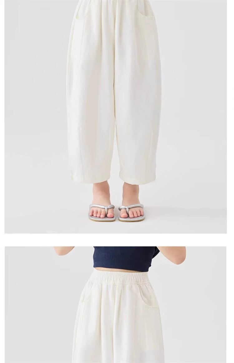 猫人女童九分裤夏季薄款裤子2025新款儿童裤夏装白色女孩防蚊阔腿裤凉 白色 160