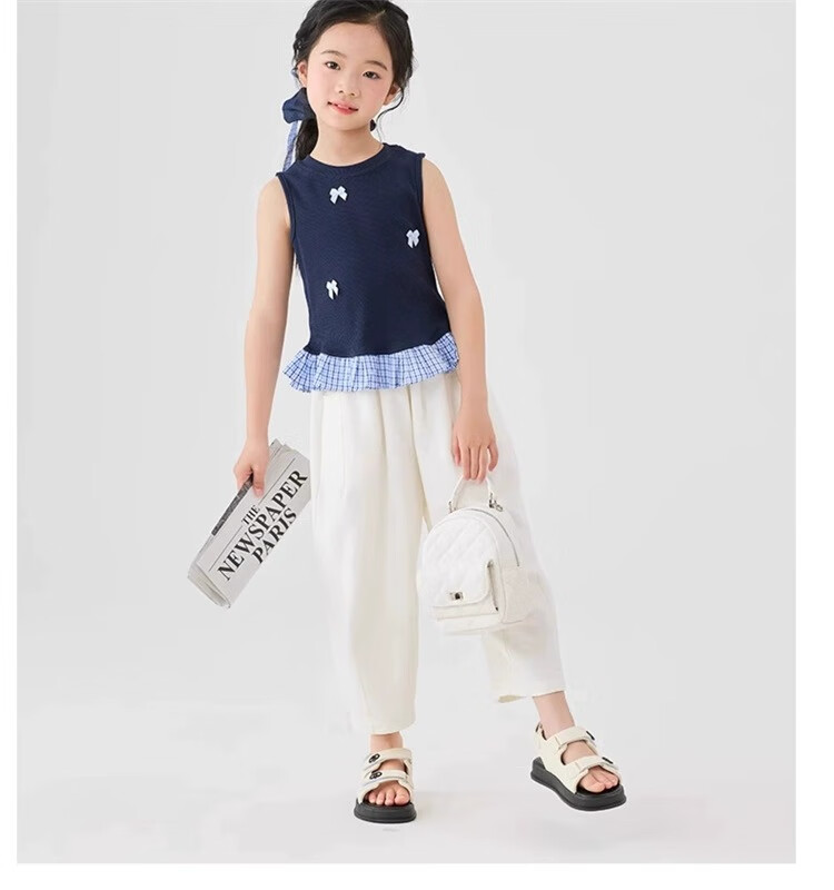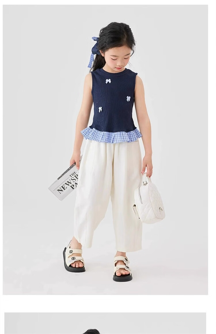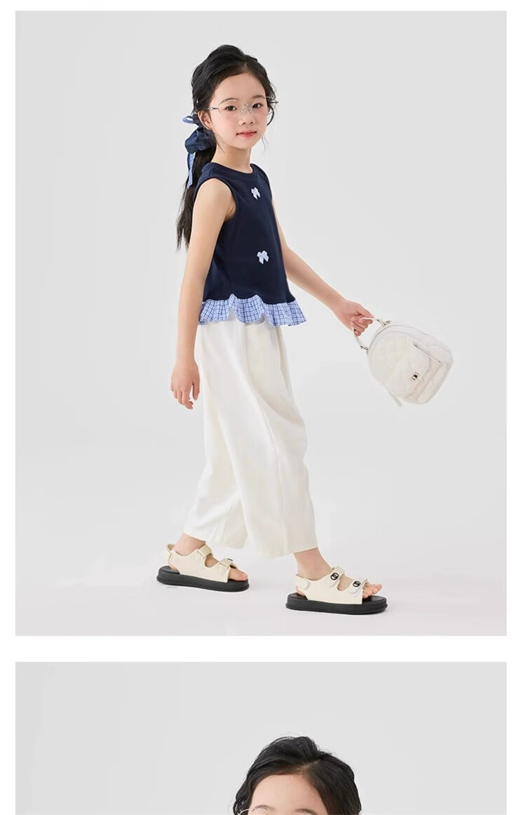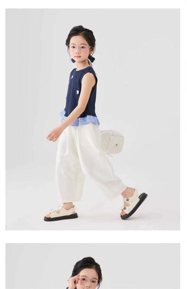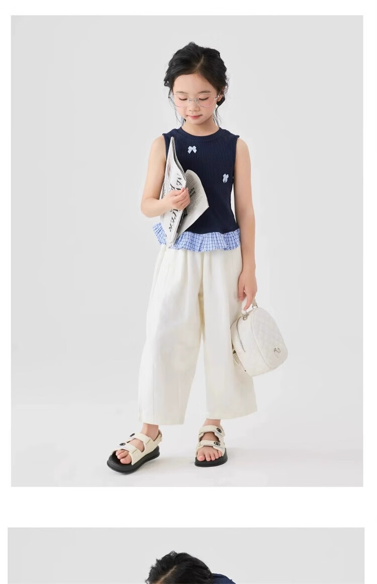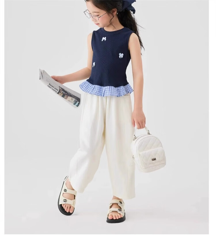猫人女童九分裤夏季薄款裤子2025新款儿童裤夏装白色女孩防蚊阔腿裤凉 白色 160