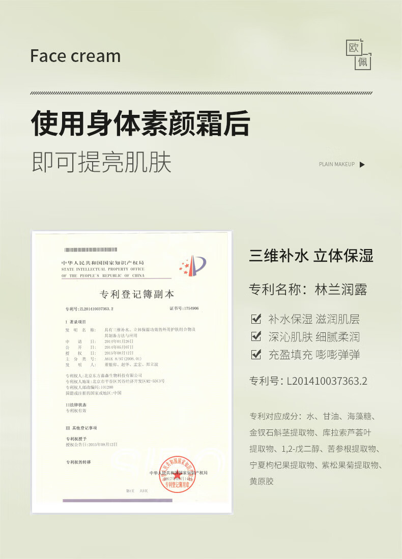 欧佩水光焕靓身体素颜霜