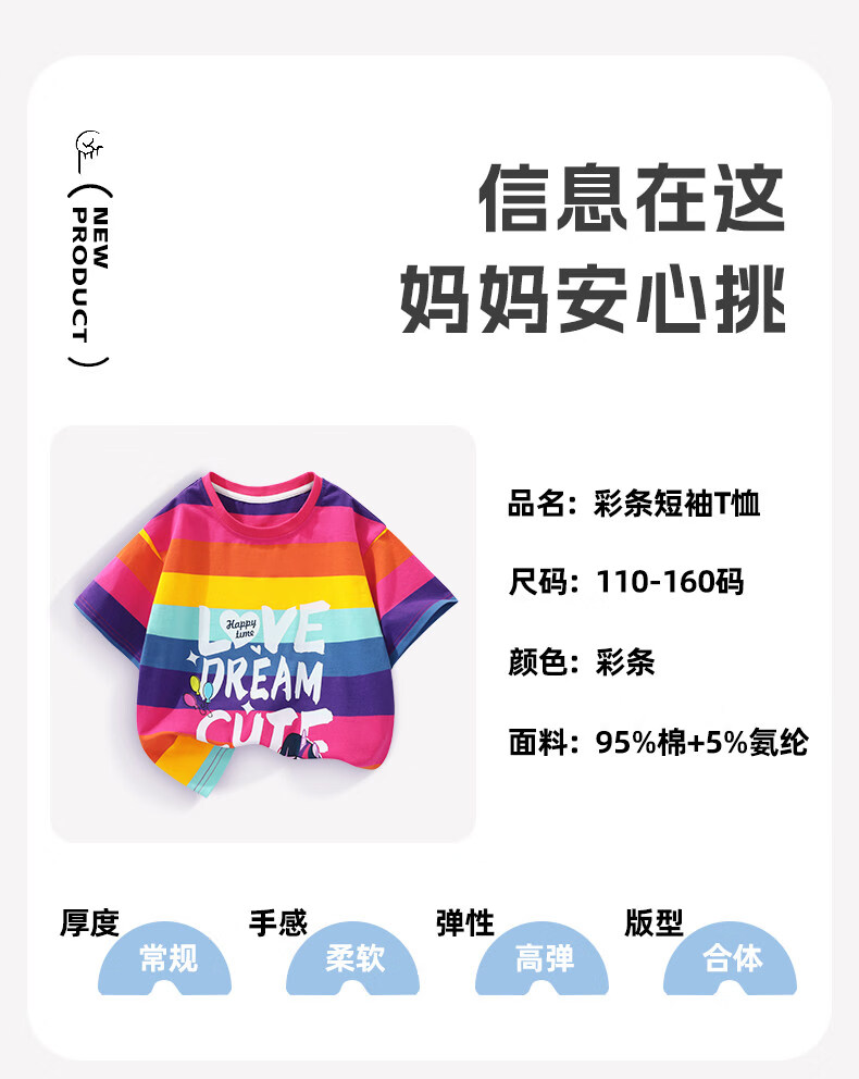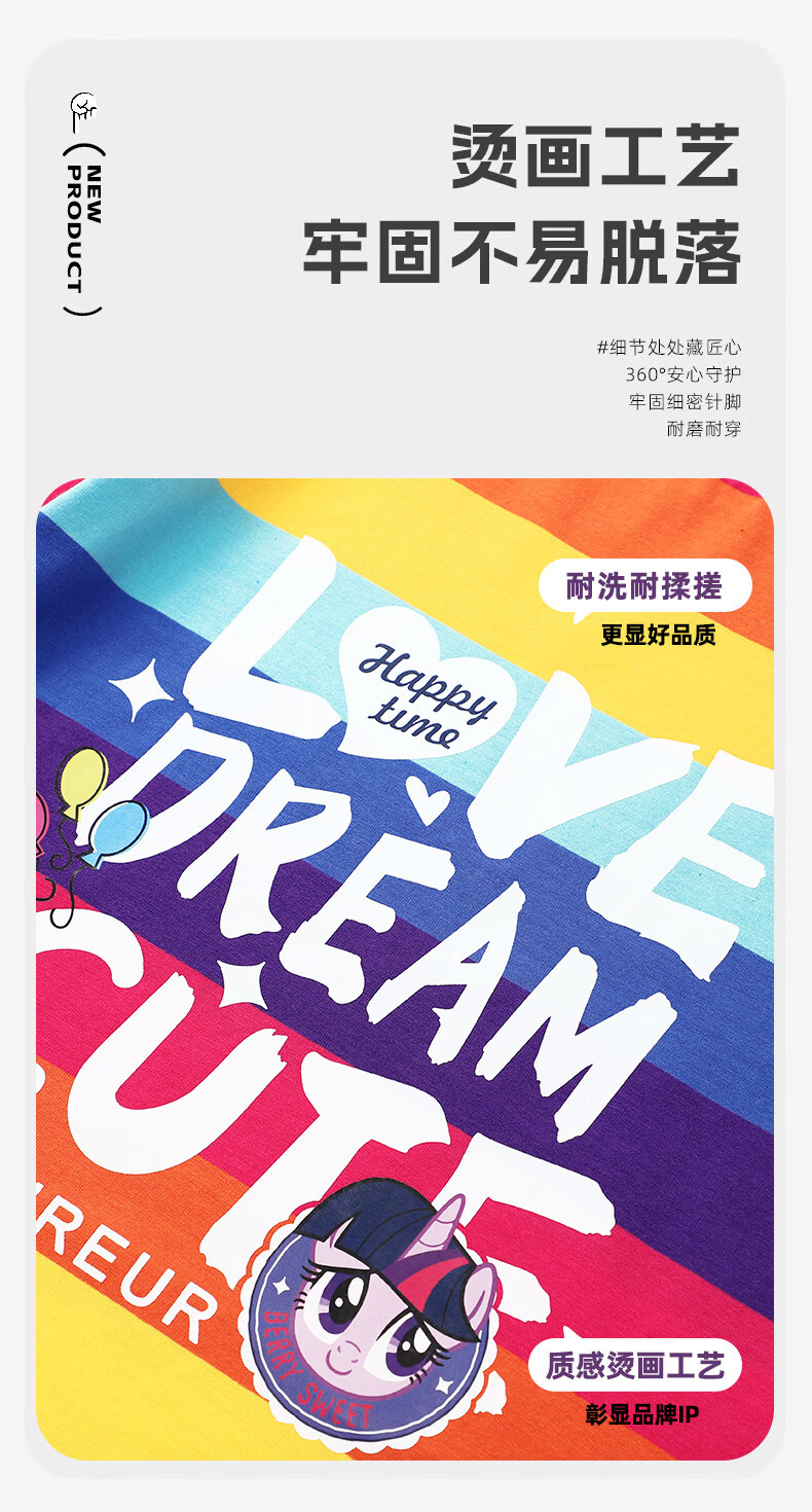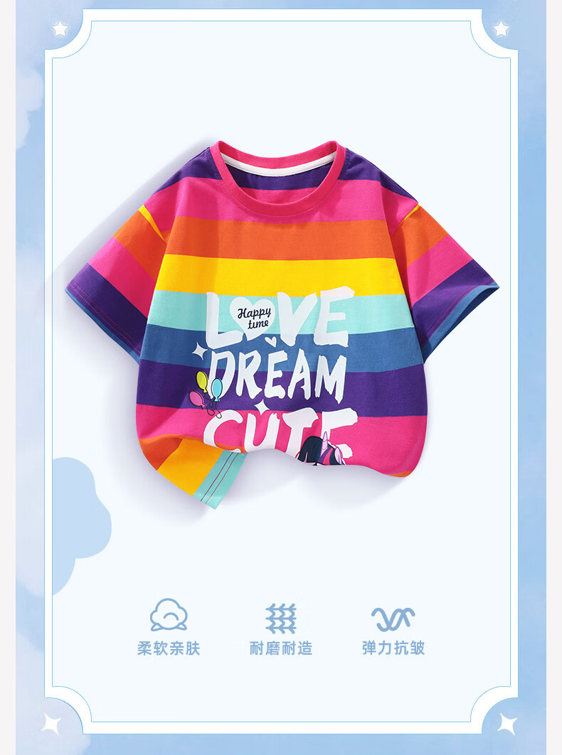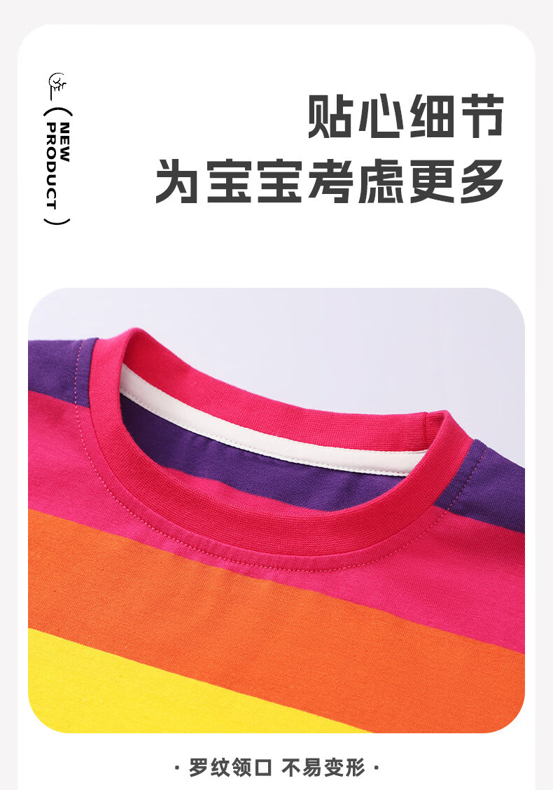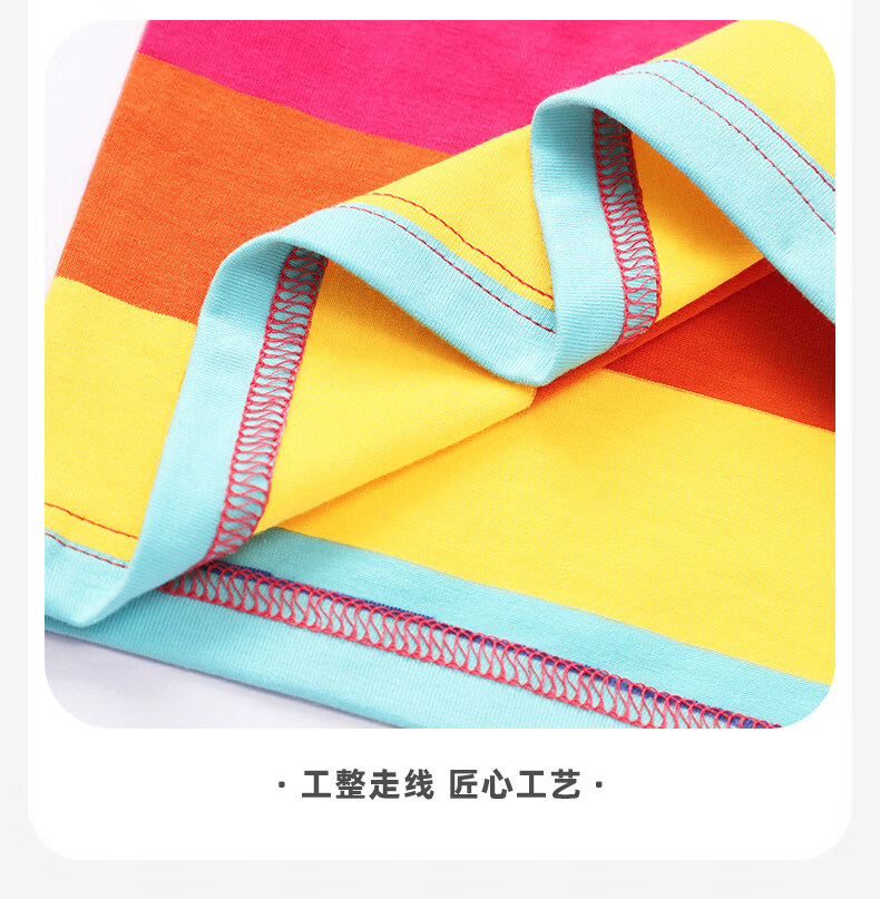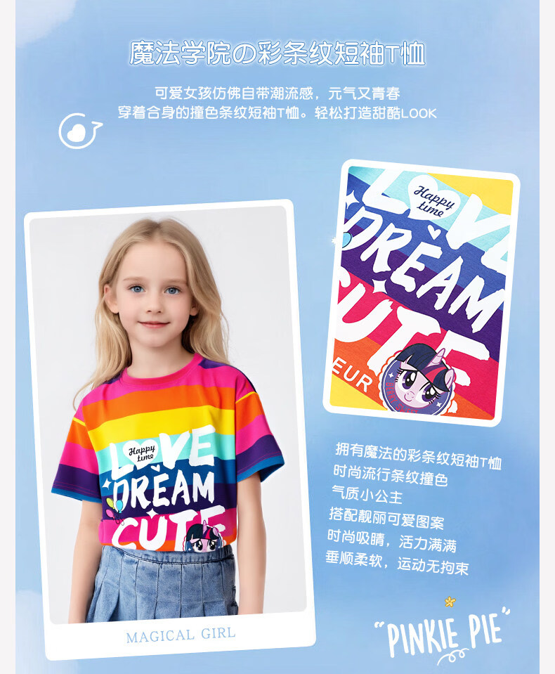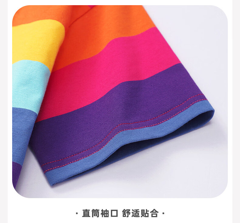 小马宝莉女童短袖t恤撞色2026夏季新款儿童女孩彩虹条纹拼条上衣 【夏季省心套装】彩条纹短袖+紫短裤 140