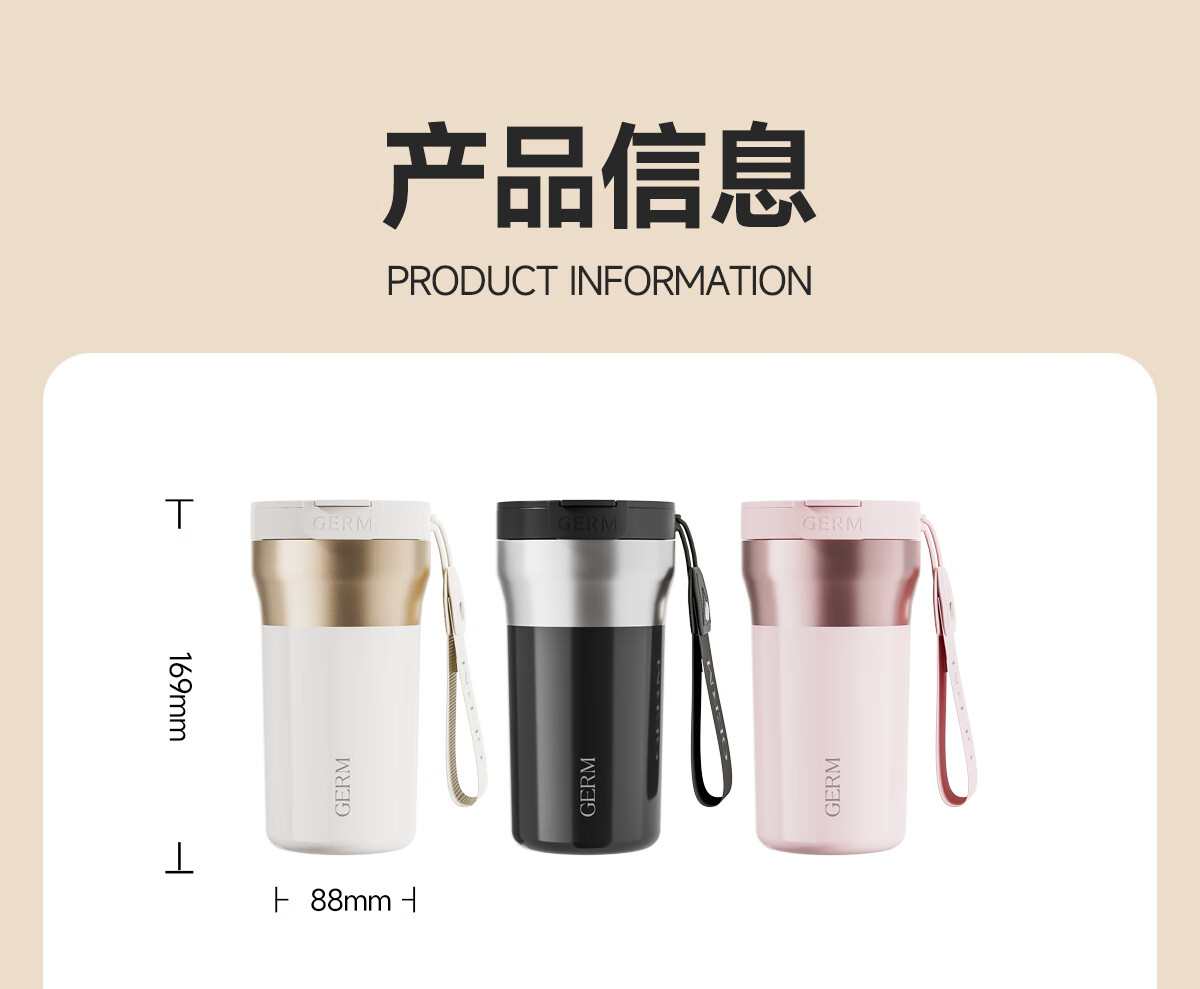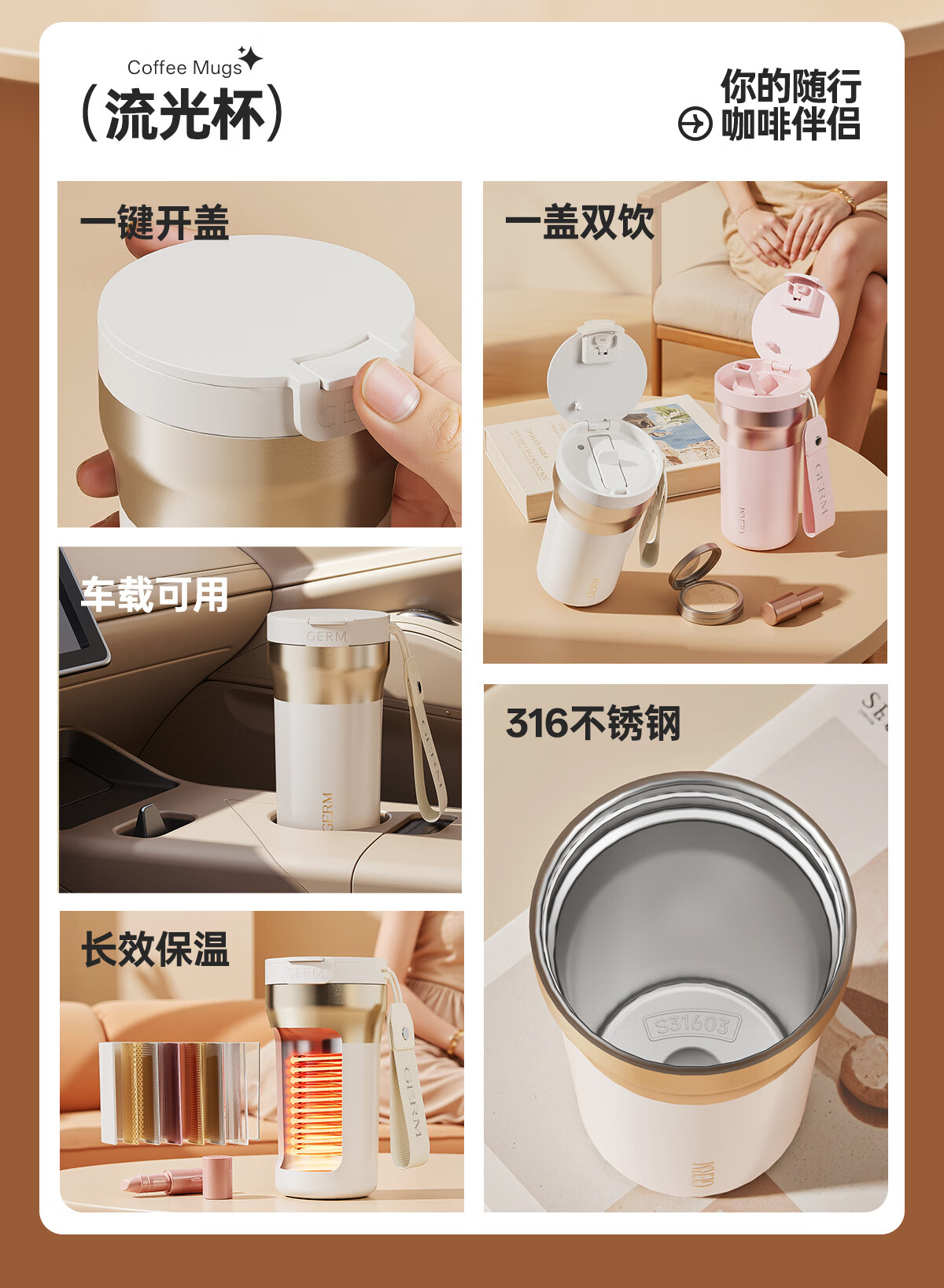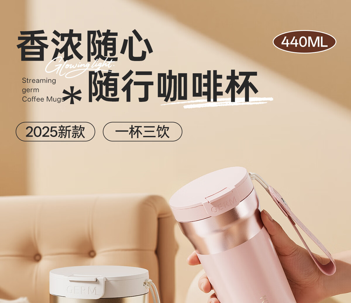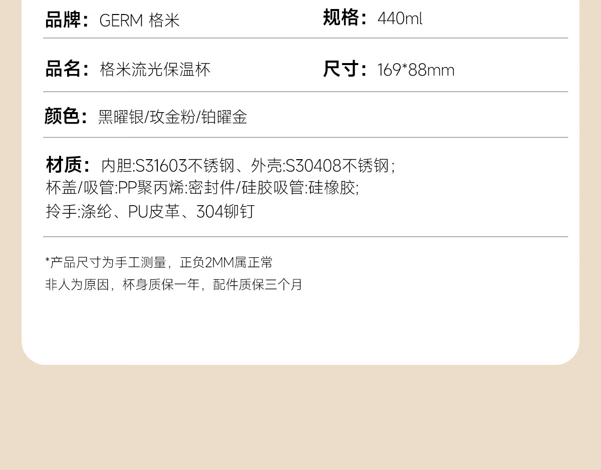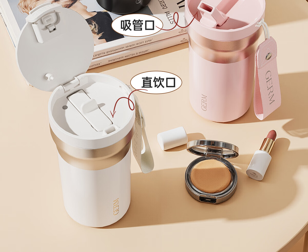 格米(germ)时尚流光保温杯高颜值男女式双饮随行吸管杯礼物杯子车载水杯 铂曜金440ML【新品强势推荐】GE-25AW-B178
