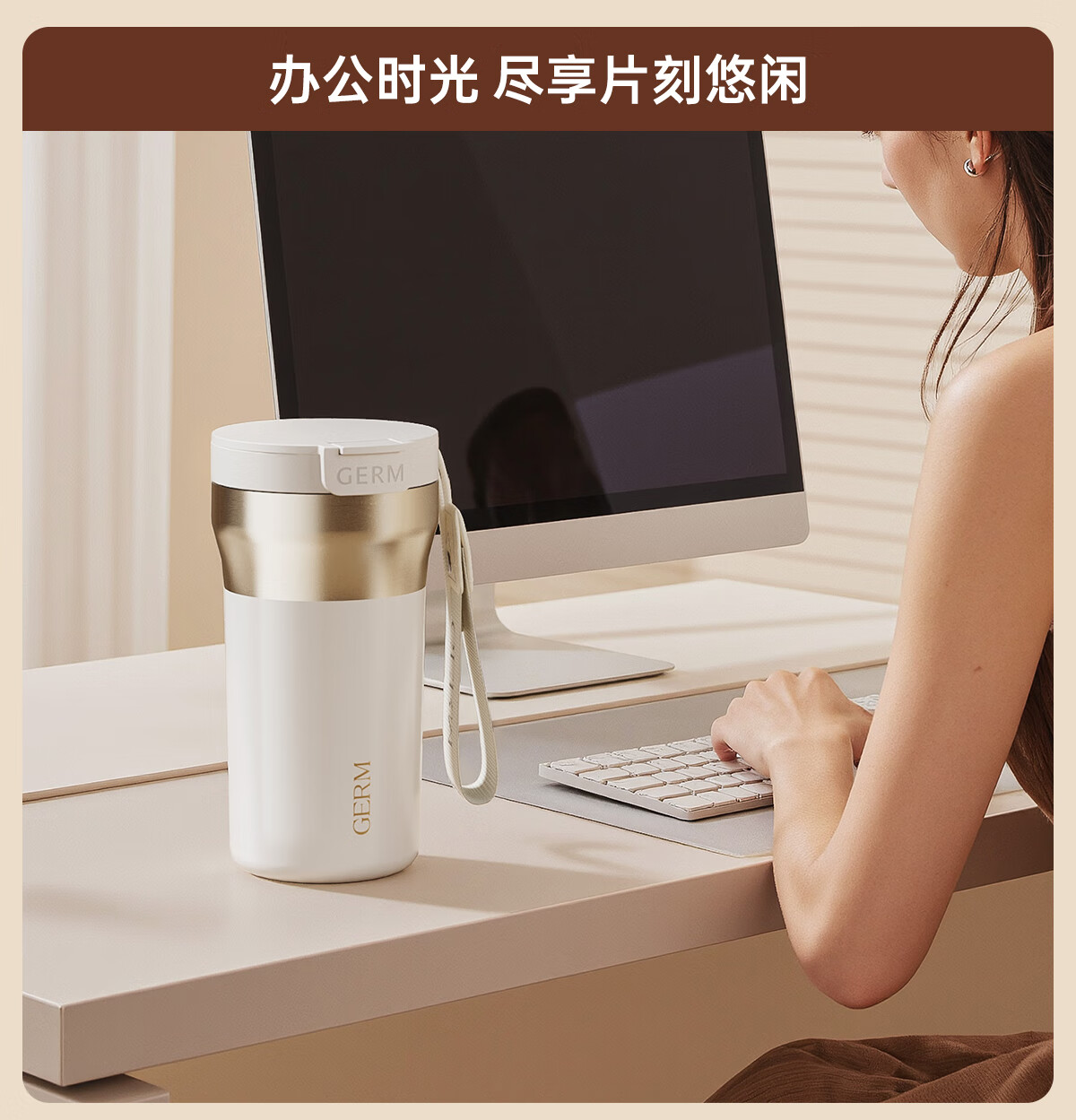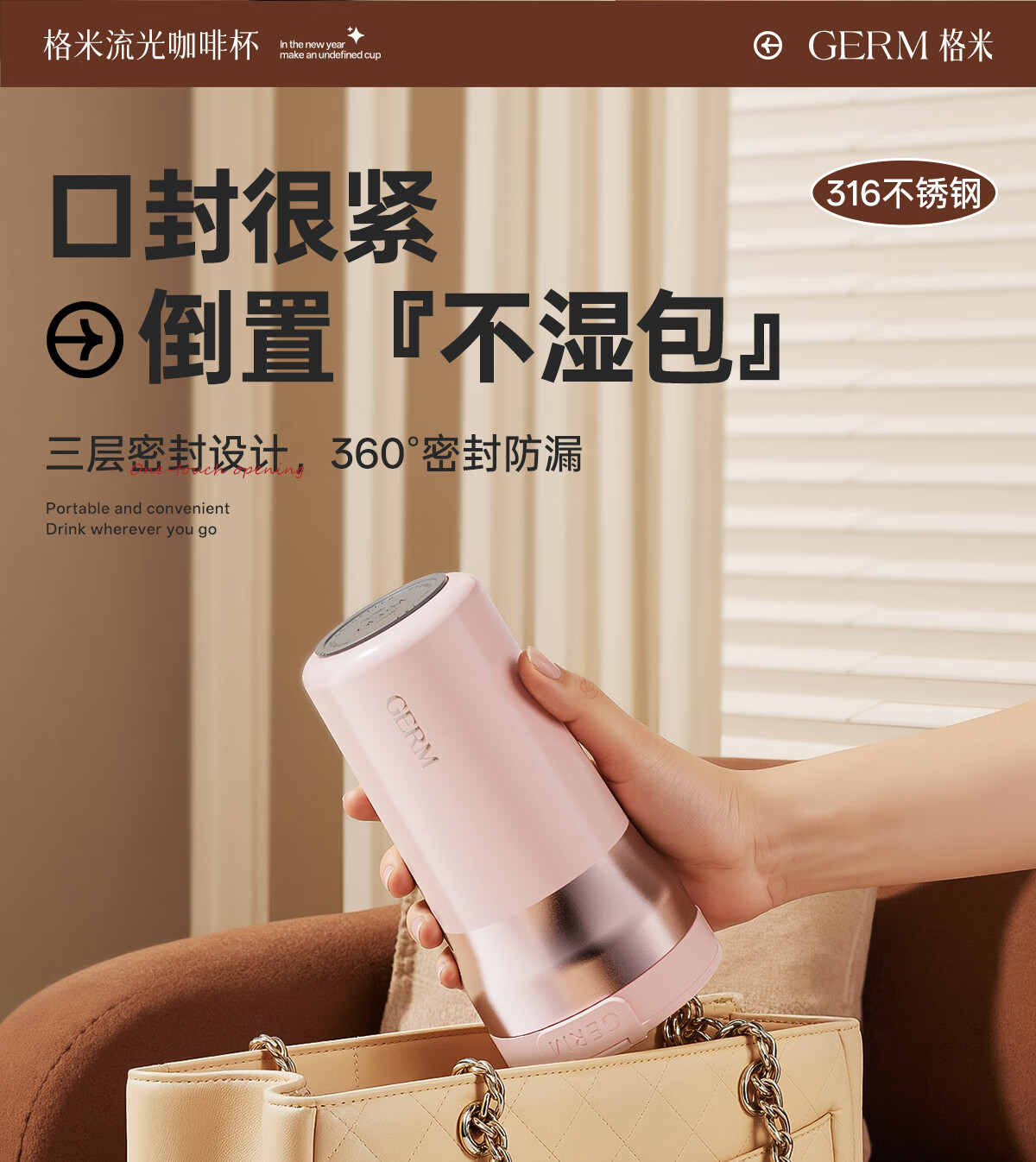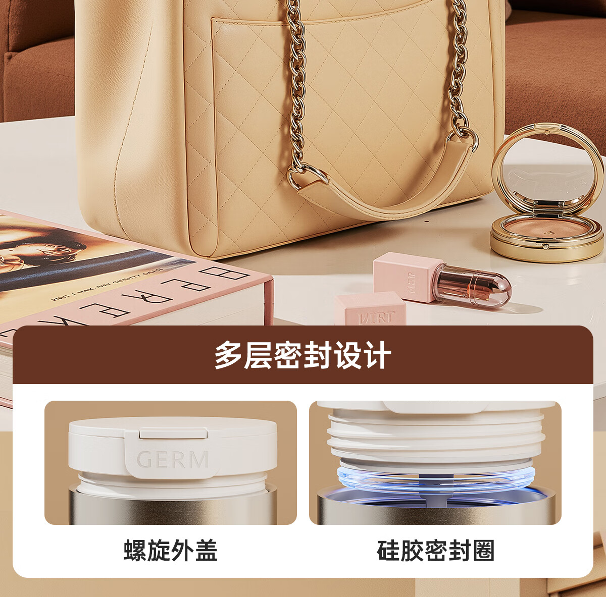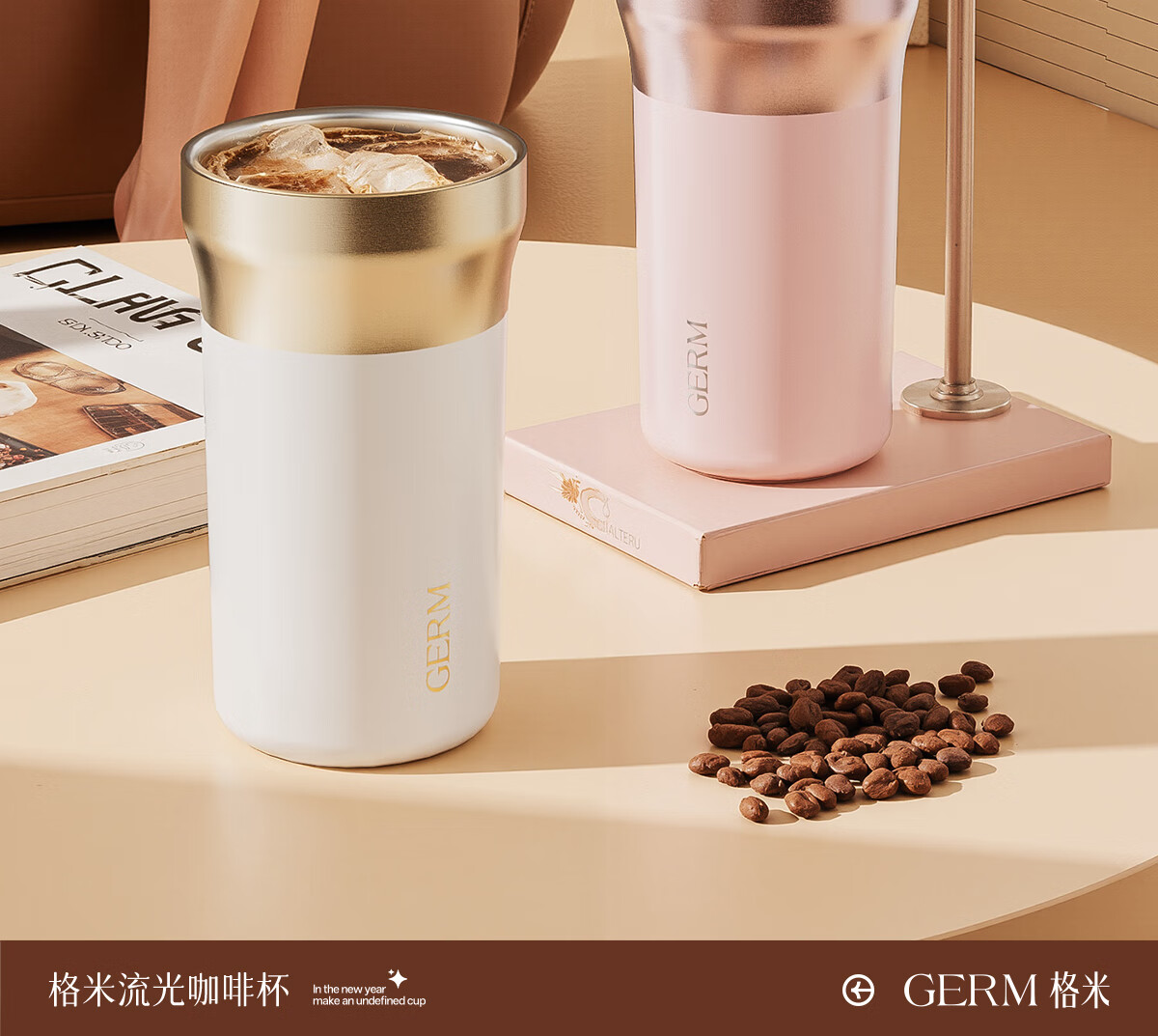 格米(germ)时尚流光保温杯高颜值男女式双饮随行吸管杯礼物杯子车载水杯 铂曜金440ML【新品强势推荐】GE-25AW-B178