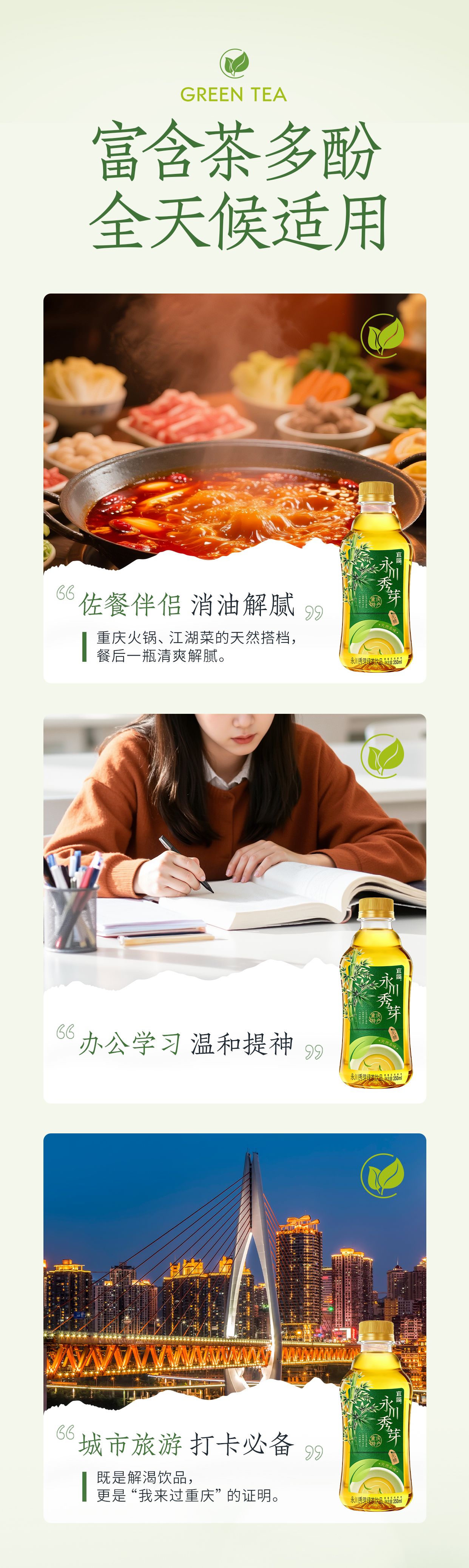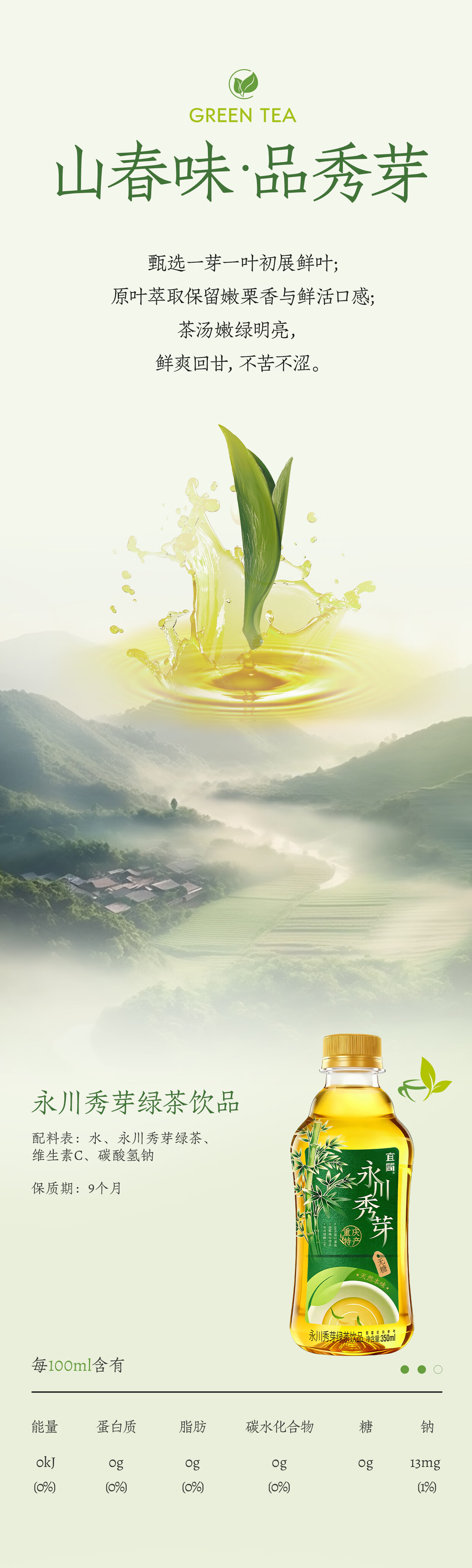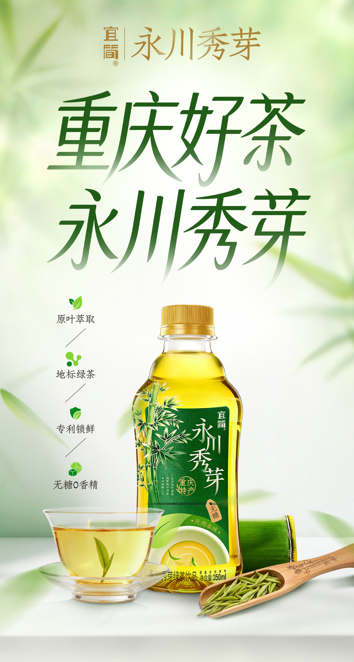 宜简永川秀芽原叶萃取无糖绿茶饮品350ml*12瓶 整箱装