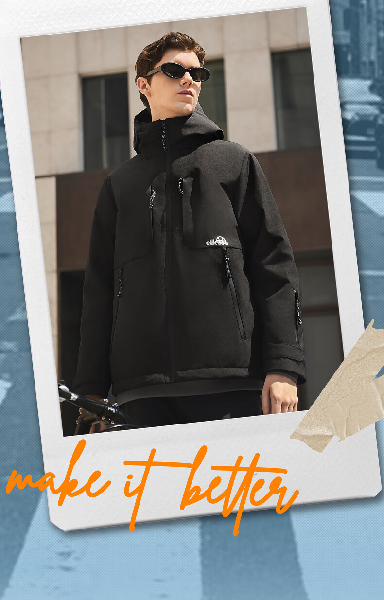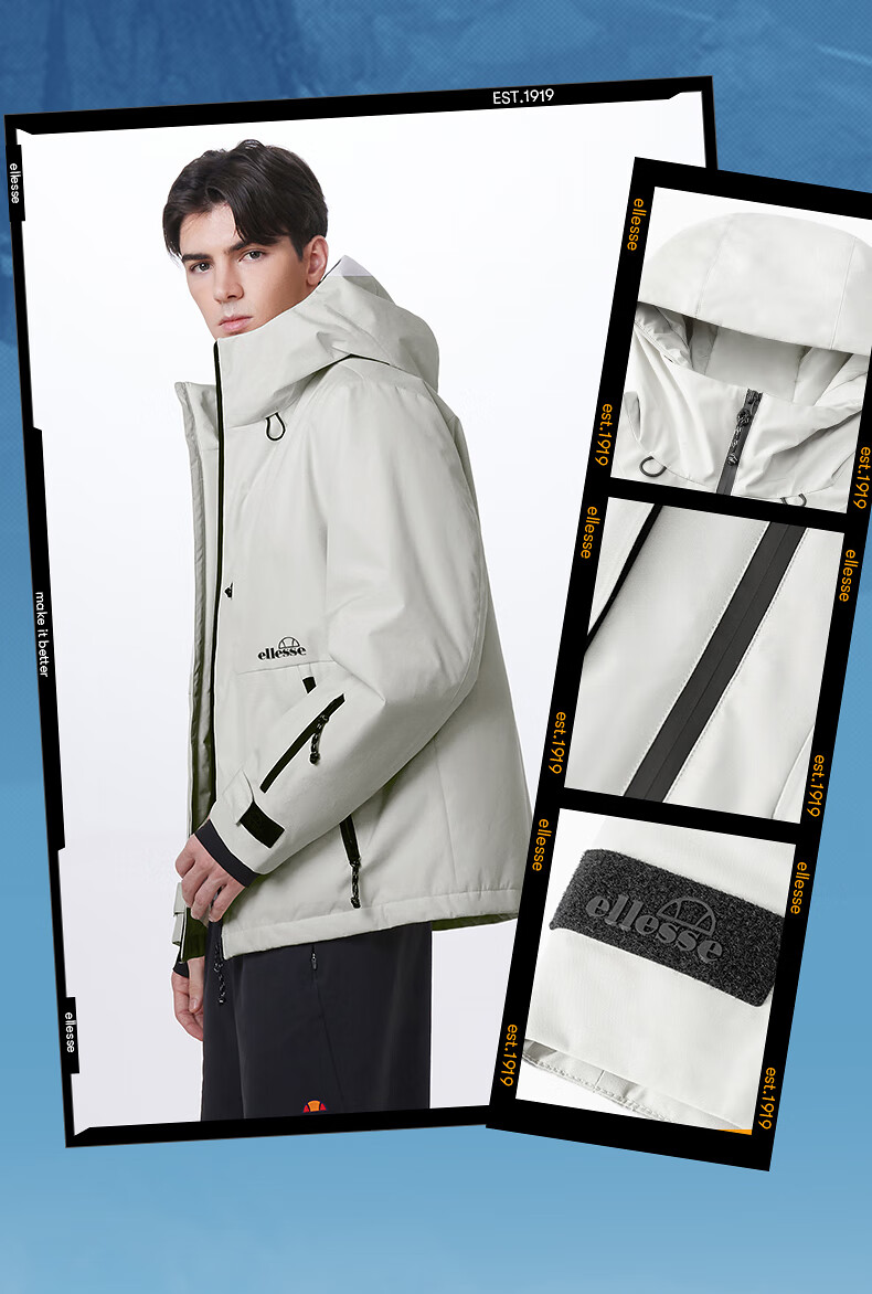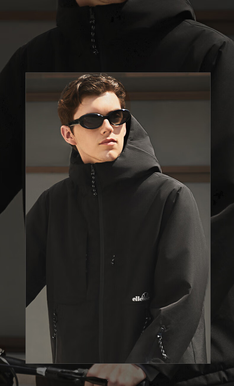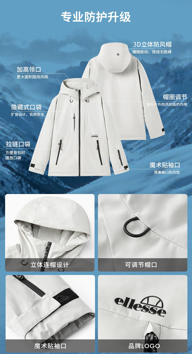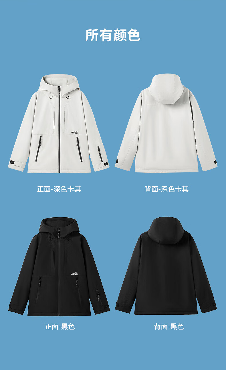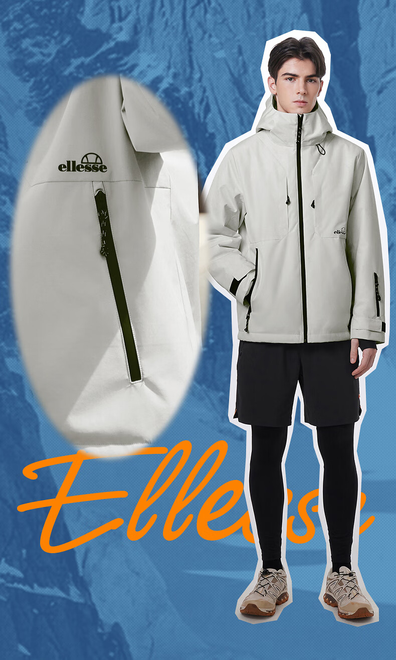 ellesse小贝壳防泼水连帽棉衣外套御寒保暖运动棉服 深卡其色 M