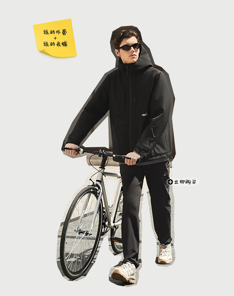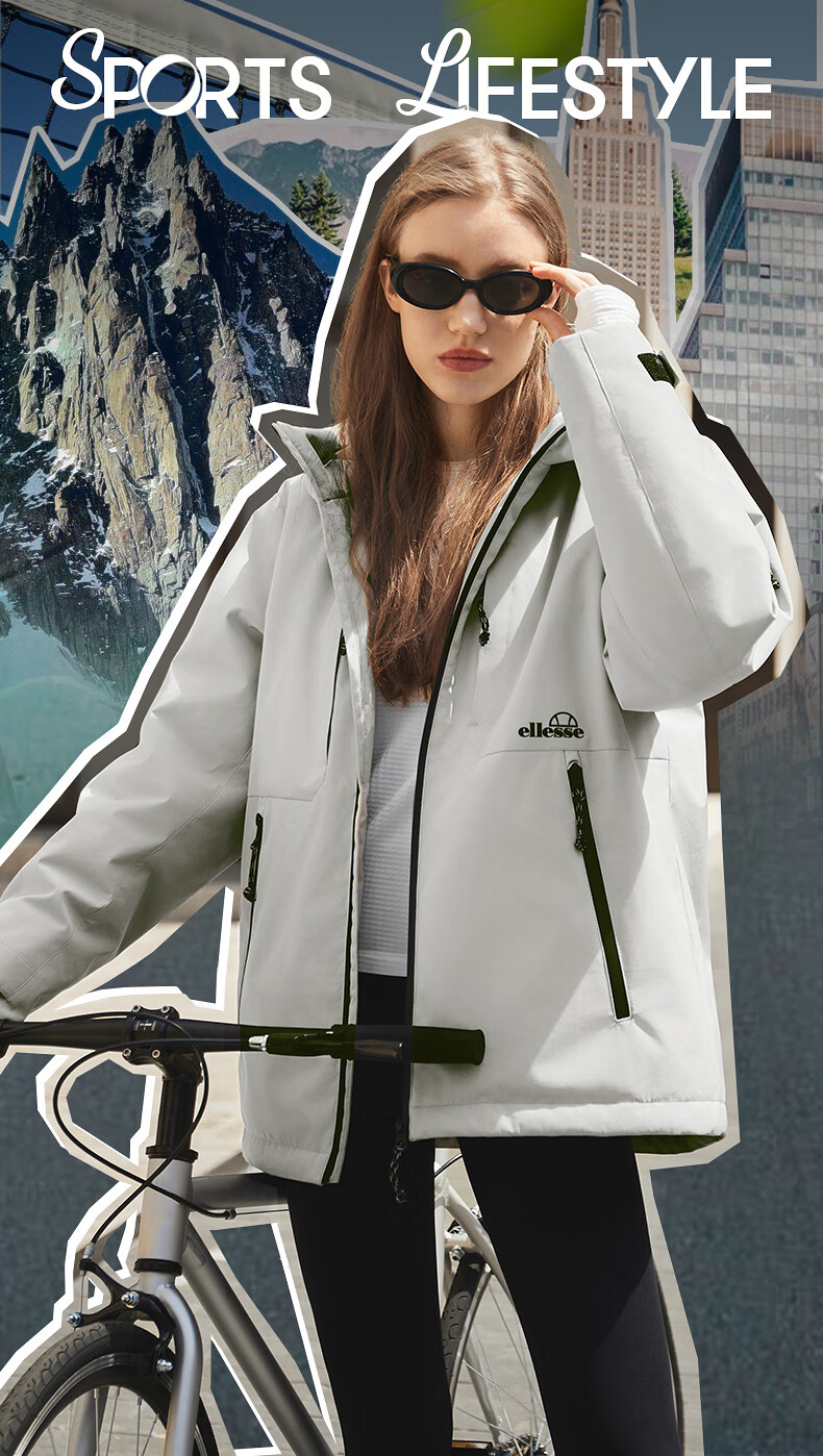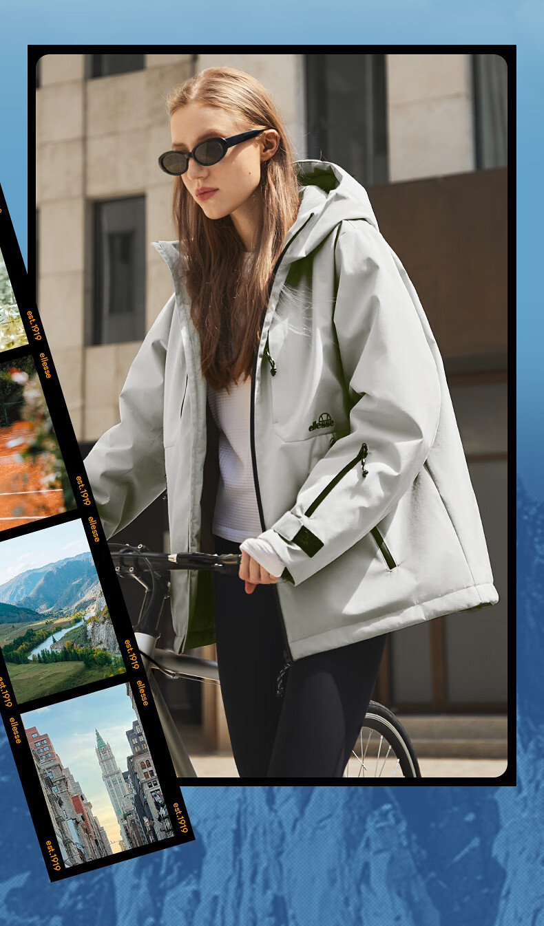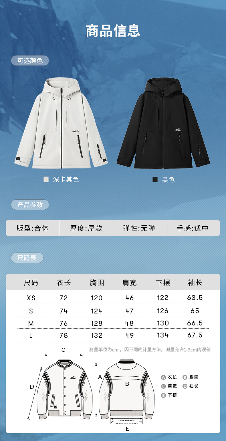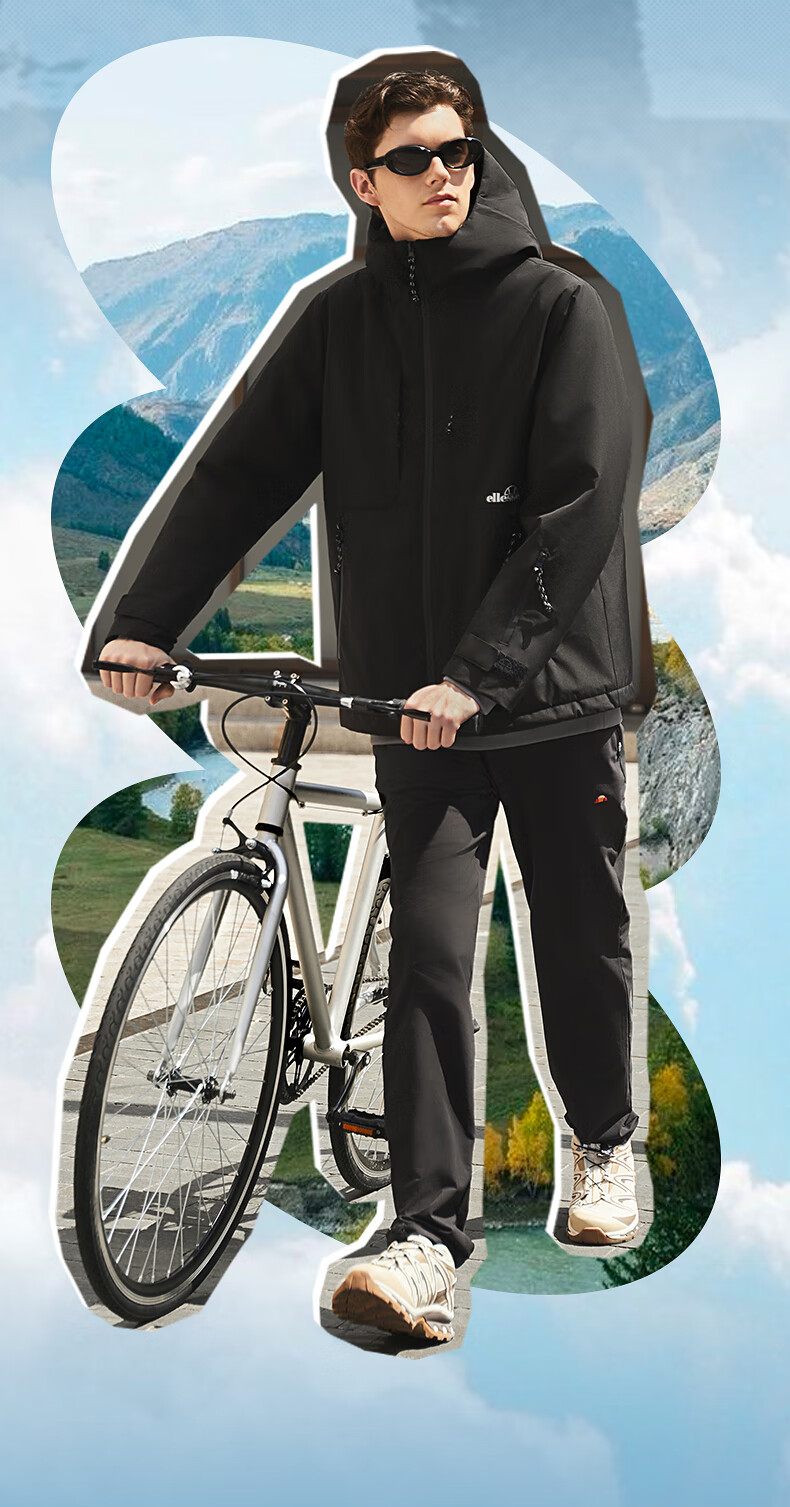 ellesse小贝壳防泼水连帽棉衣外套御寒保暖运动棉服 深卡其色 M