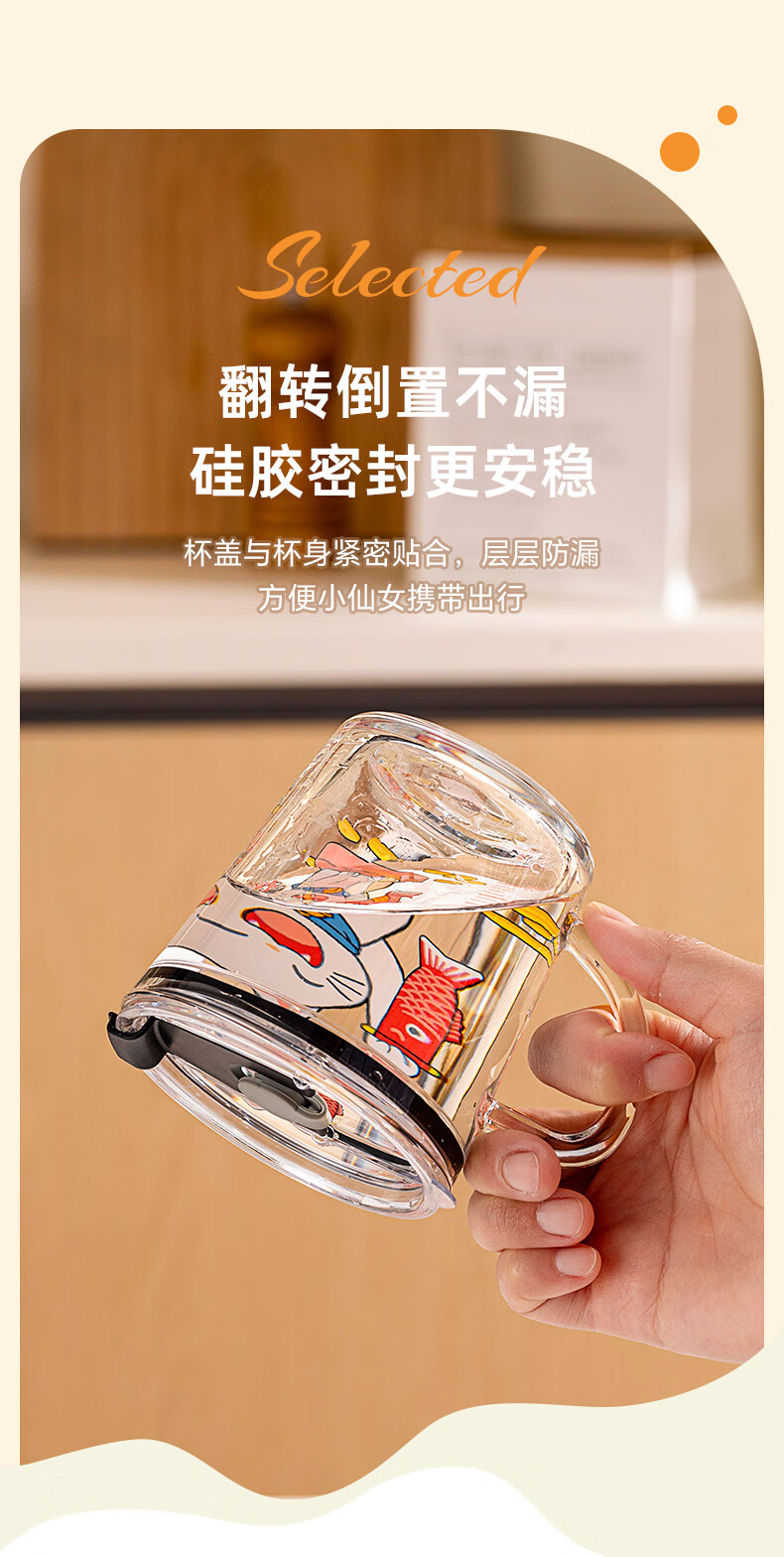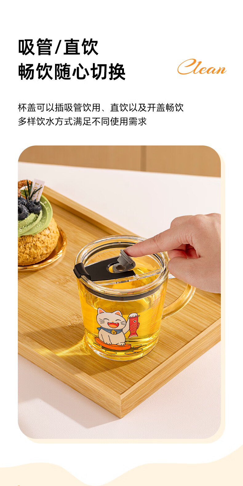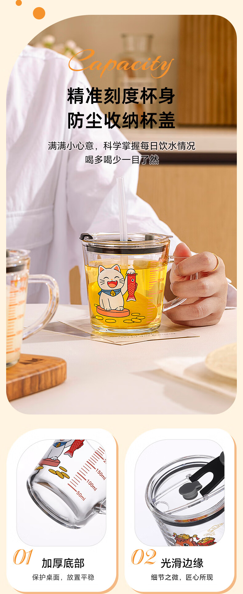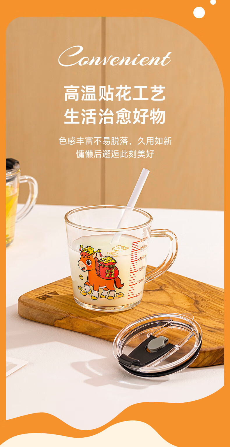 乐唯诗(LOVWISH)玻璃带刻度牛奶杯儿童吸管水杯喝奶杯泡冲奶粉专用大宝宝早餐杯 卡通吸管杯【恐龙】300ml1只