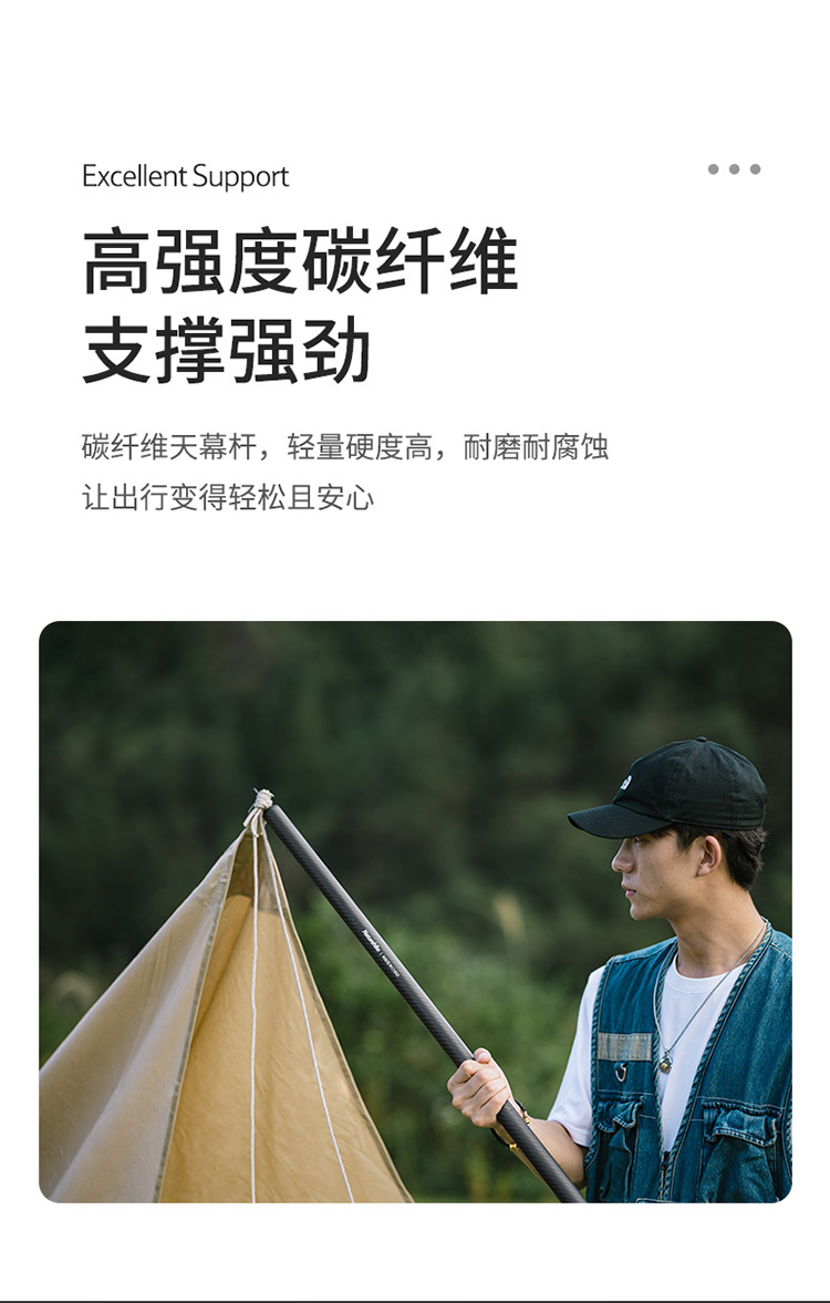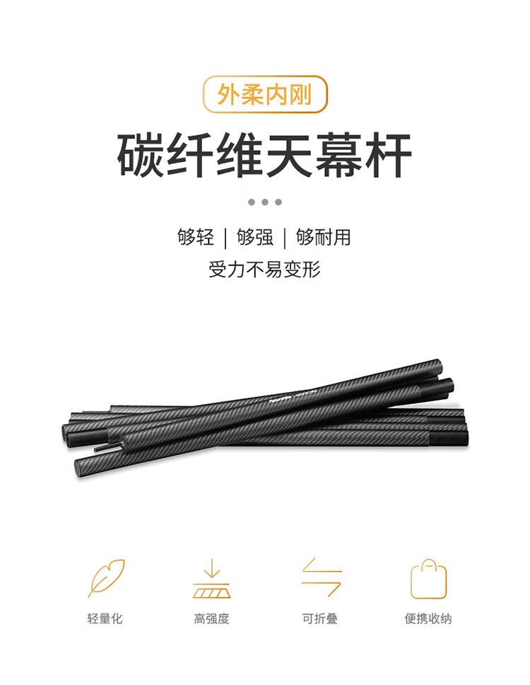 Naturehike挪客碳纤维天幕杆2.4米4节铝合金帐篷门厅支撑杆配件 黑色(两根装)