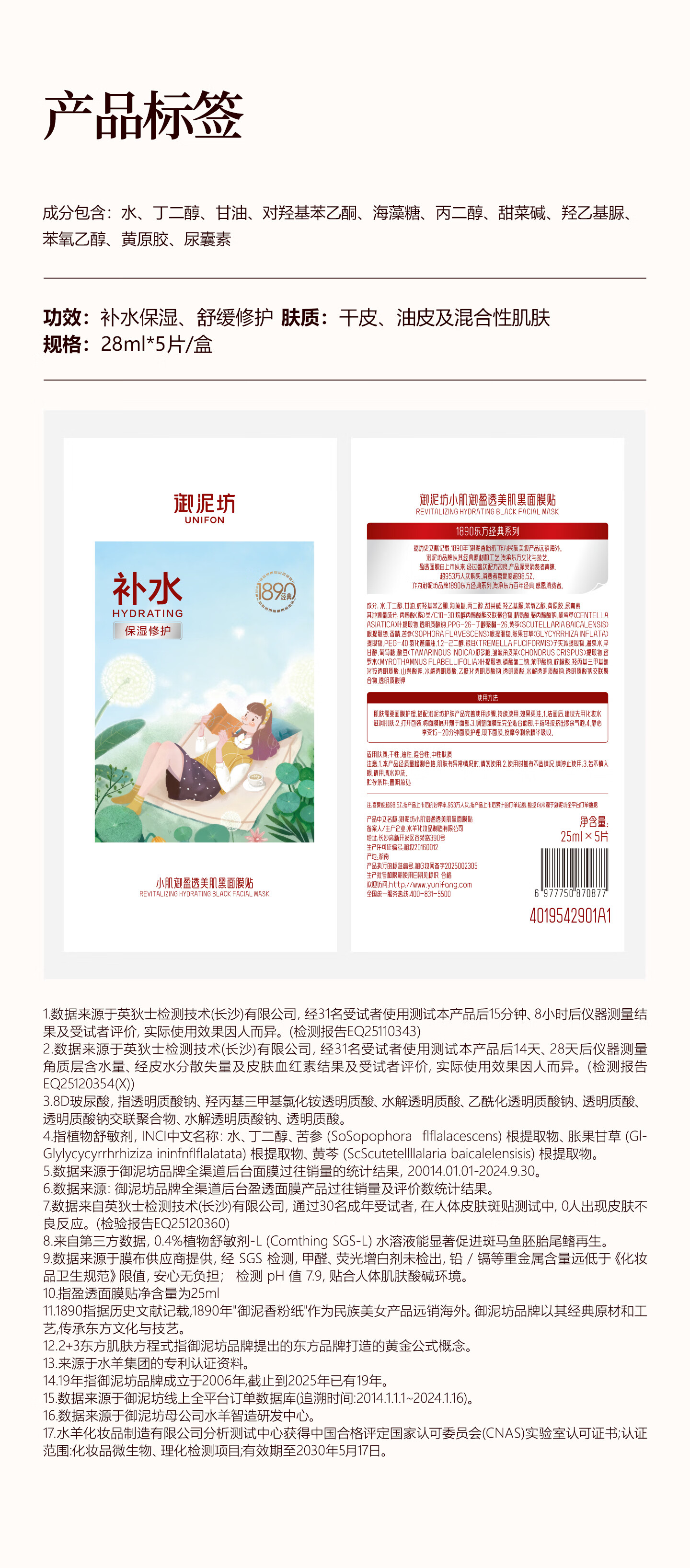 御泥坊面膜 补水保湿面膜 3D玻尿酸深层补水锁水 任选 玻尿酸面膜5片