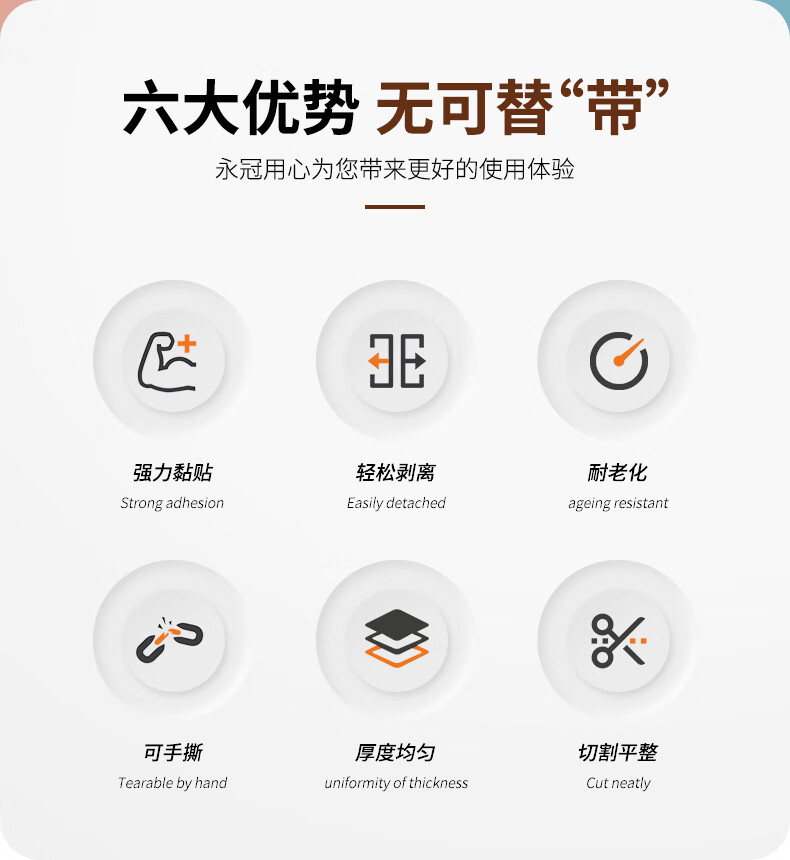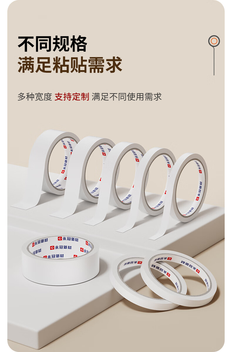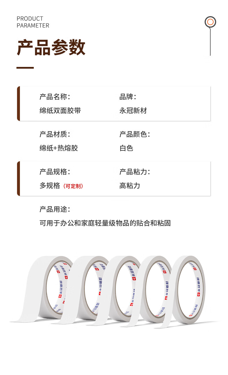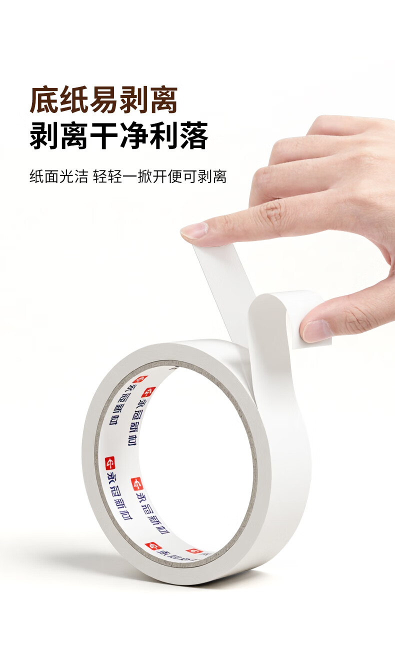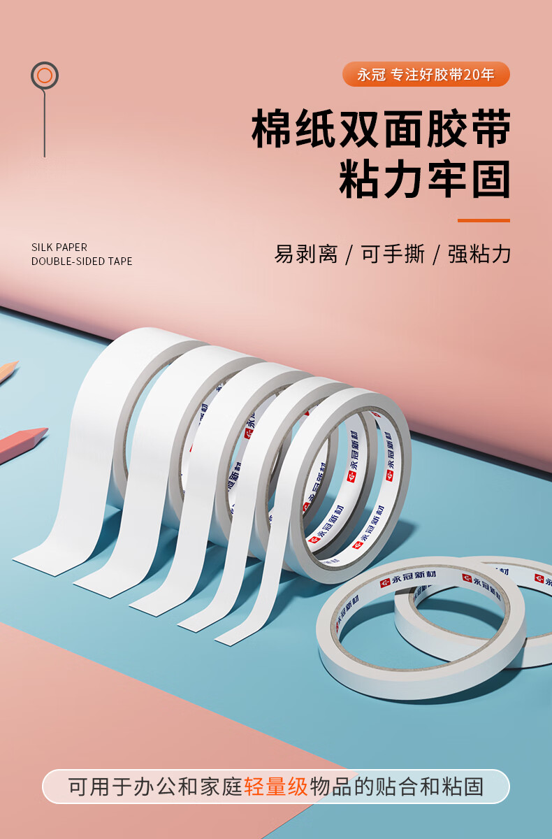永冠双面胶带学生用高粘性手工棉纸双面胶文具易撕易贴海报固定12mm*10m*10卷办公用品对联贴春联胶带