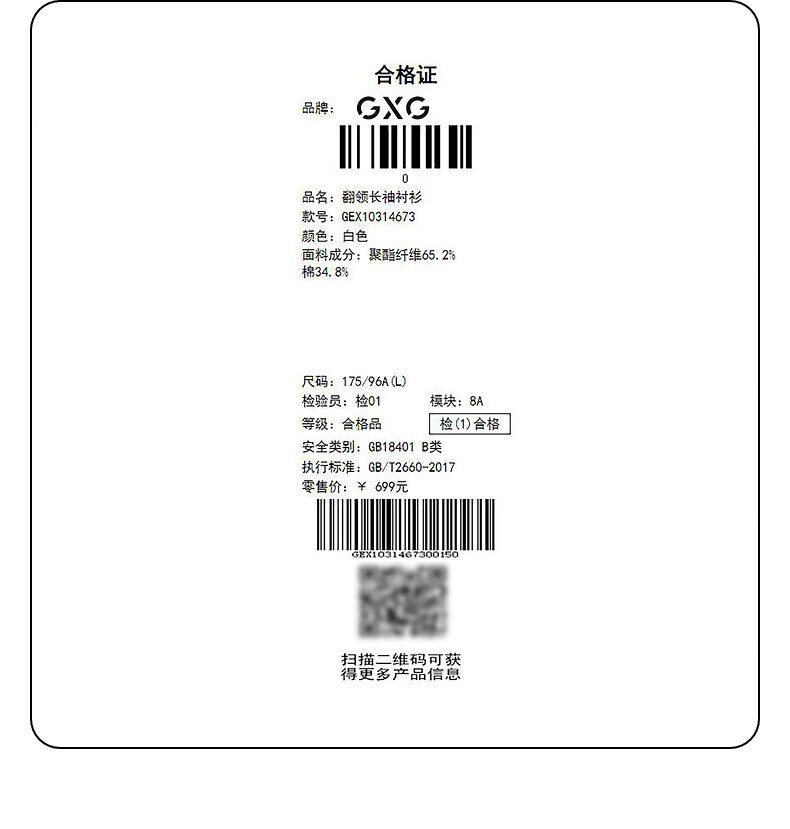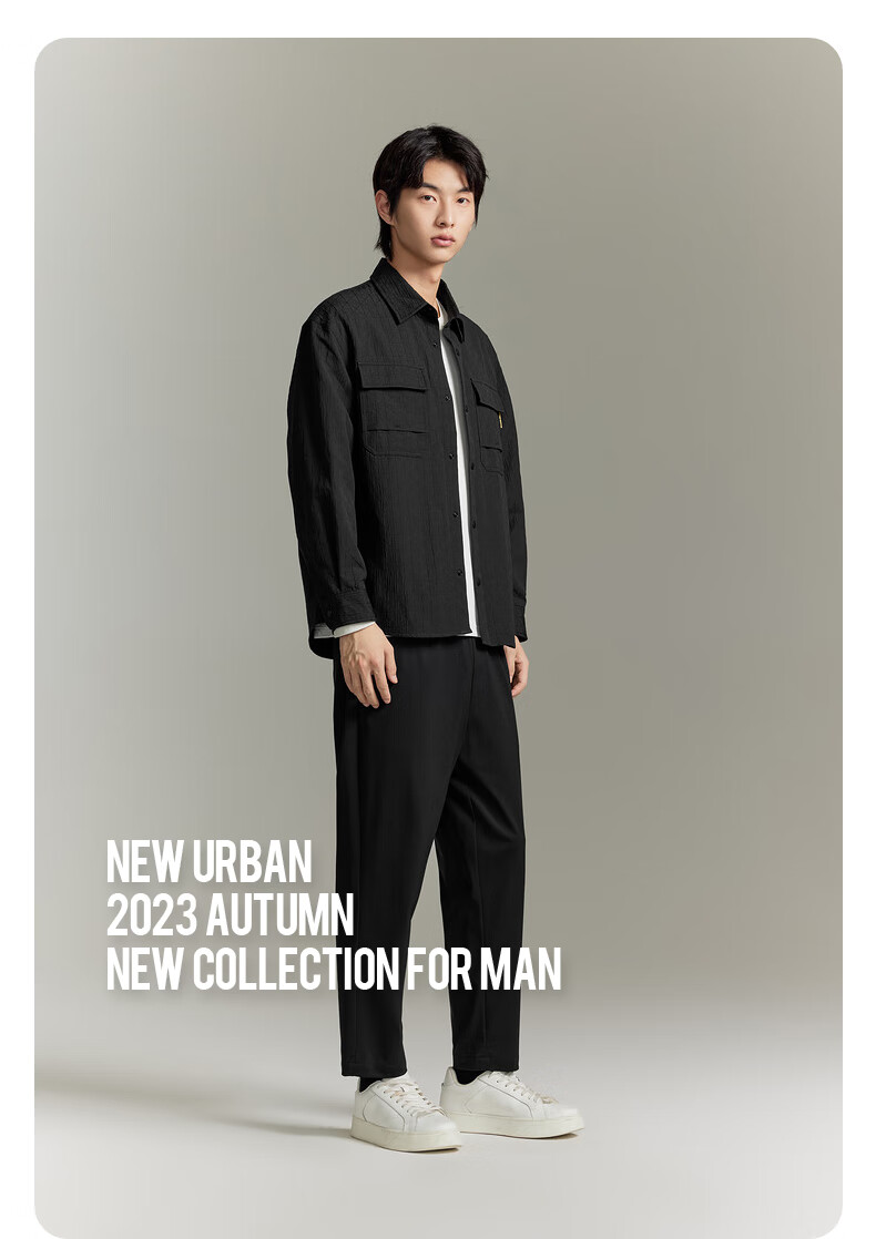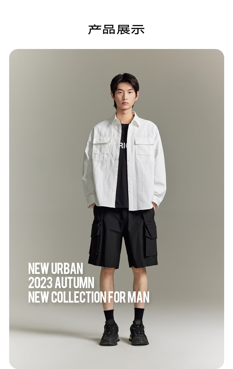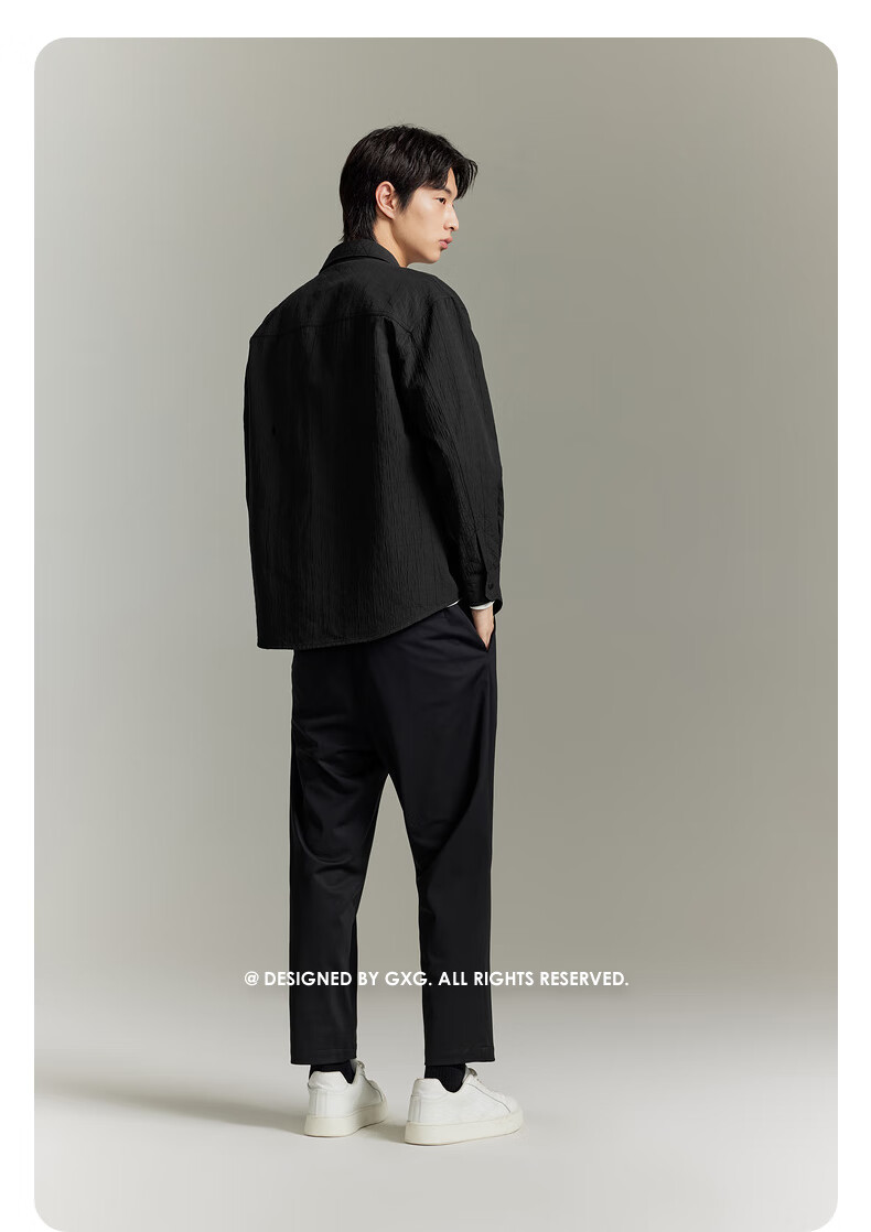 GXG男装 黑色肌理感工装风衬衫 卡其色 170/M