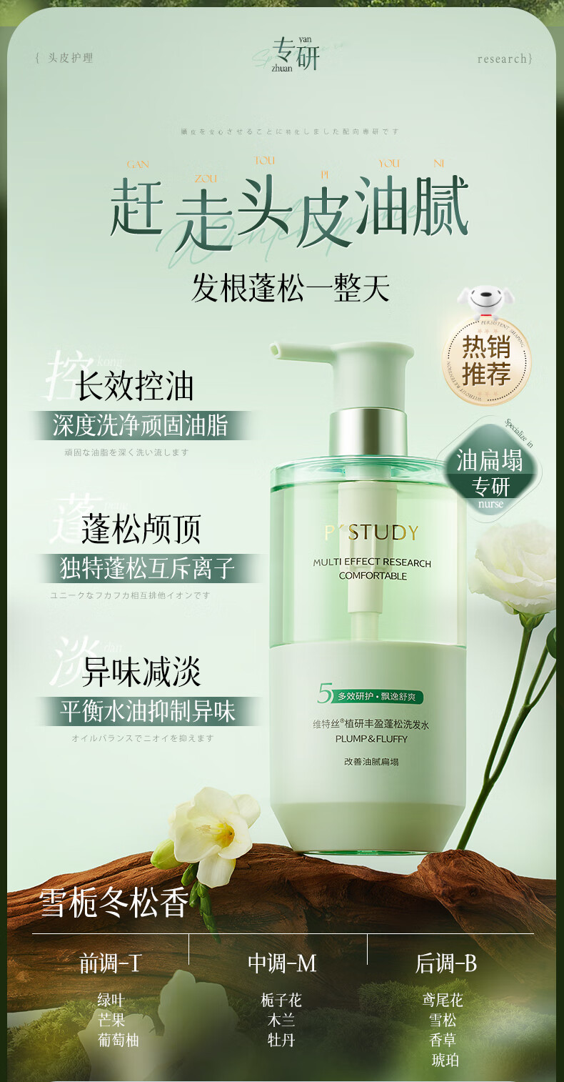 维特丝洗发水控油蓬松女士持久留香洗头膏去屑止痒金榜第1氨基酸洗发露