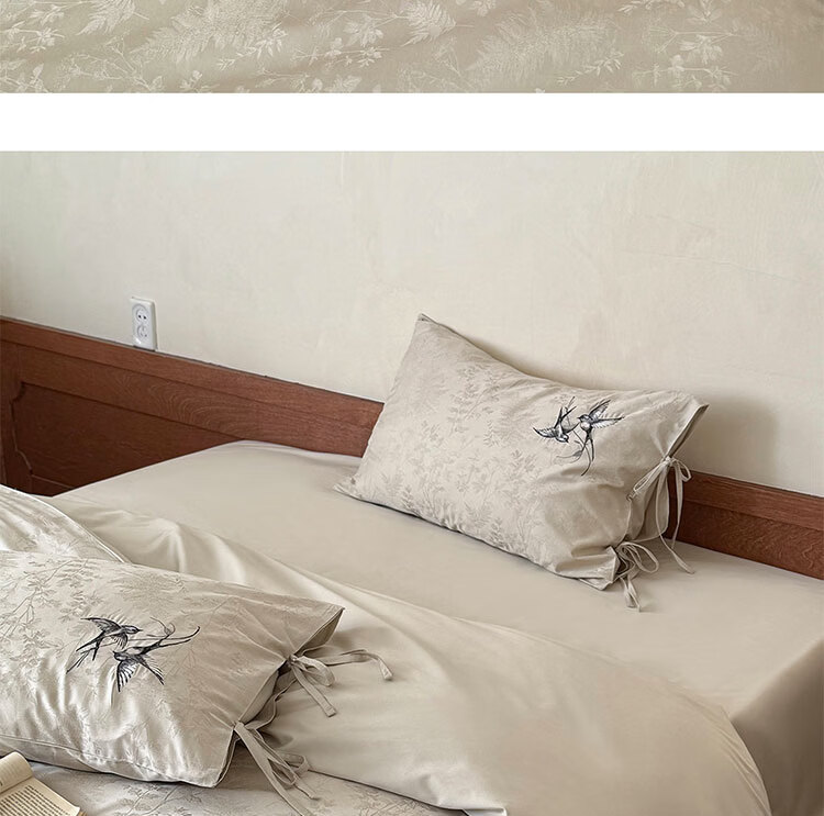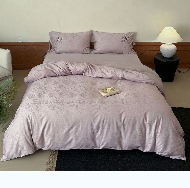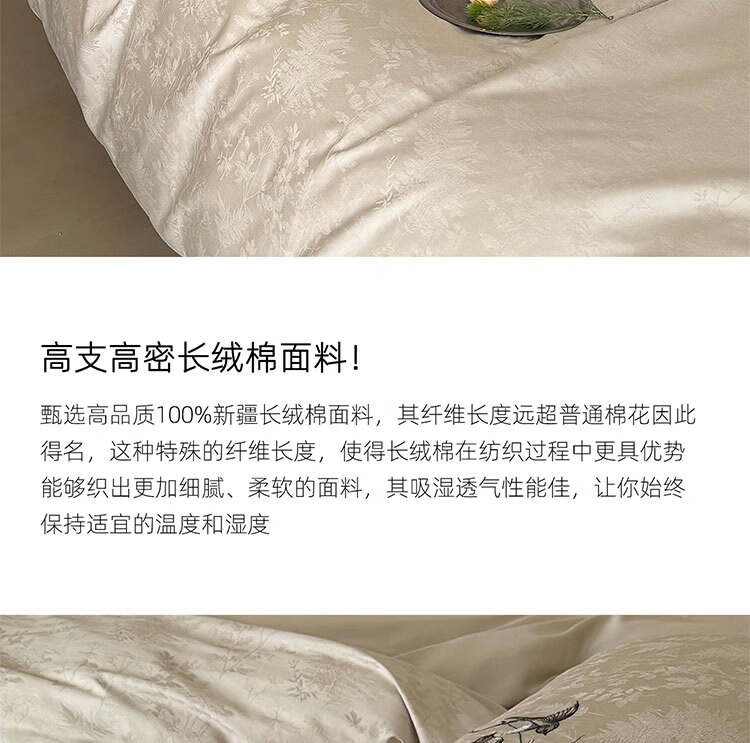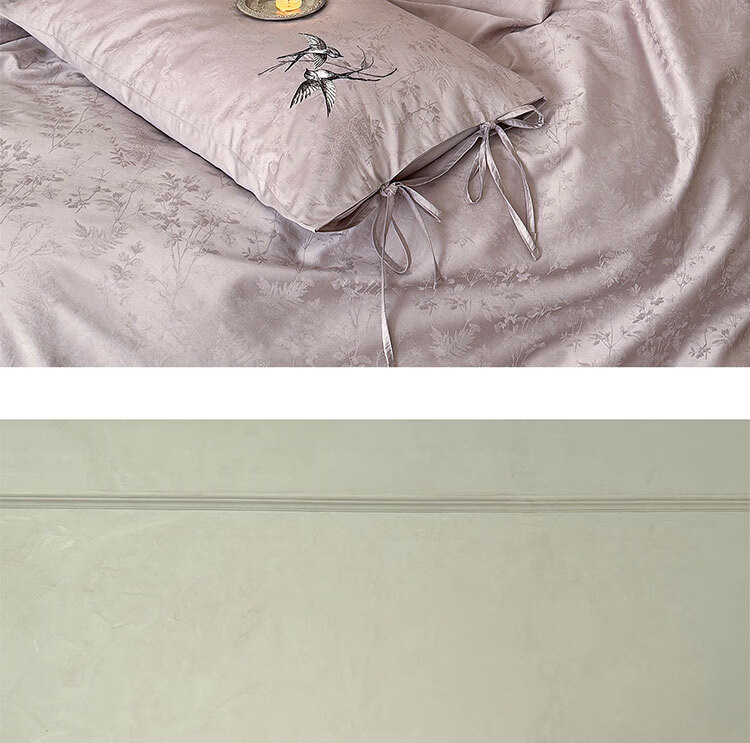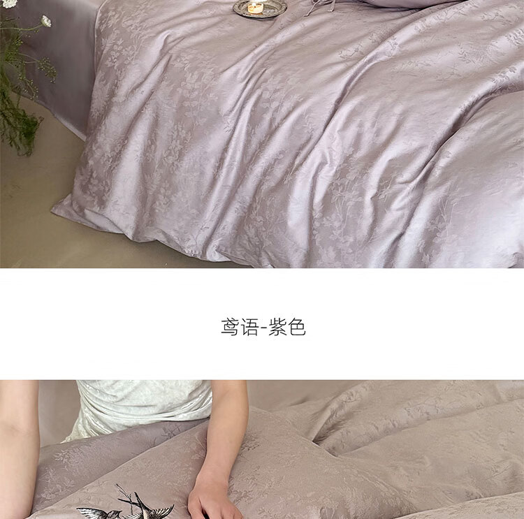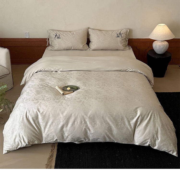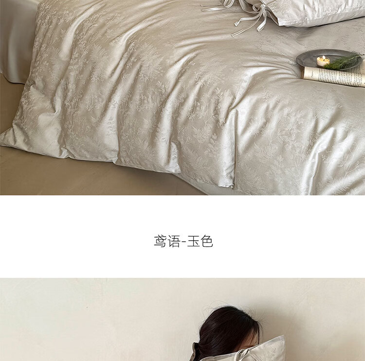 ROLAND LIVE高级感长绒棉提花四件套春夏新款全棉被套床单家用四季床上用品 LB 长绒棉提花套件-鸢语玉色 1.8米床 床单款 【被套200*230cm】